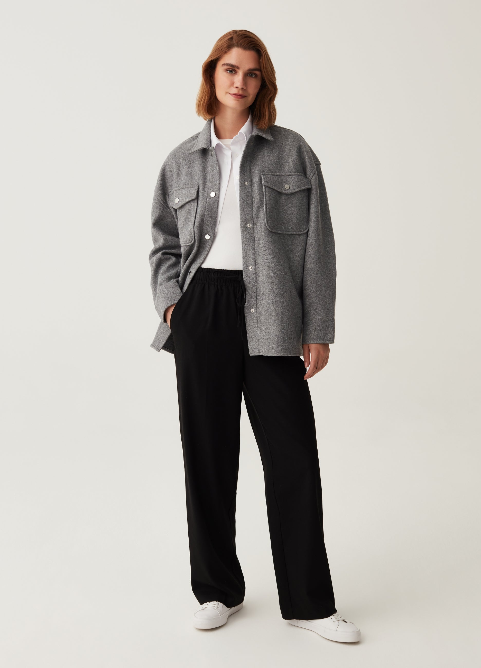 Joggers in stretch viscose blend fabric with drawstring. Two slant pockets.
