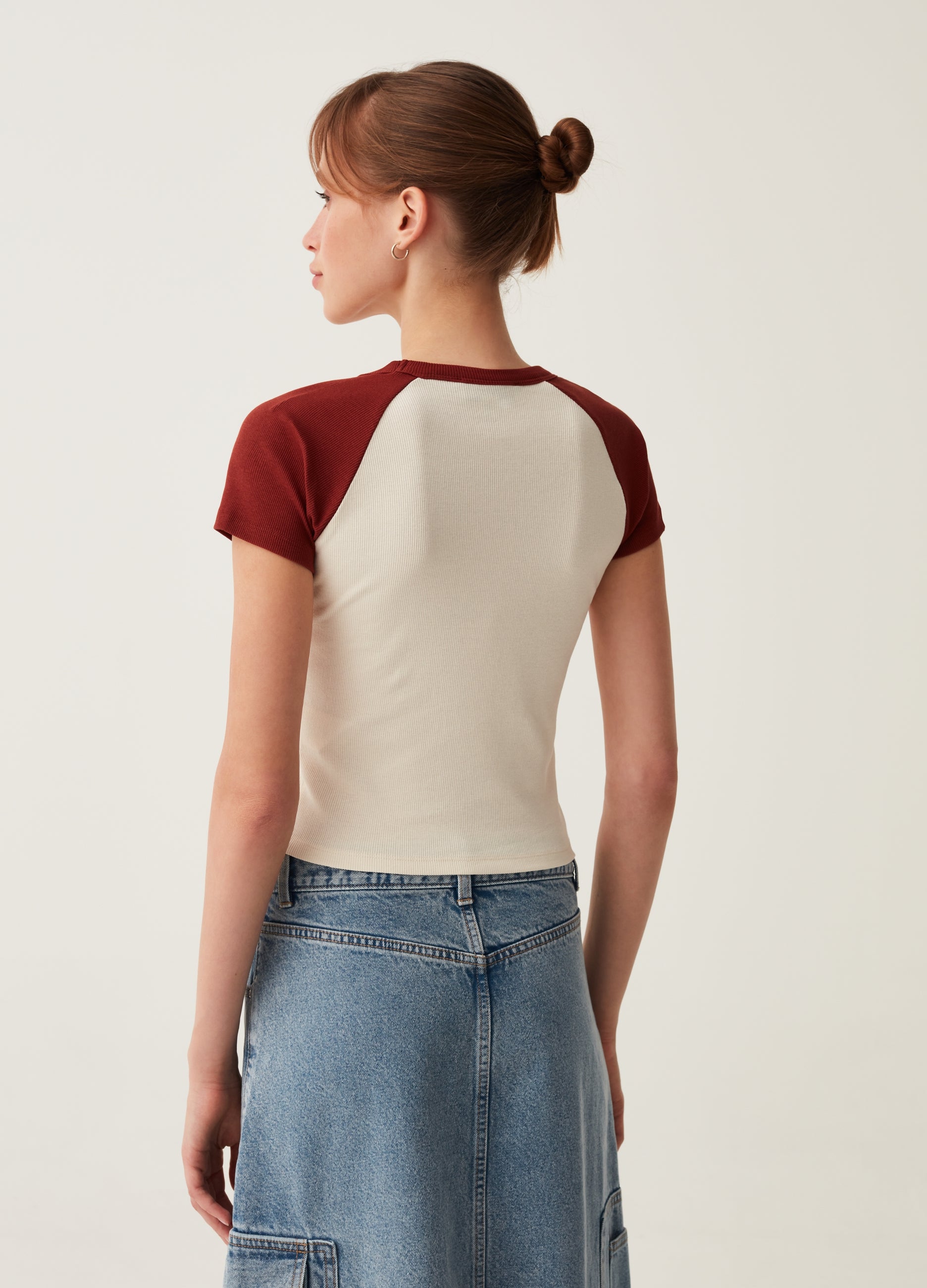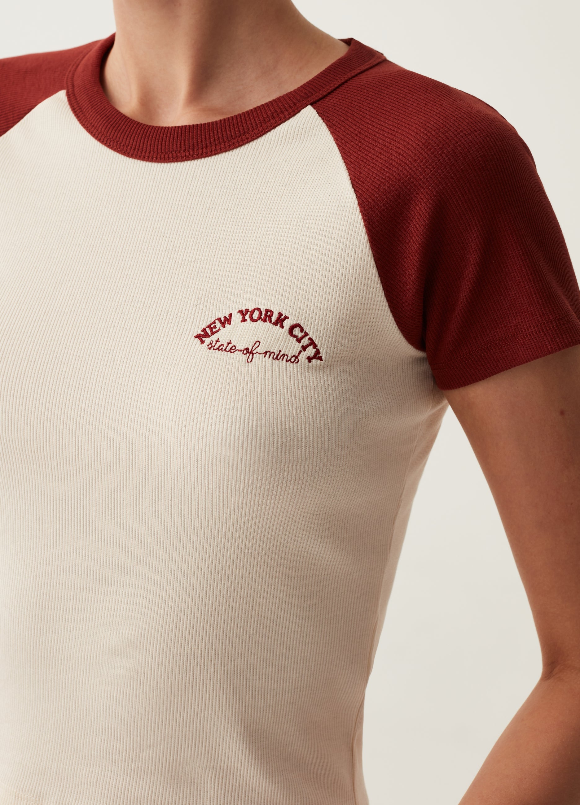 Ovs Ribbed T-Shirt With Raglan Sleeves
