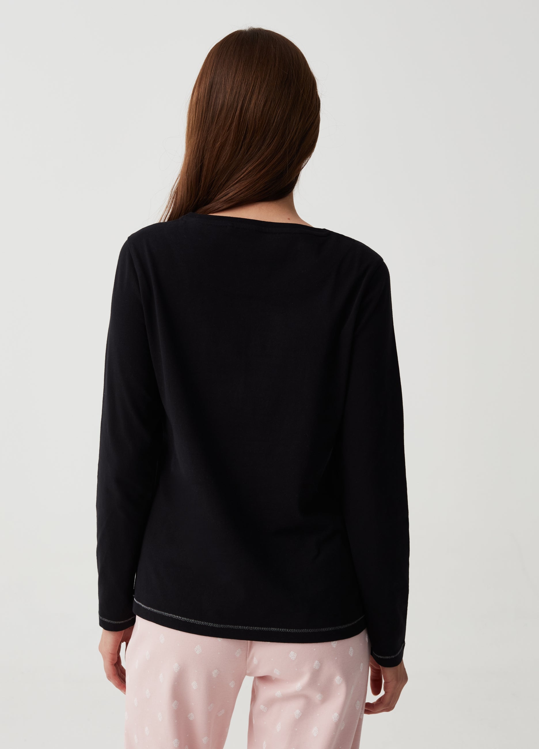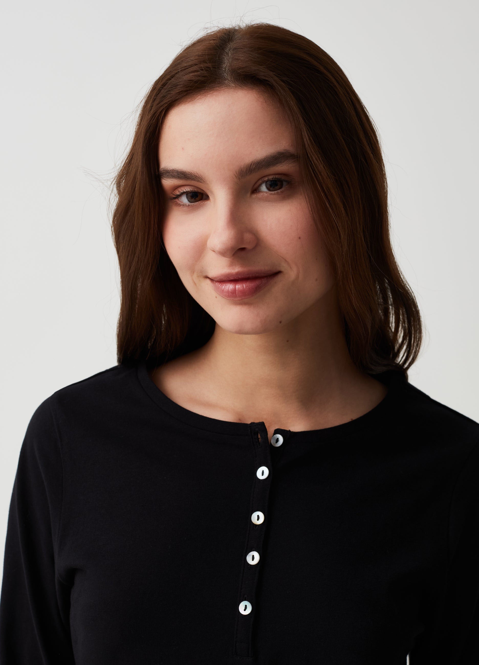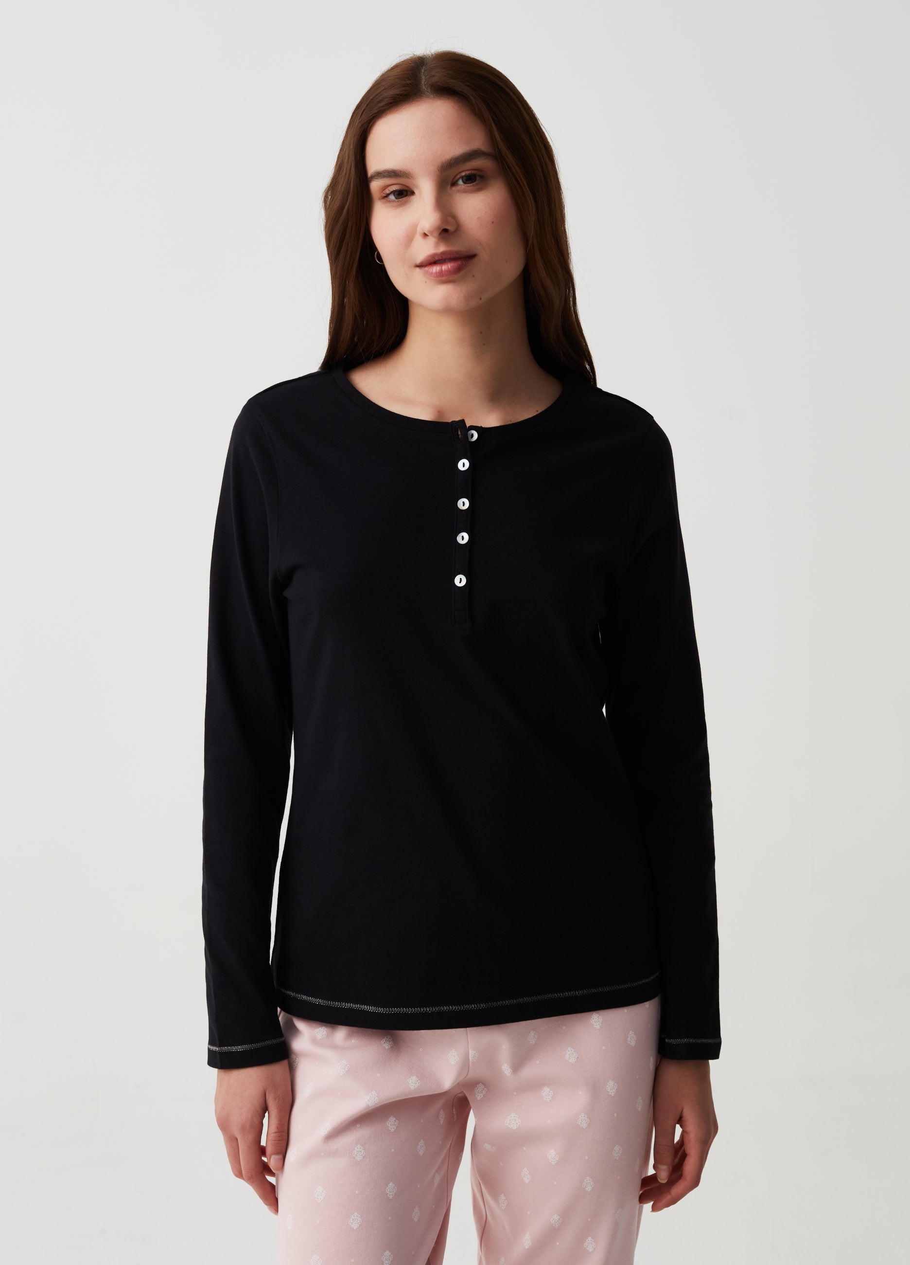 Pyjama top in 100% cotton . Granddad neckline. Long sleeves.