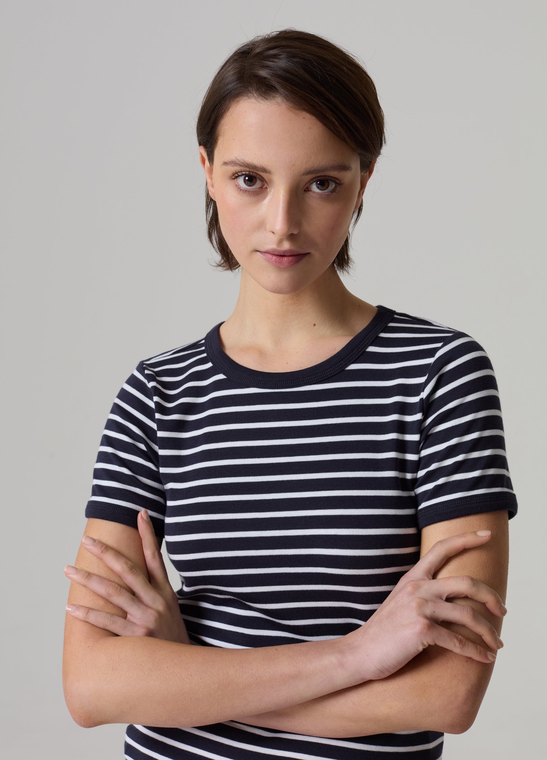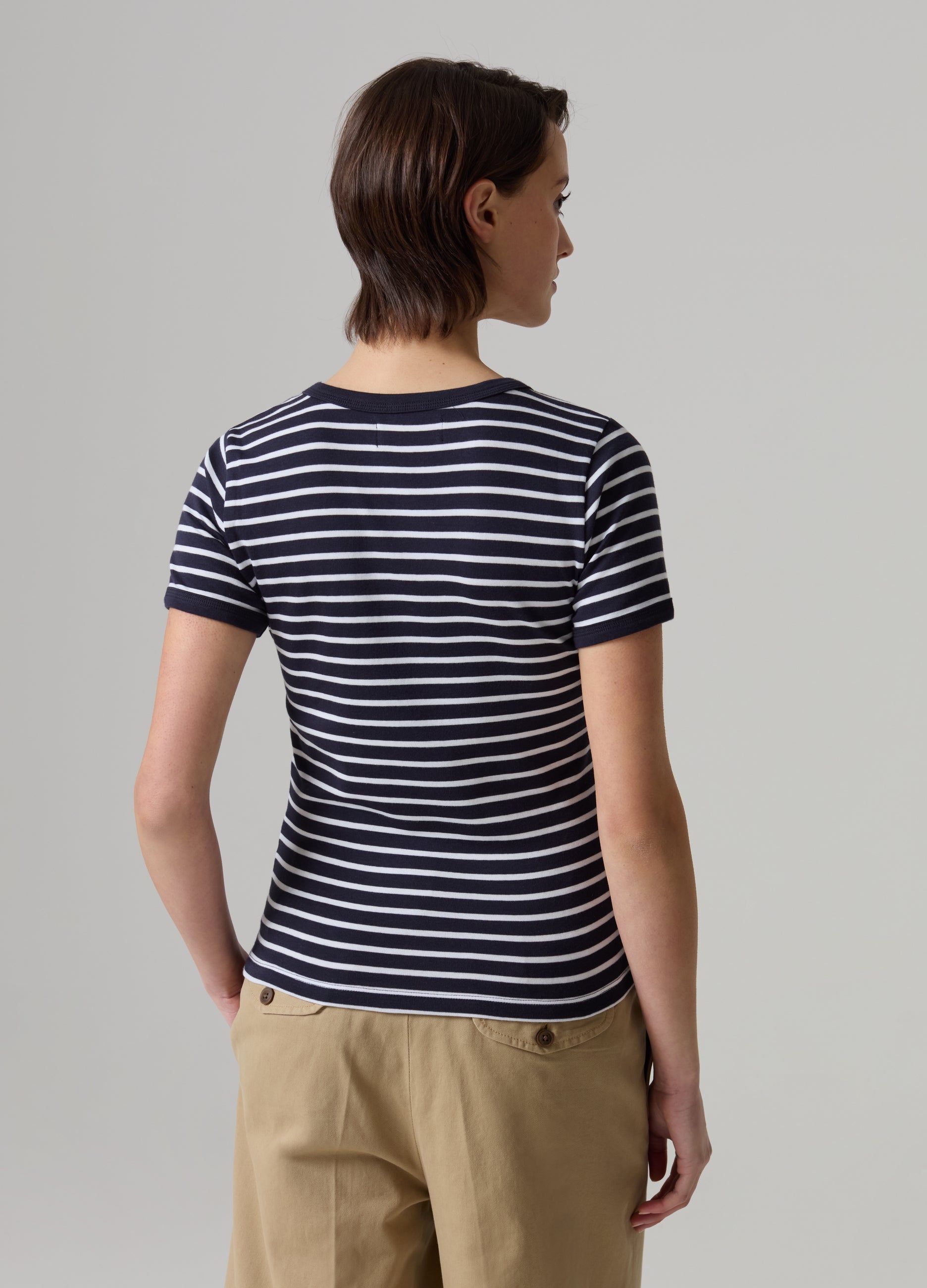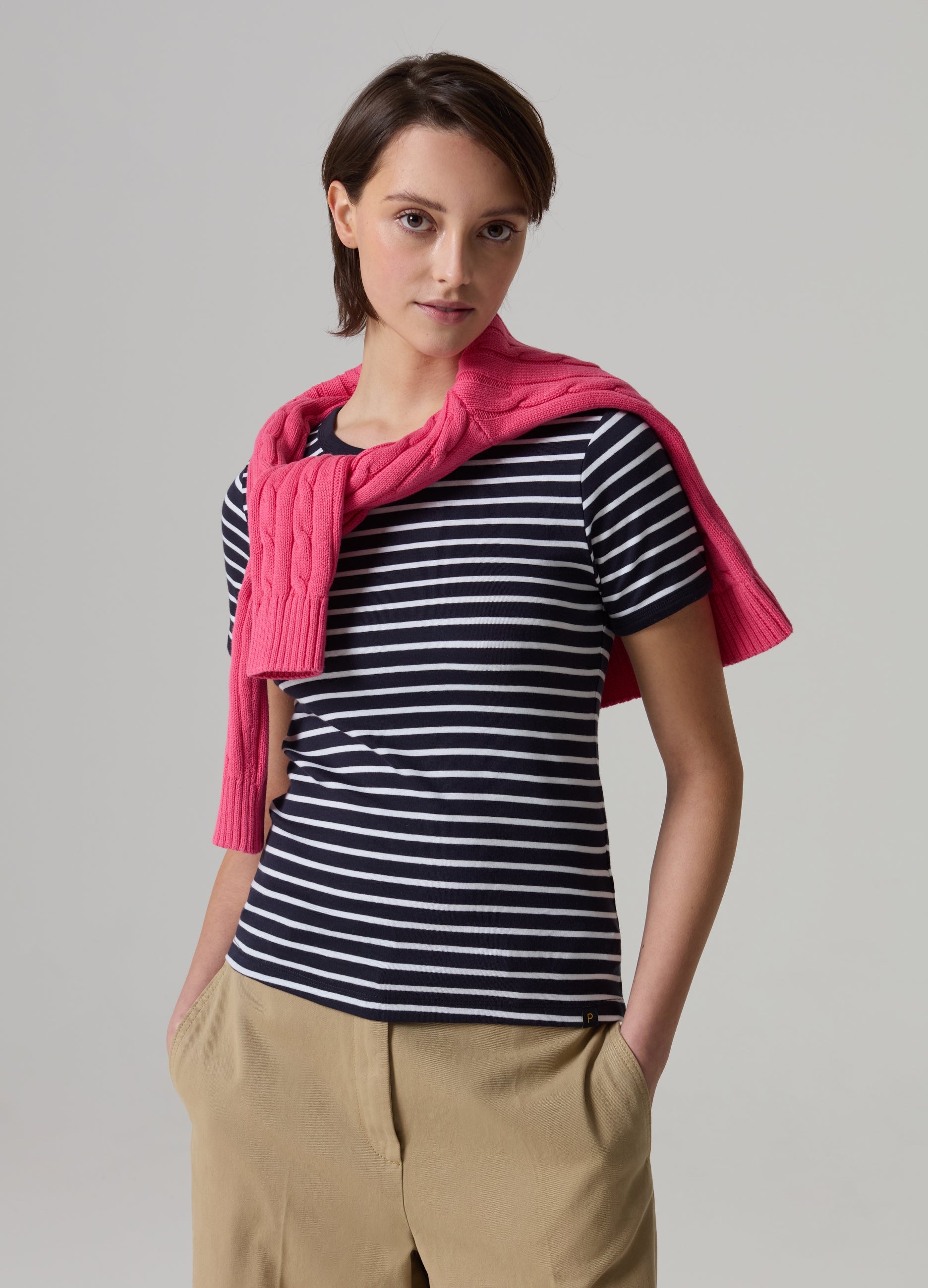 PIOMBO T-shirt in stretch cotton. Striped pattern. Round neck.