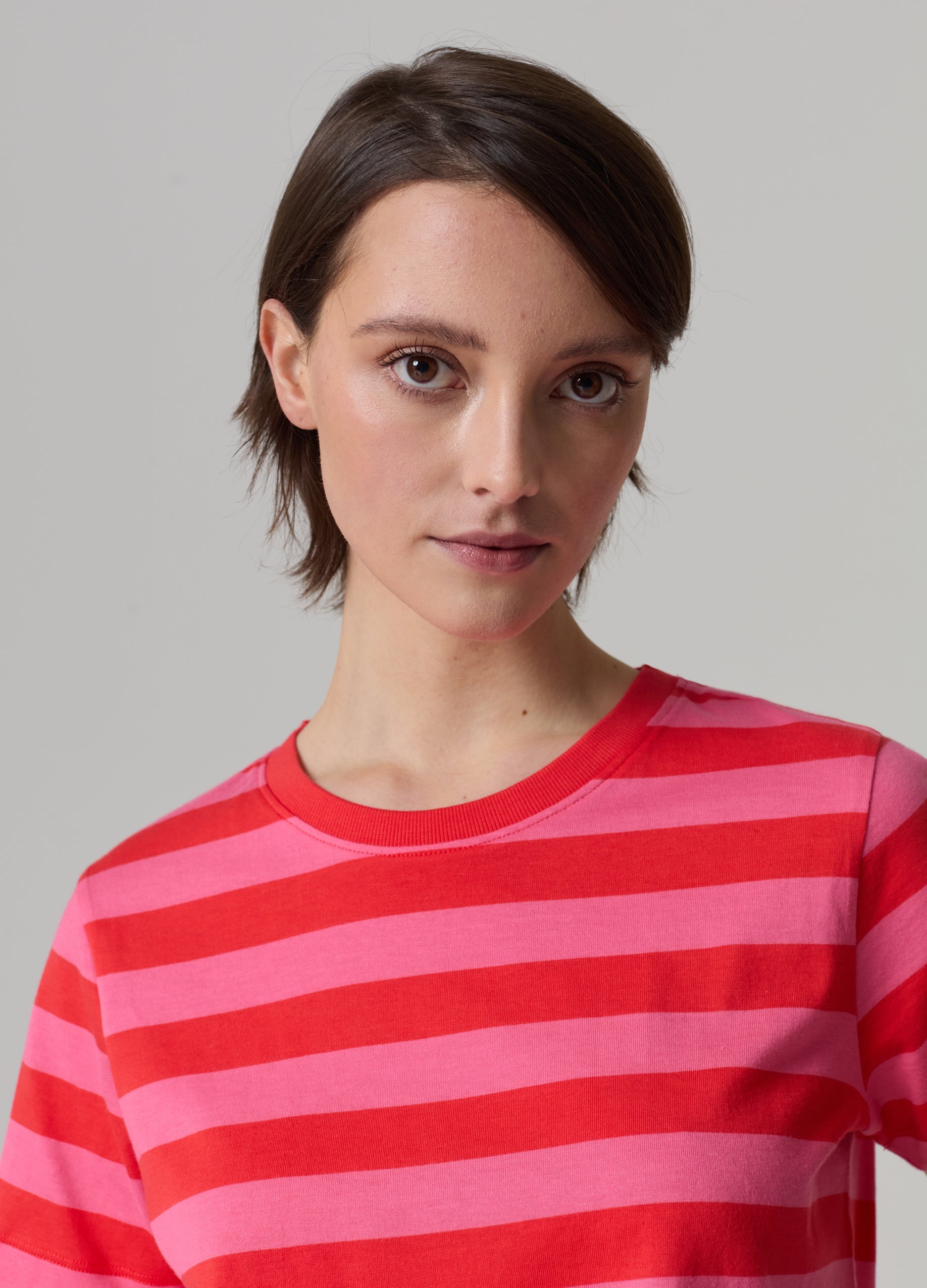 PIOMBO 100% cotton T-shirt. Striped pattern. Round neck.