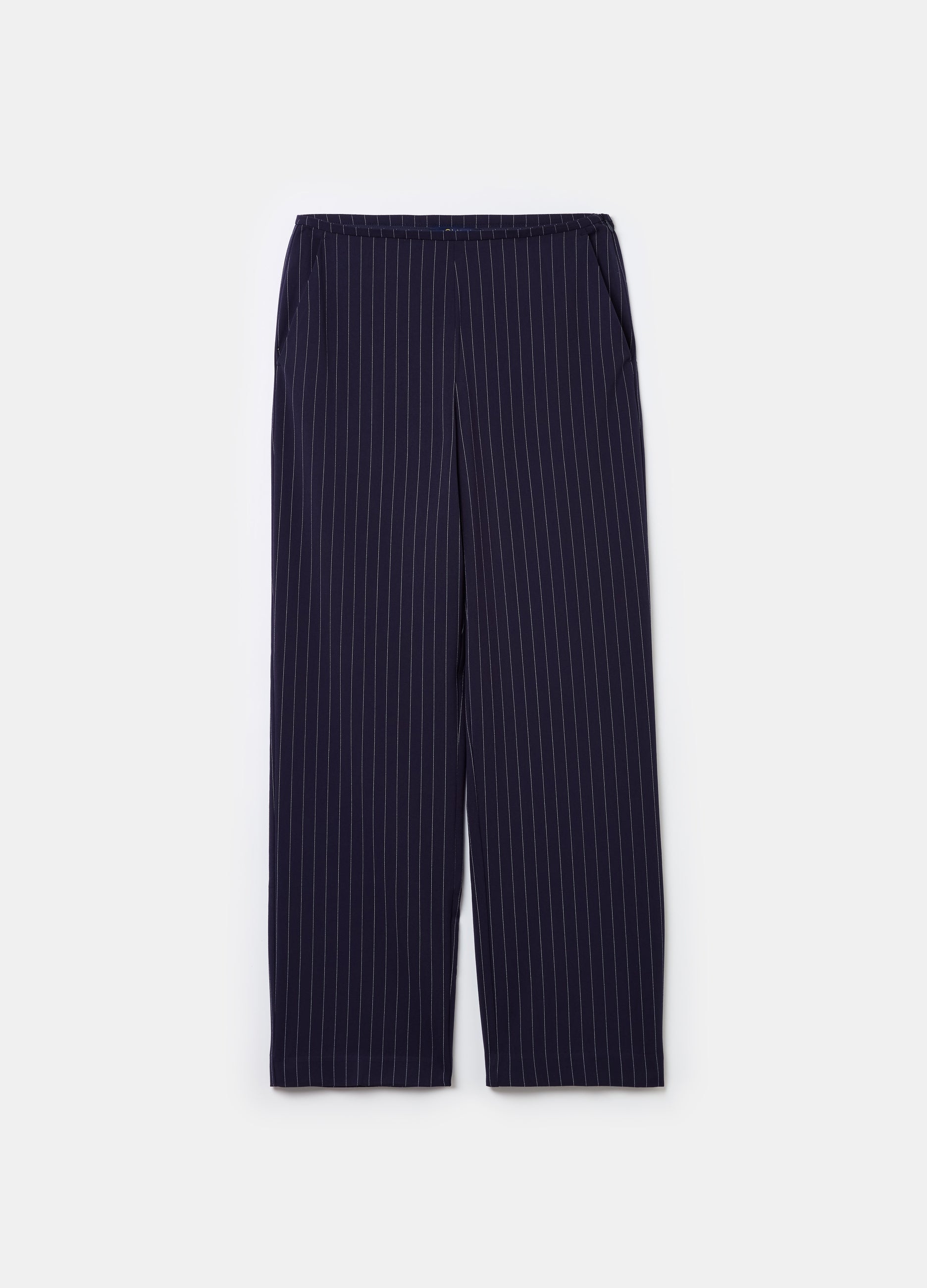 Straight-fit pinstriped trousers in FSC®-certified sustainable stretch viscose blend. Two slant pockets and two welt pockets on the back. Side zip fastening. This item is made using recycled polyester.