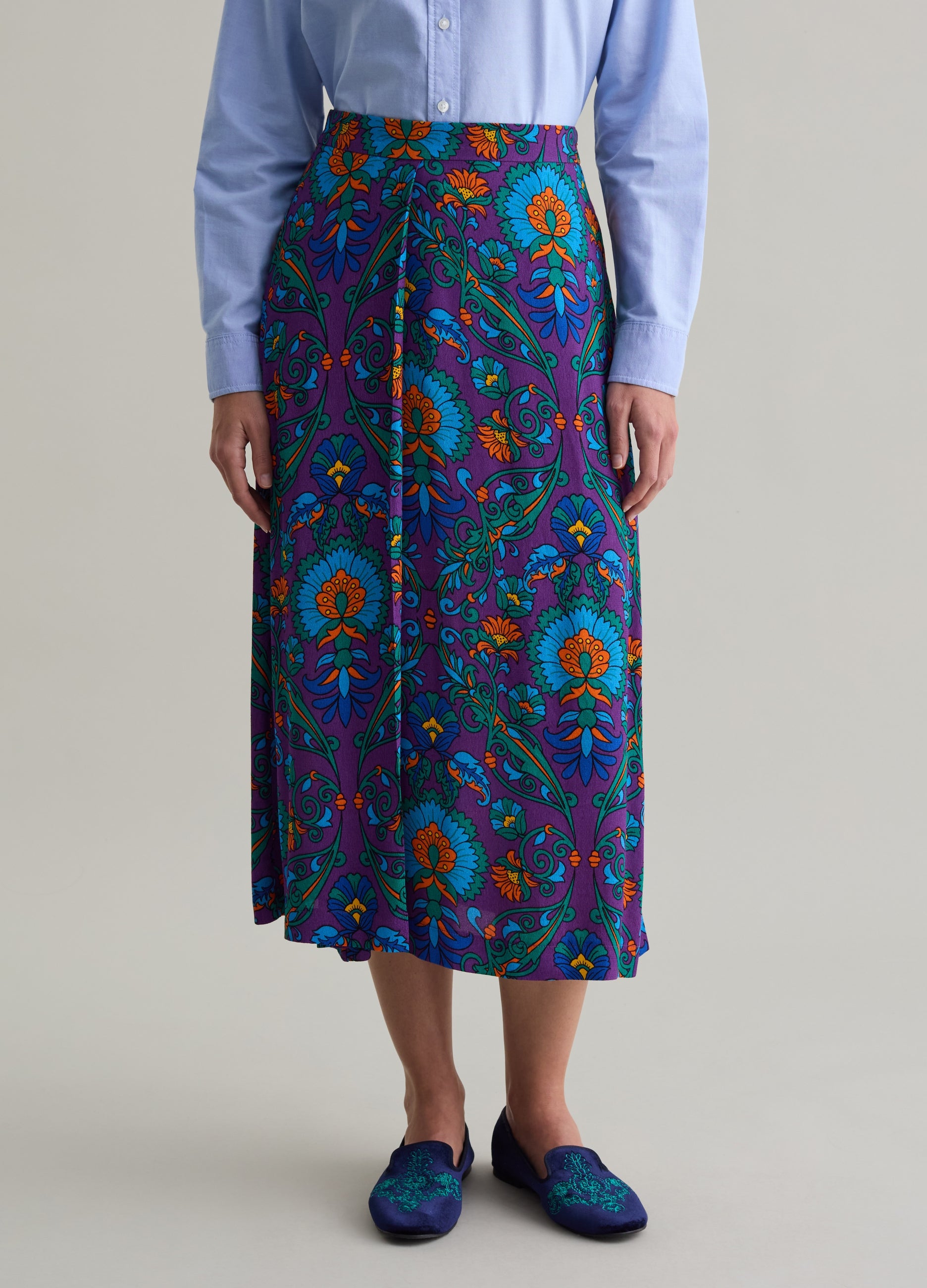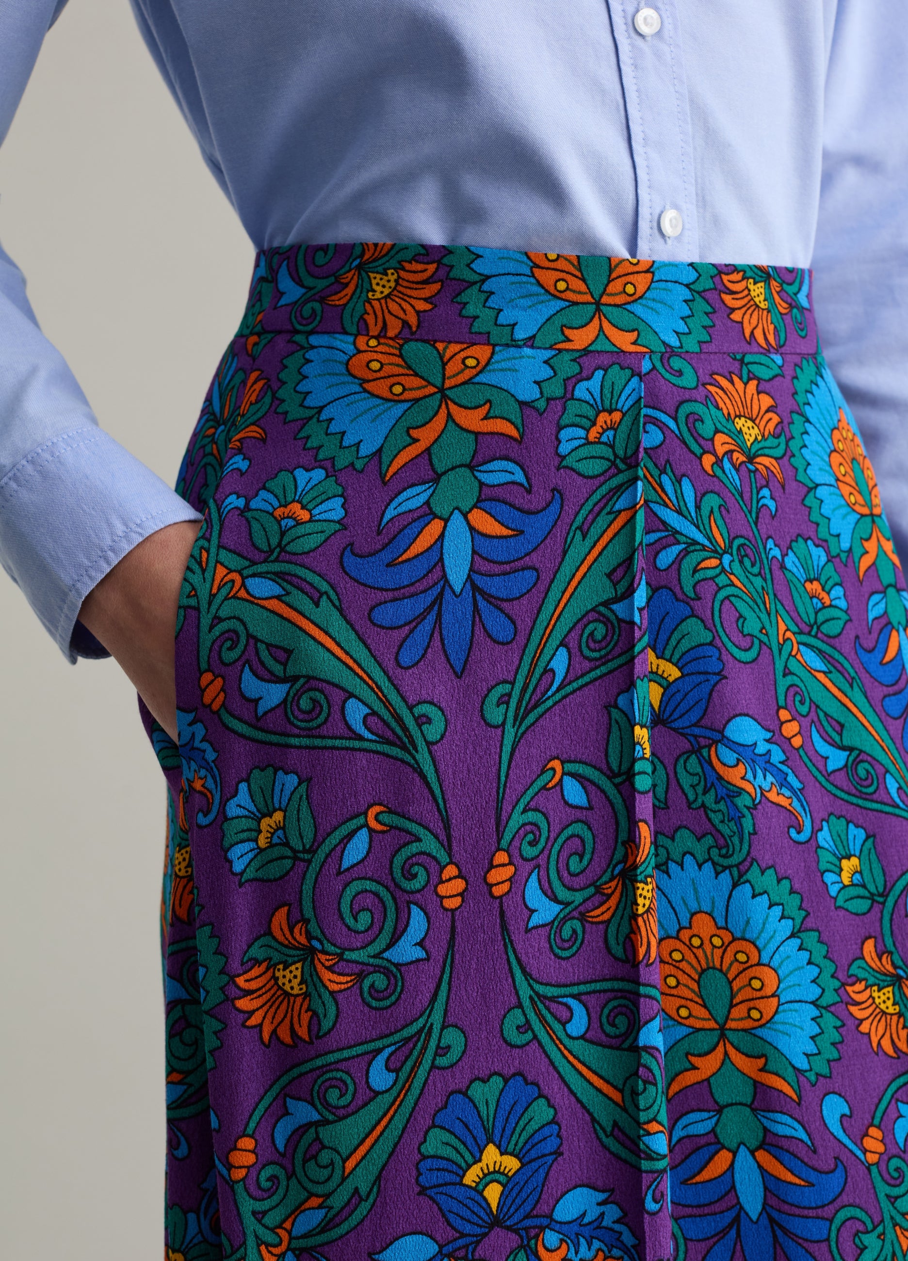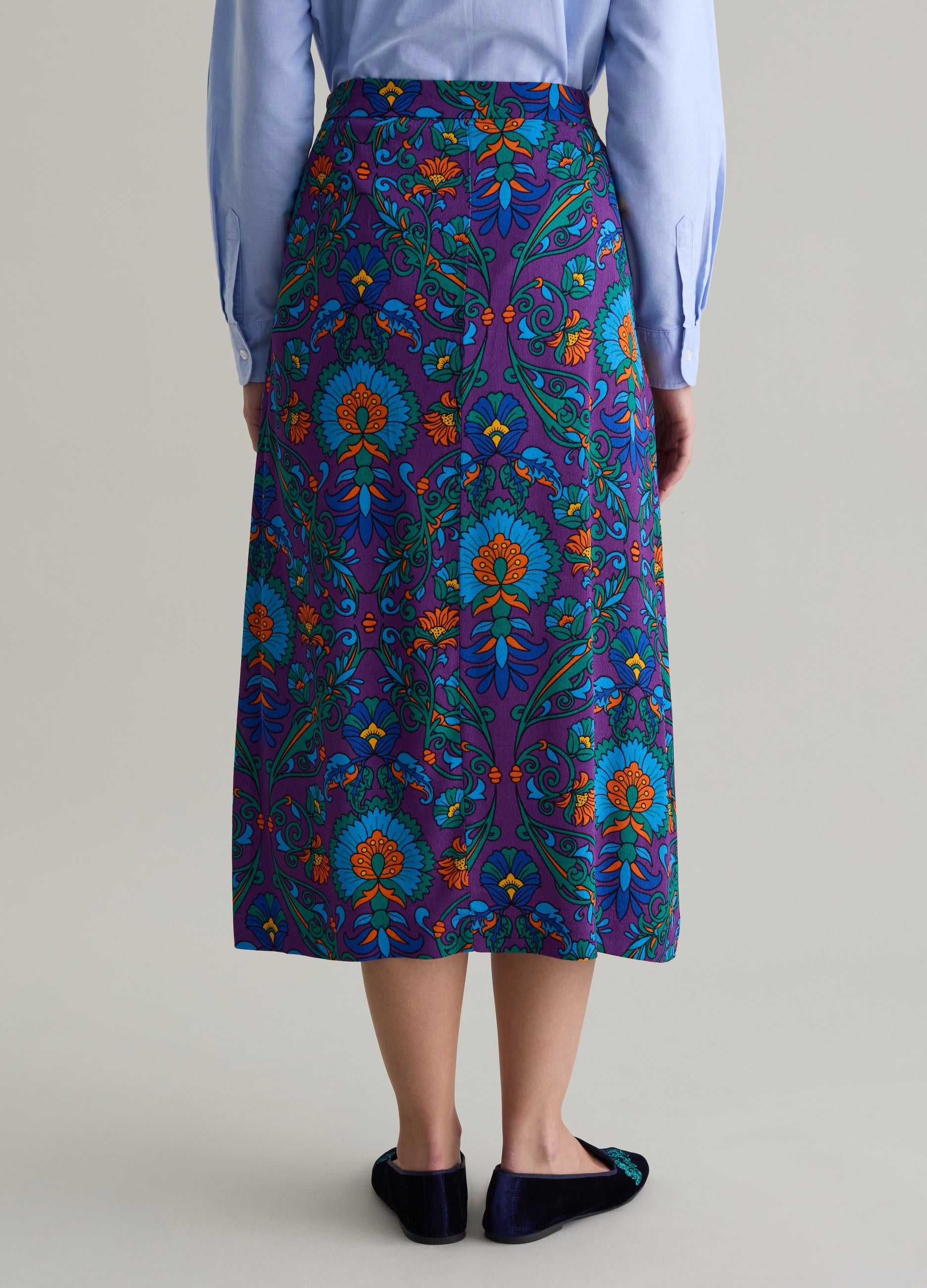 PIOMBO midi skirt in FSC®-certified sustainable 100% viscose. All-over cashmere print. Side zip fastening. Can be paired with matching shirt.
