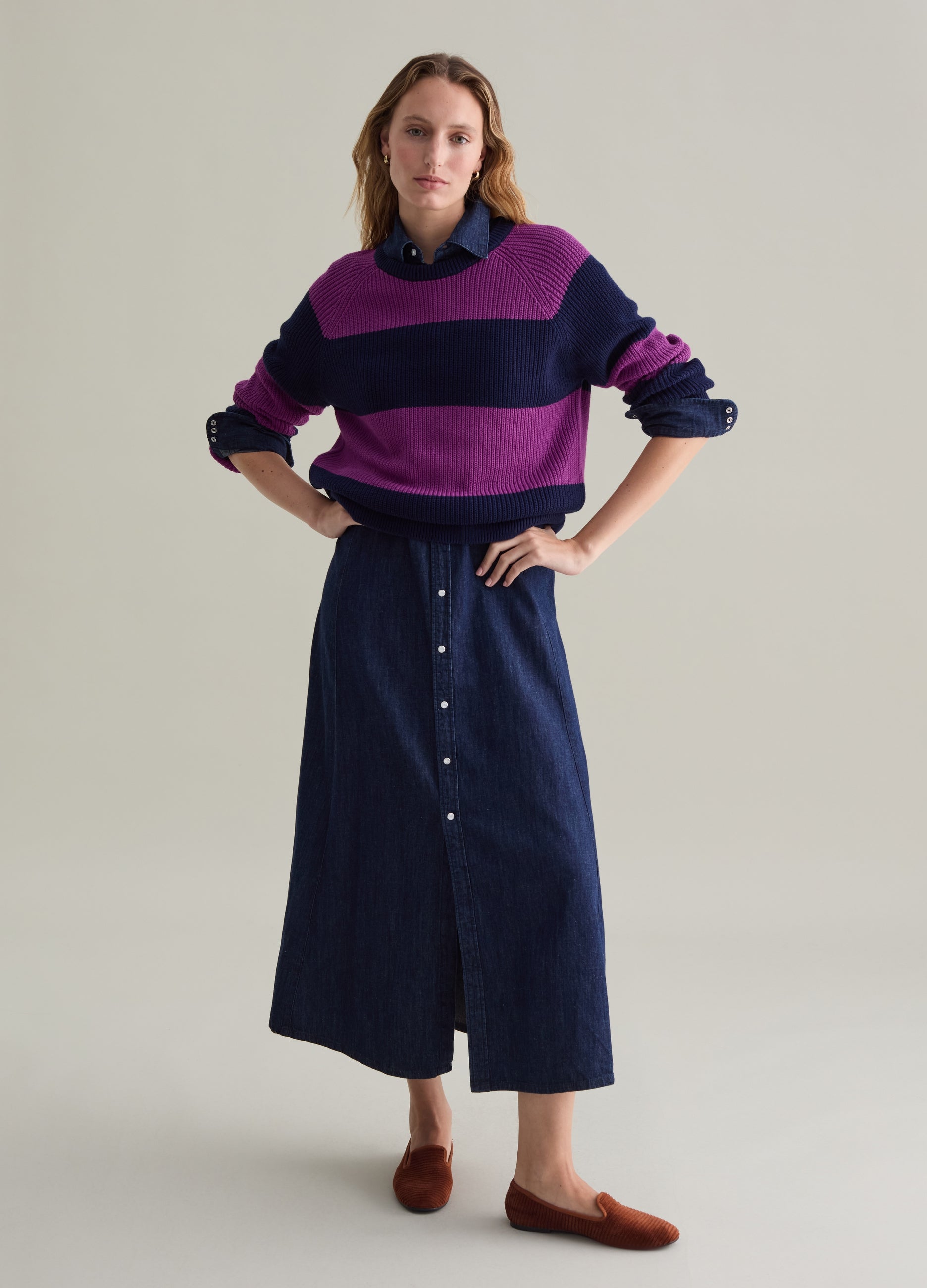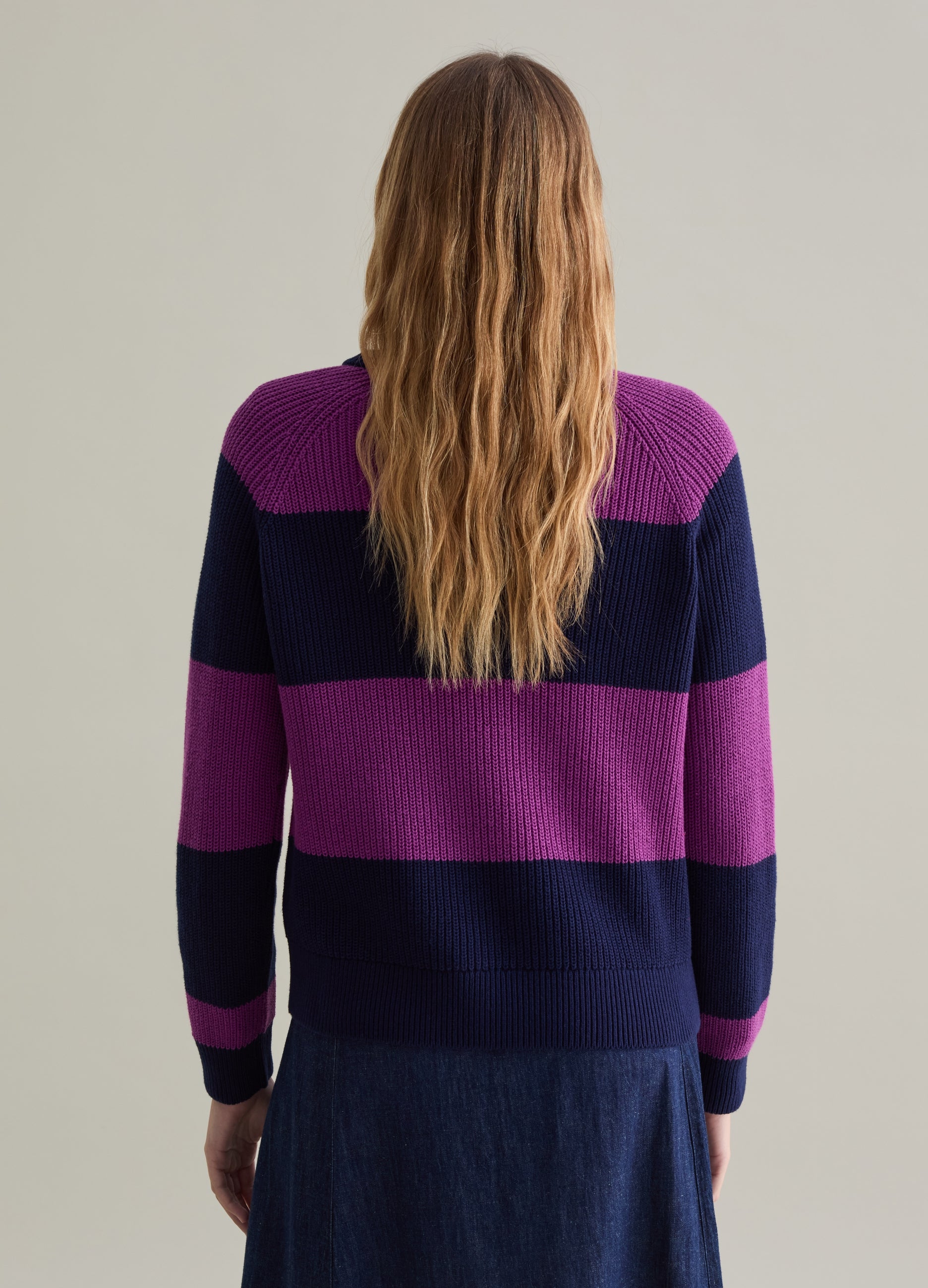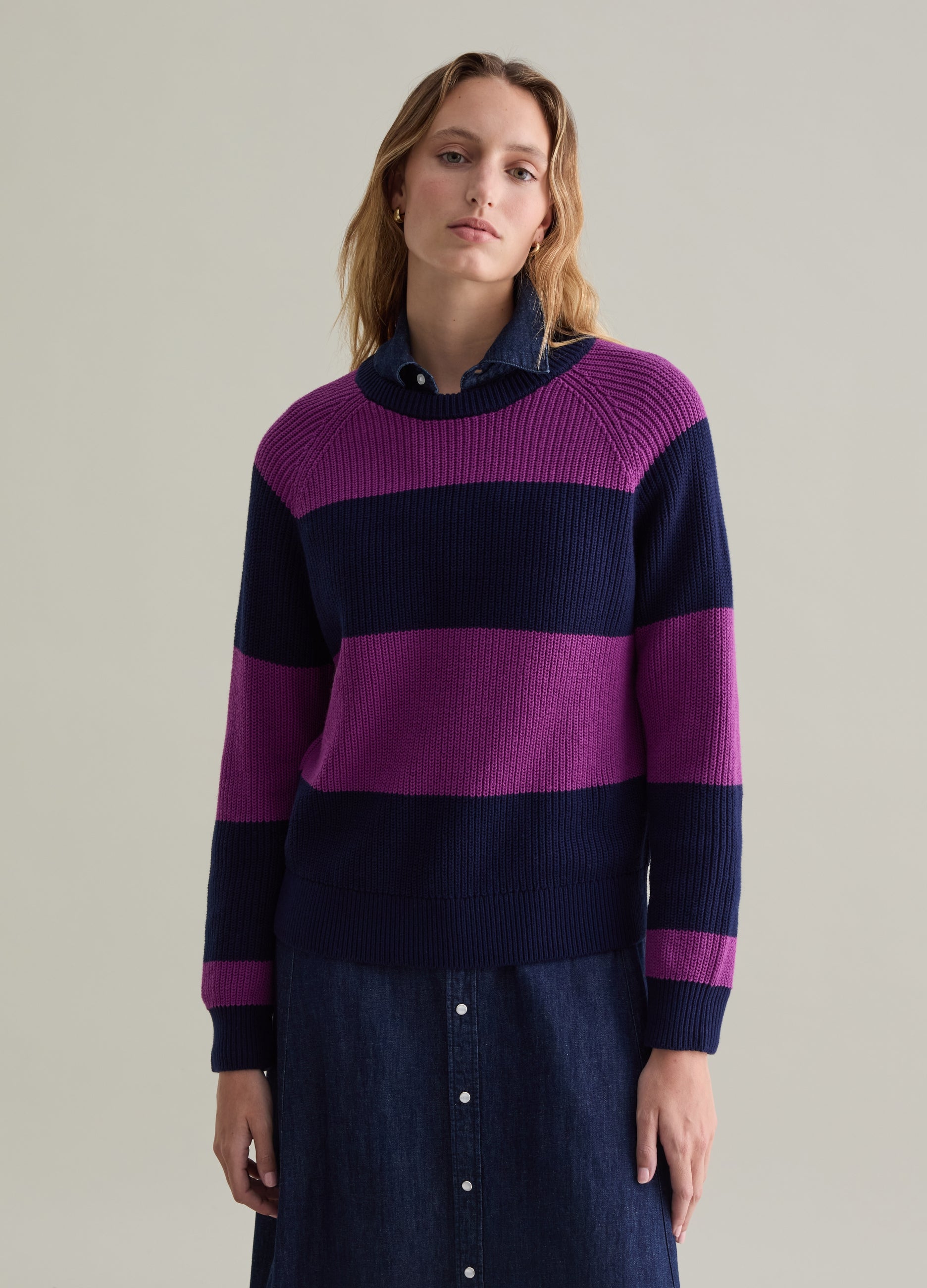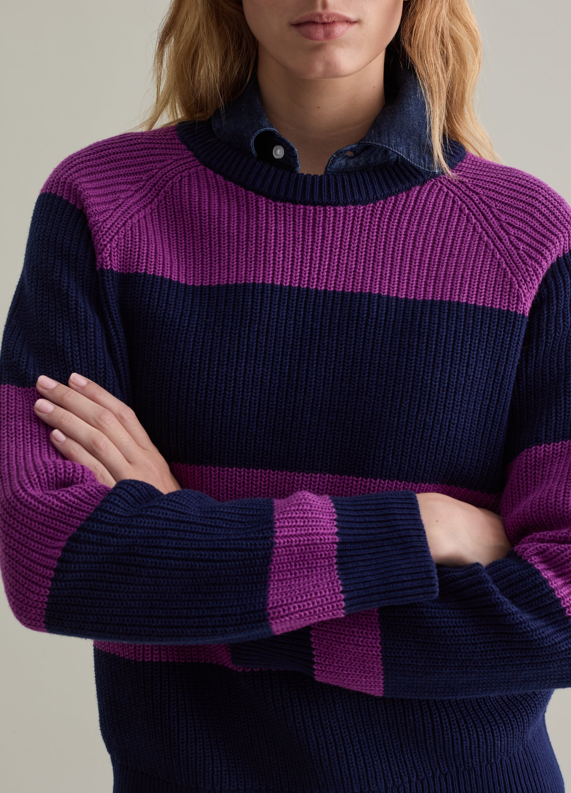 PIOMBO cotton blend knit pullover with ribbed design. Striped pattern. Round neck. Raglan sleeves.