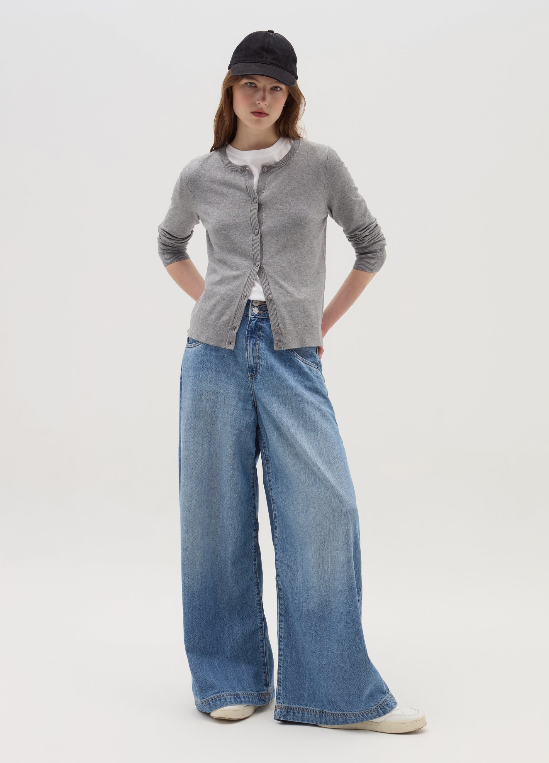 Cardigan in mélange FSC®-certified sustainable viscose blend yarn. Round neck. Matching button fastening. Ribbed trims.