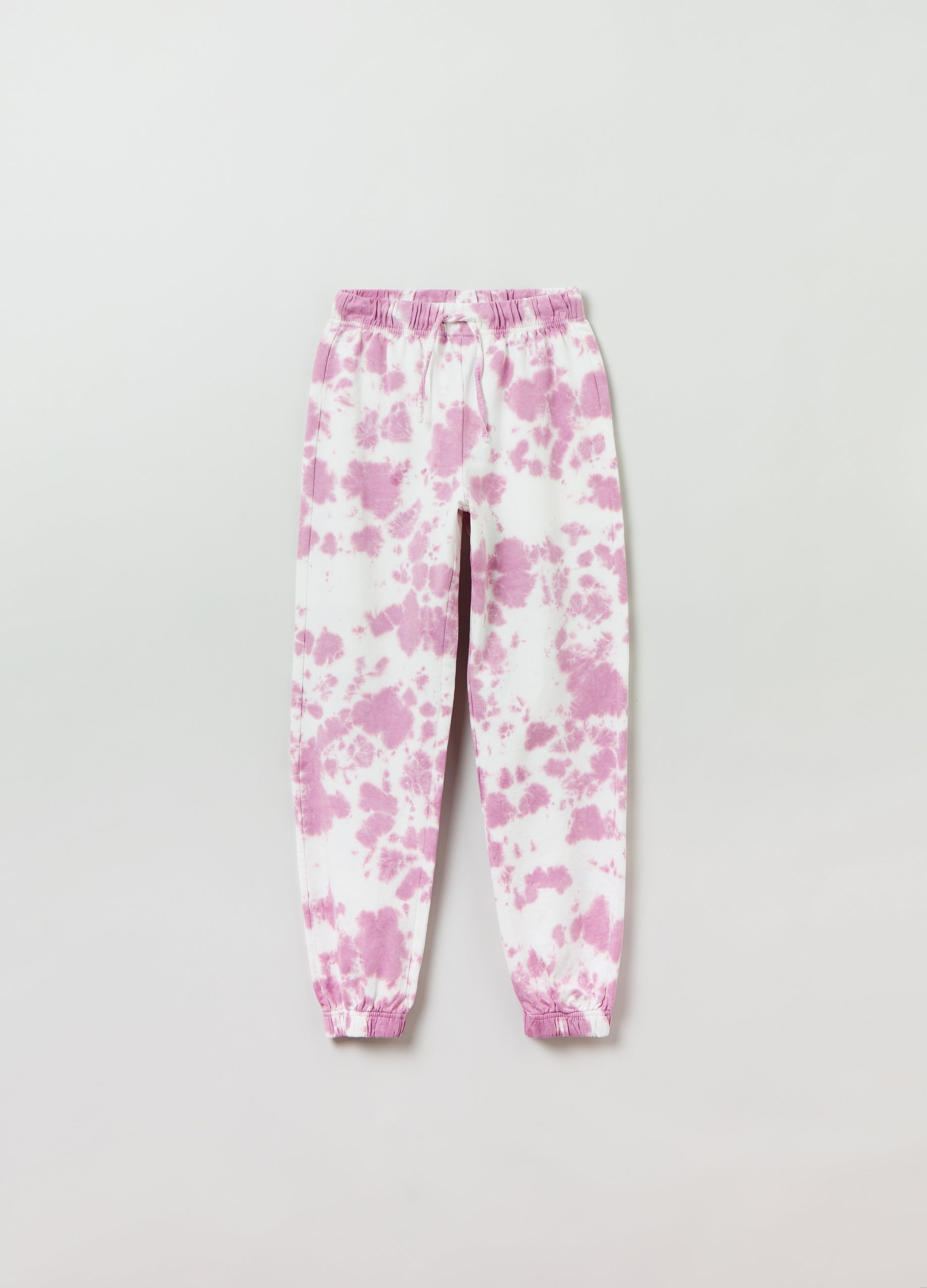 FLEECE JOGGERS IN 100% COTTON WITH DRAWSTRING. ELASTIC WAIST BAND AND ANKLES. ALL-OVER TIE DYE PRINT.