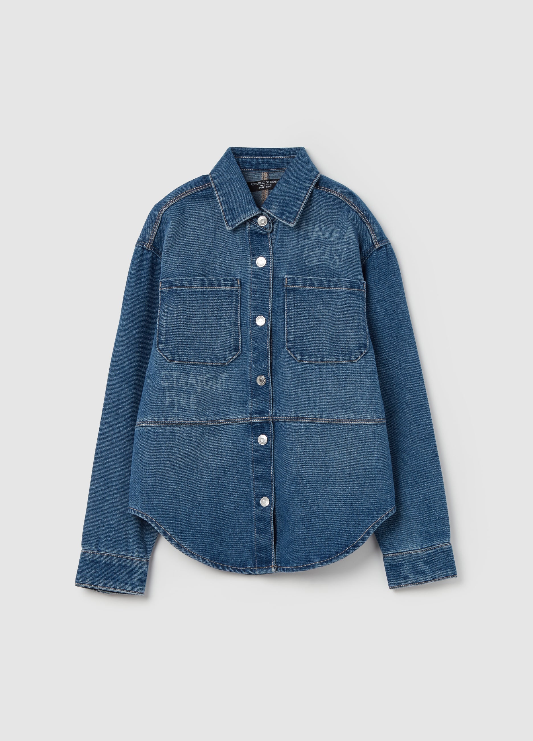 Ovs Denim Shirt With Lettering Print