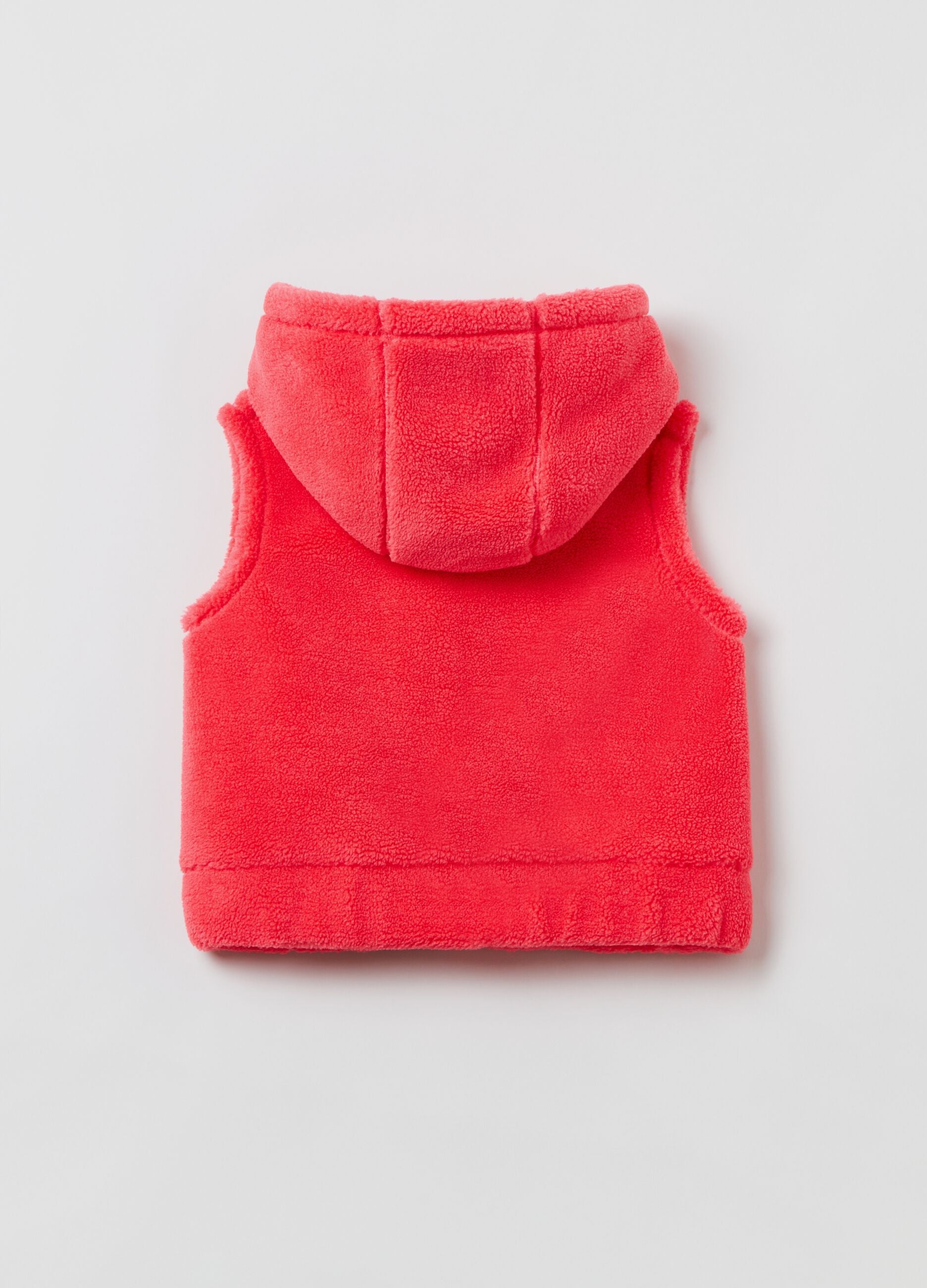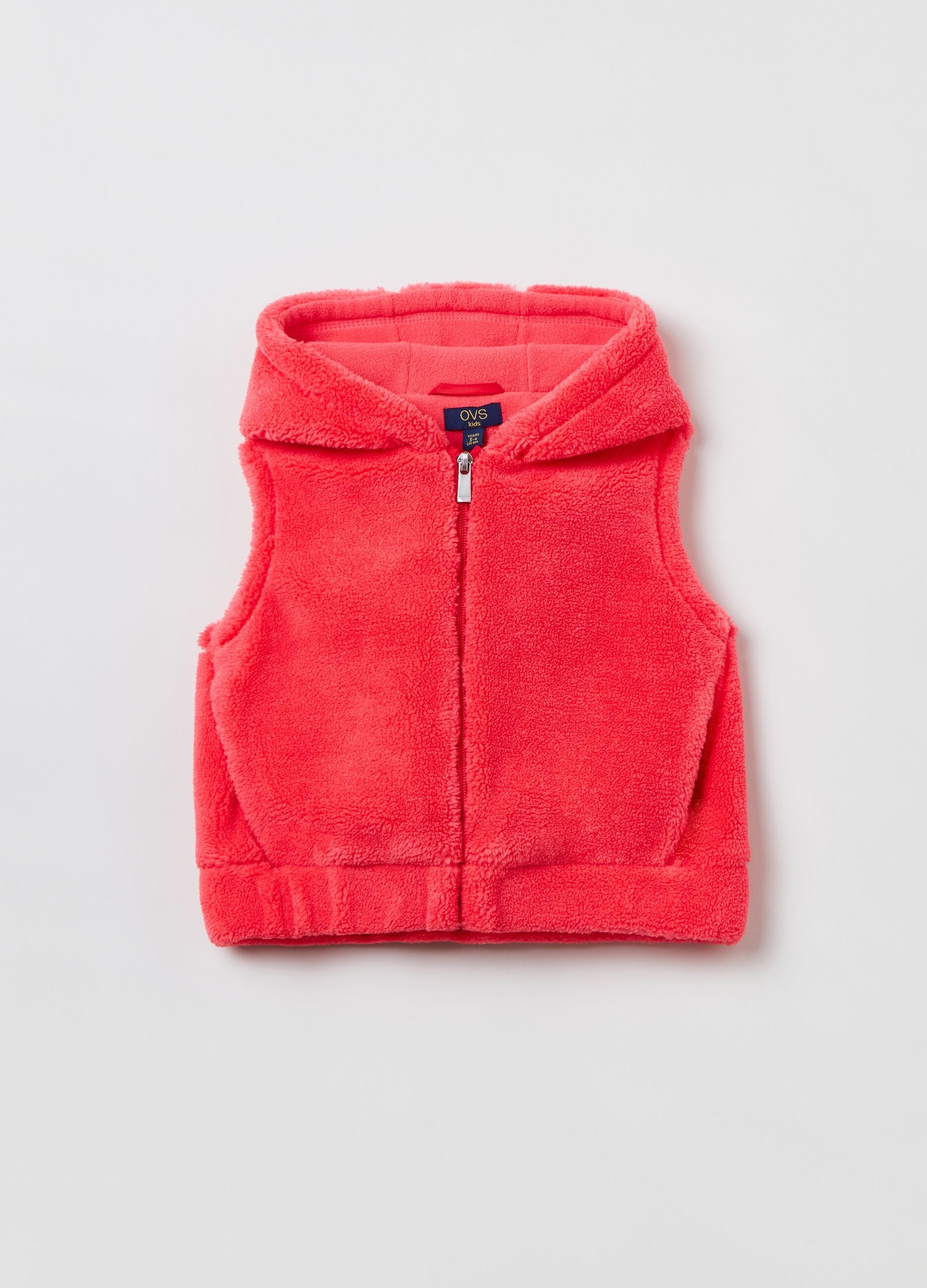 Full-zip gilet in sherpa with hood. Fleece interior.