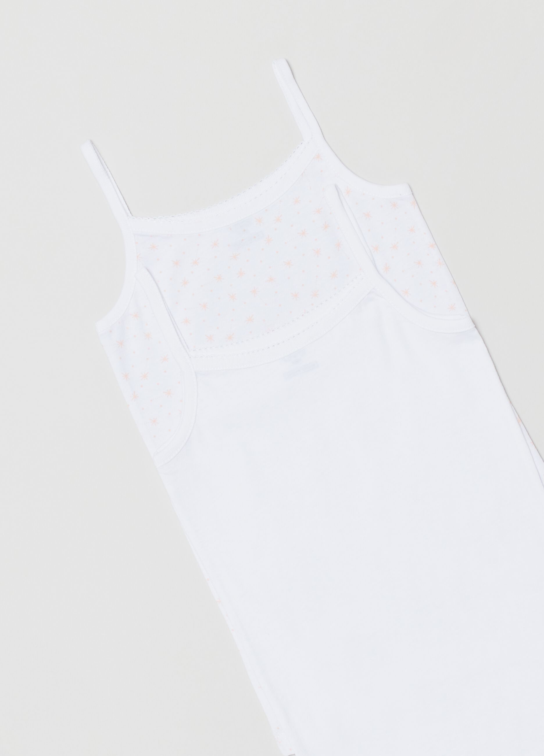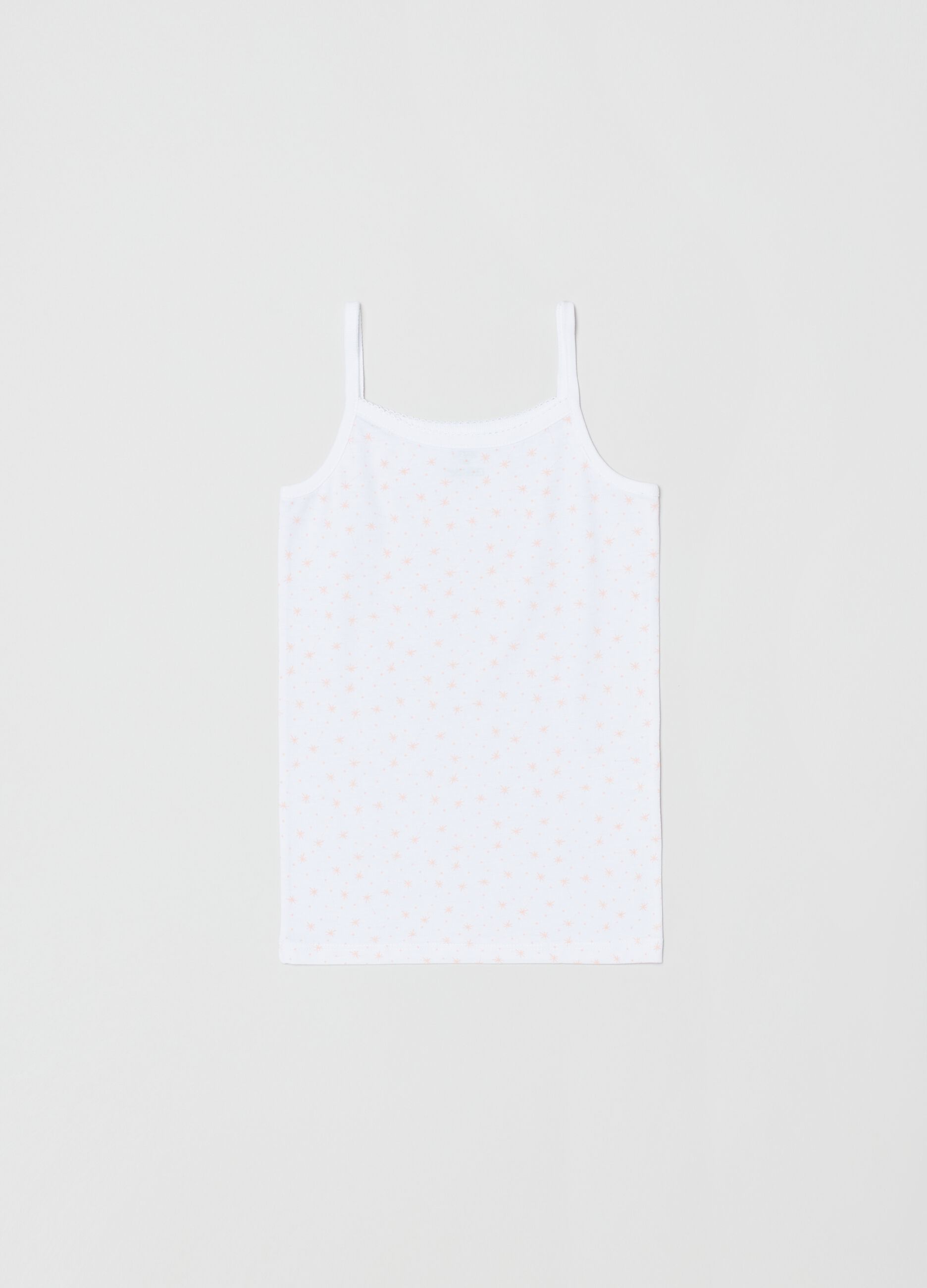 Vest top in 100% cotton. Round neck with trim. Spaghetti straps. All-over star print.