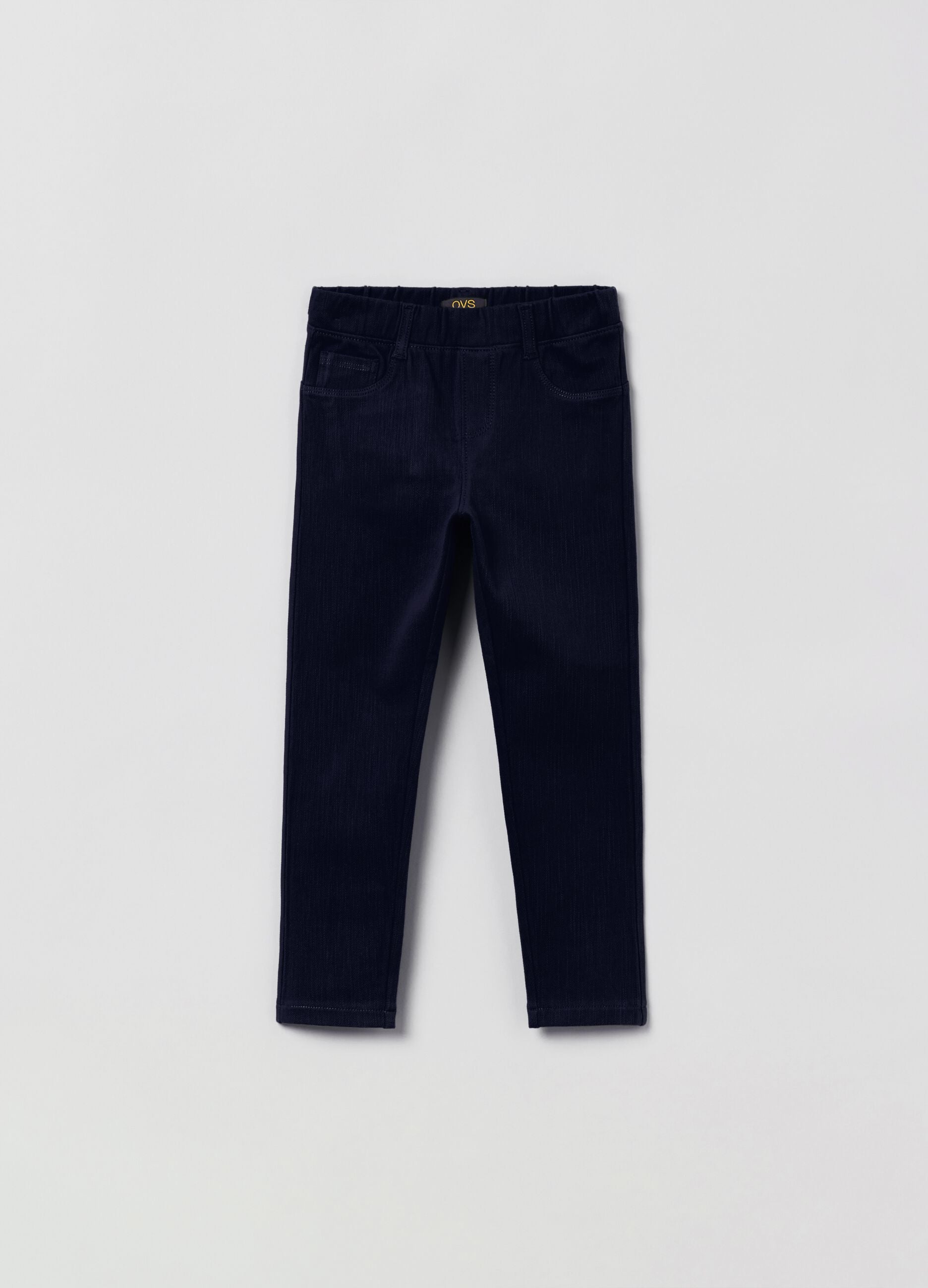 Stretch cotton treggings with iridescent effect. Elasticated waist. Five pockets.
