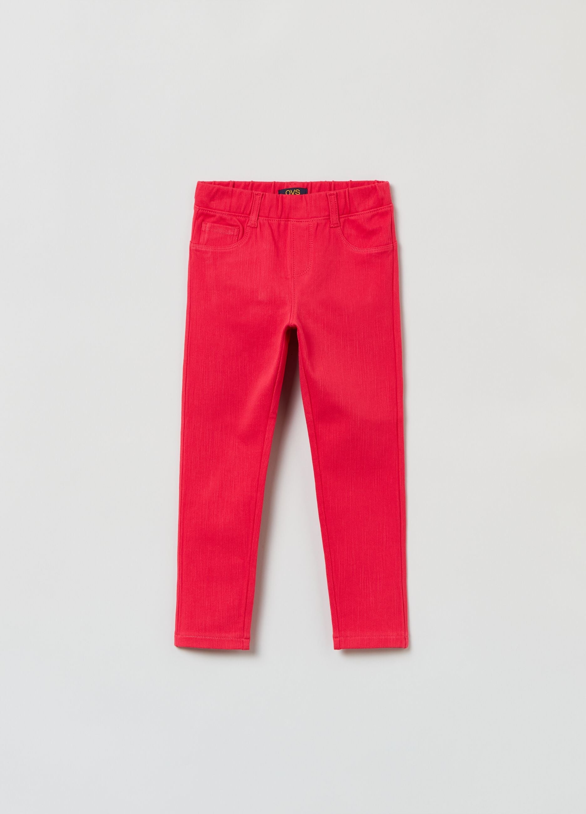 Stretch cotton treggings with iridescent effect. Elasticated waist. Five pockets.