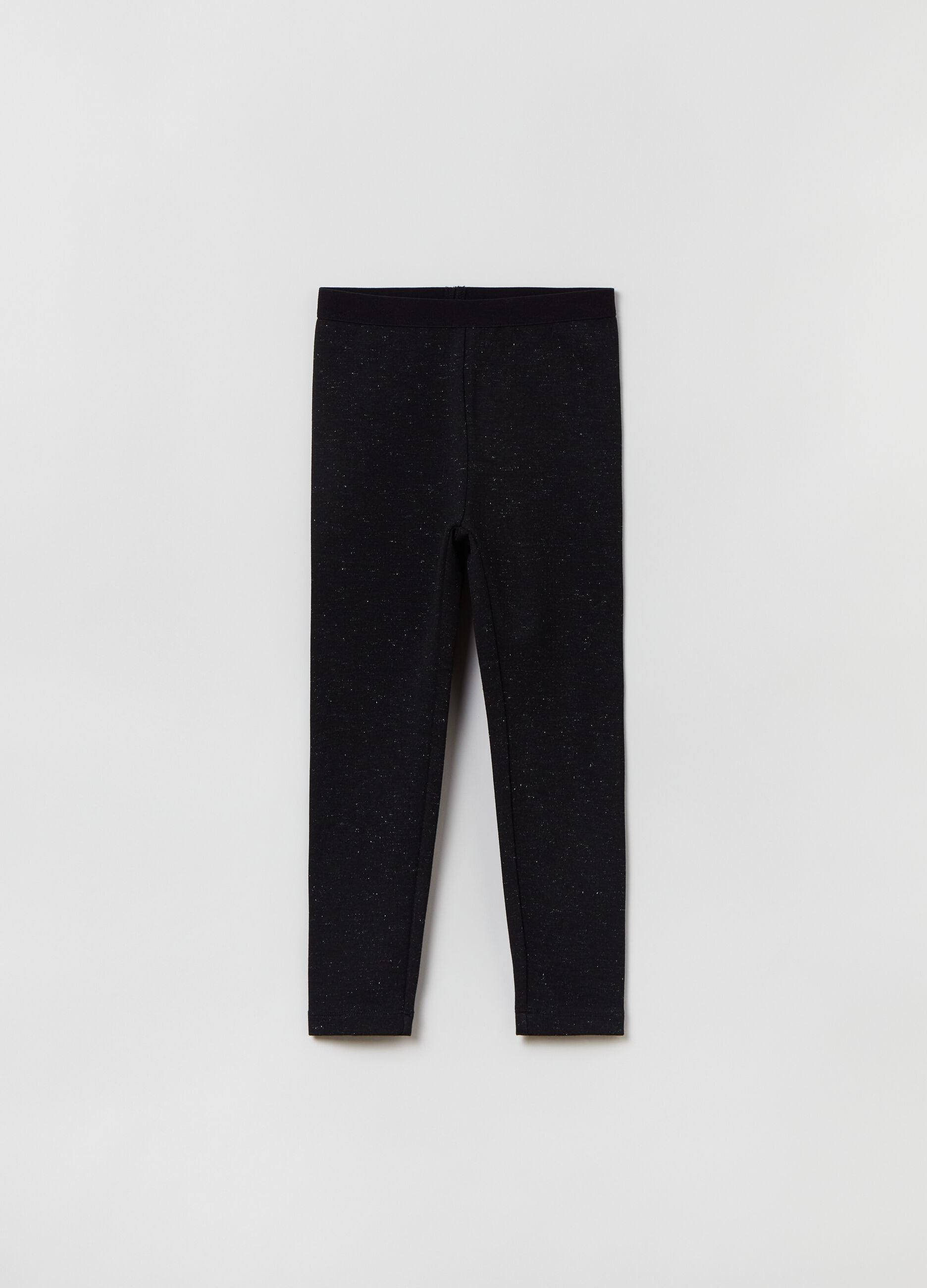 Stretch viscose blend leggings with lurex. External elastic waistband.