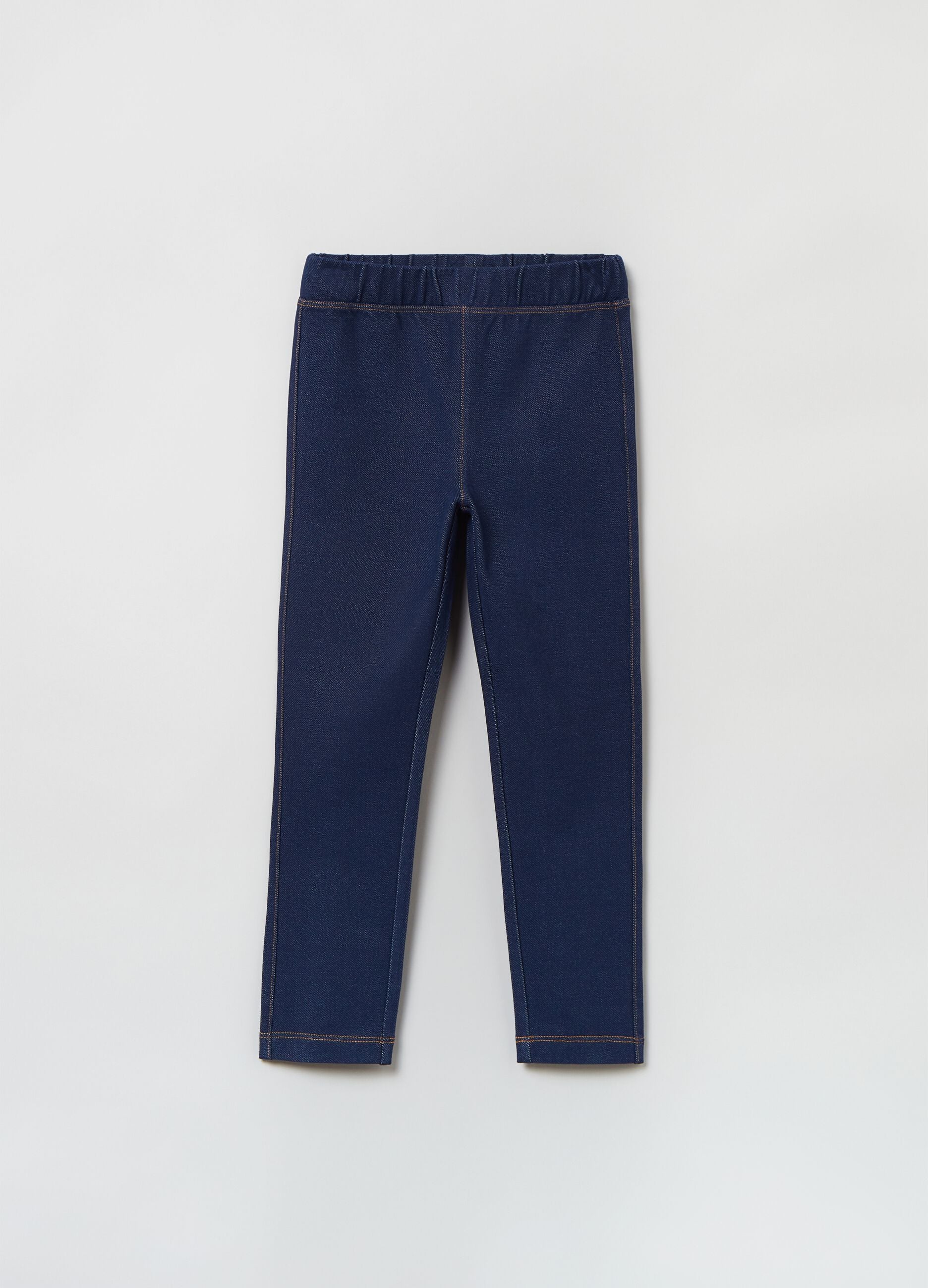 Stretch cotton blend jeggings with diagonal weave. Elasticated waist.
