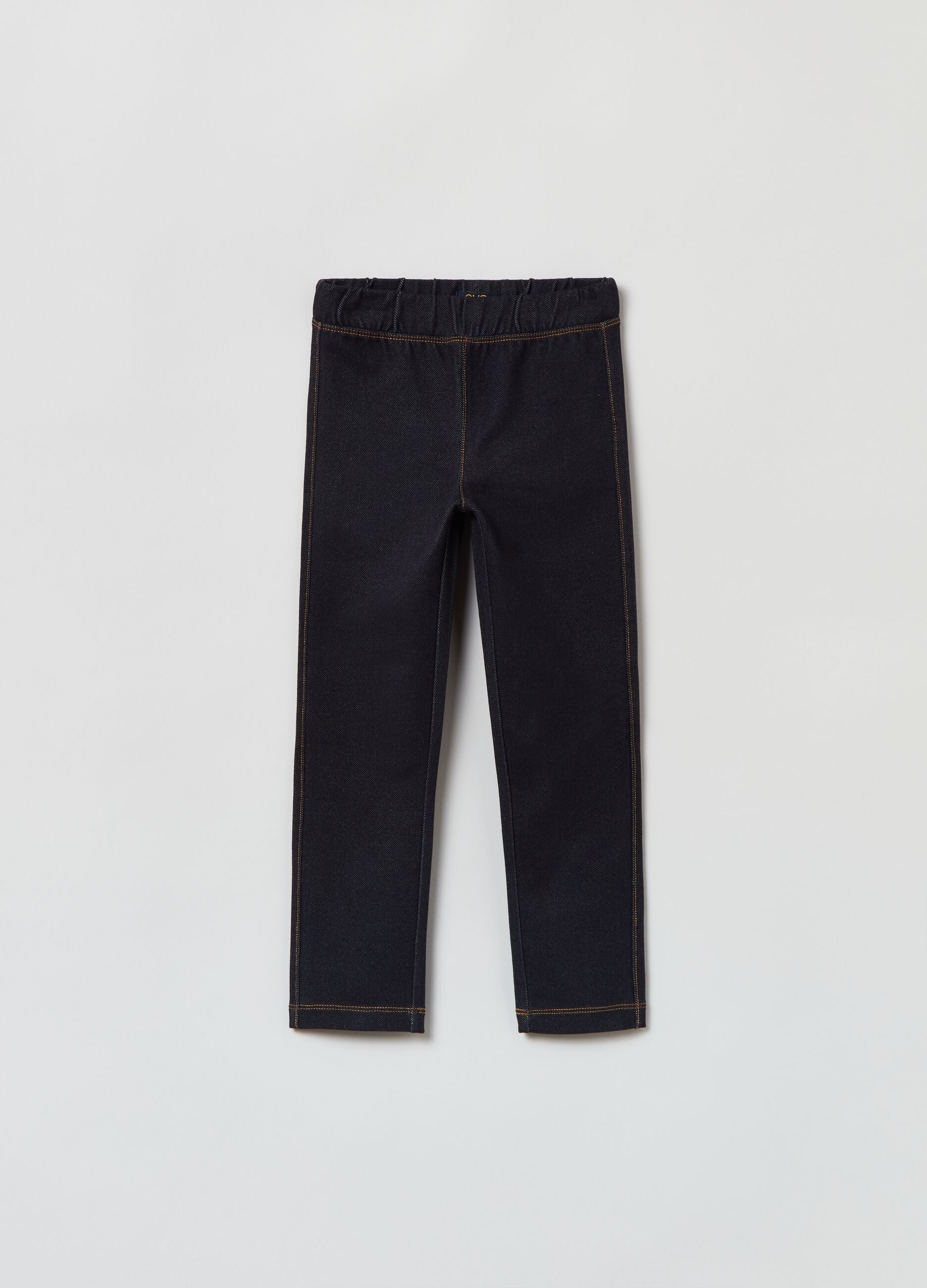 Stretch cotton blend jeggings with diagonal weave. Elasticated waist.