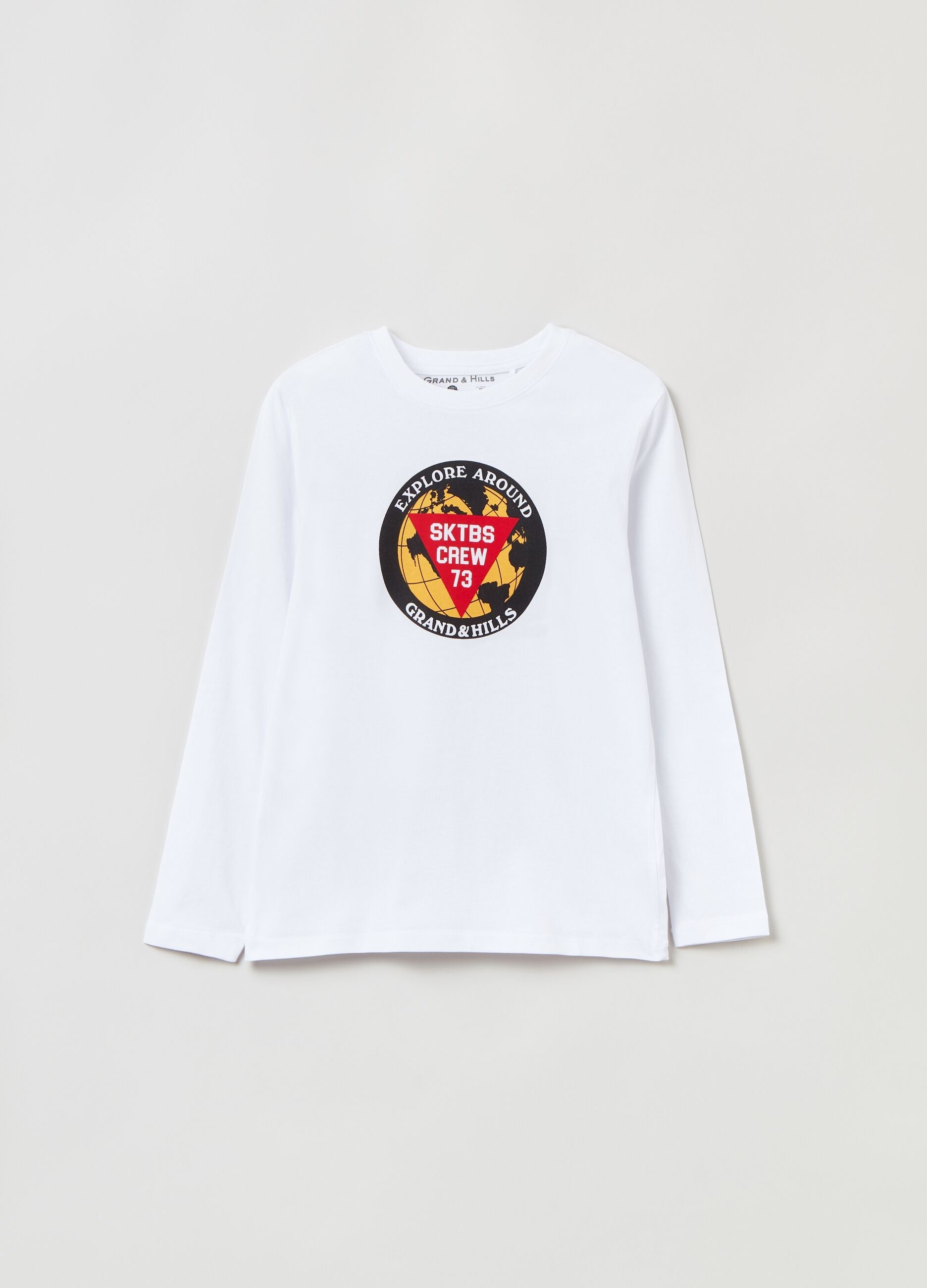 100% cotton T-shirt with long sleeves. Round ribbed neck. Trekking print with logo on the front.