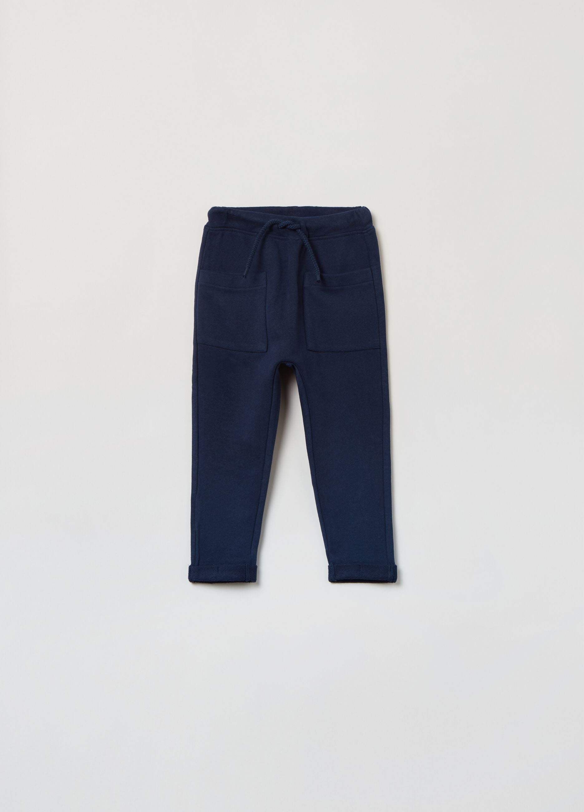 Joggers in 100% cotton French terry (non-brushed fleece lining) with drawstring. Two front pockets.