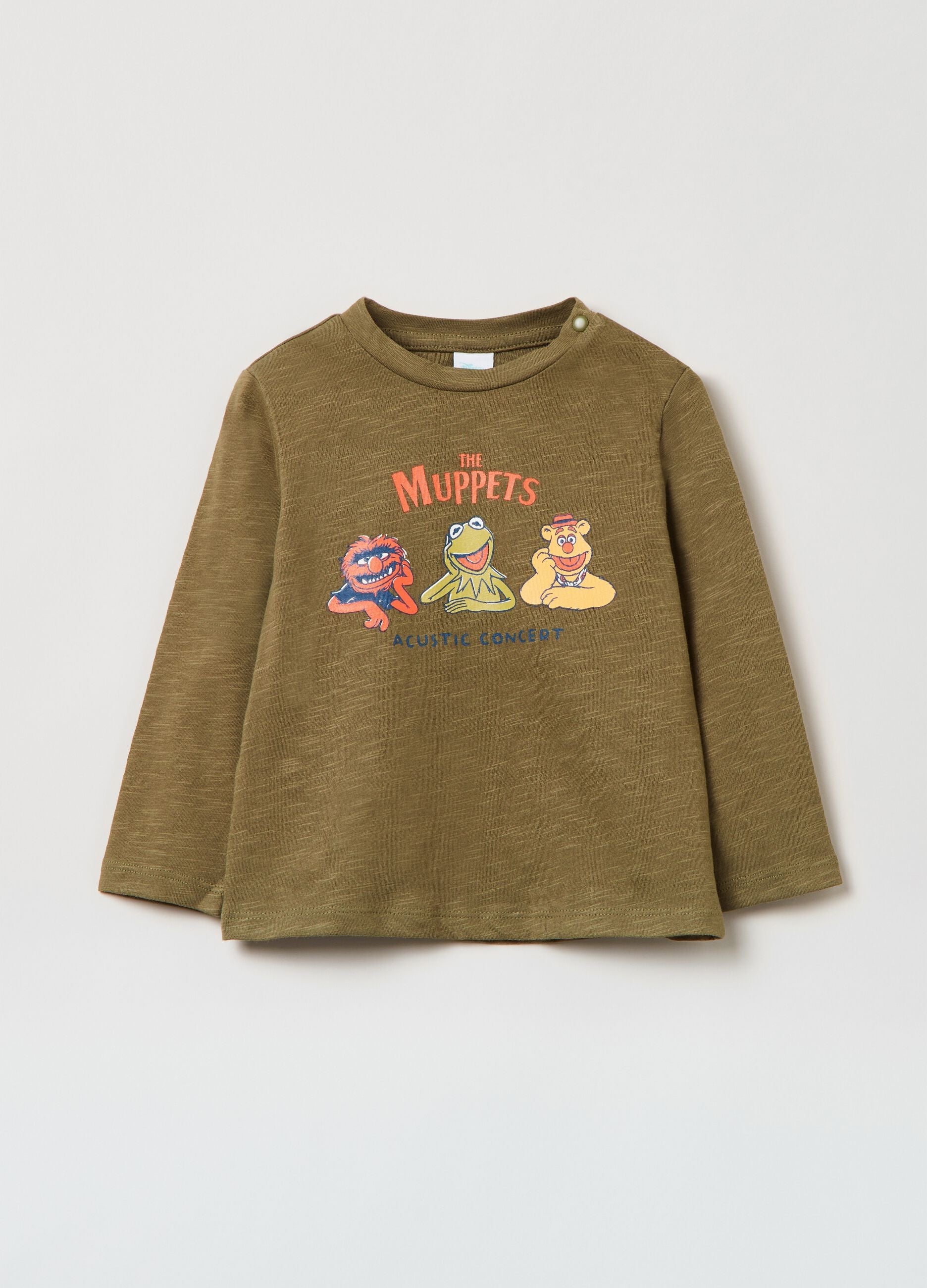 100% cotton T-shirt with long sleeves. Round neck with snap buttons on the shoulder. Disney Baby The Muppets print on the front and back.
