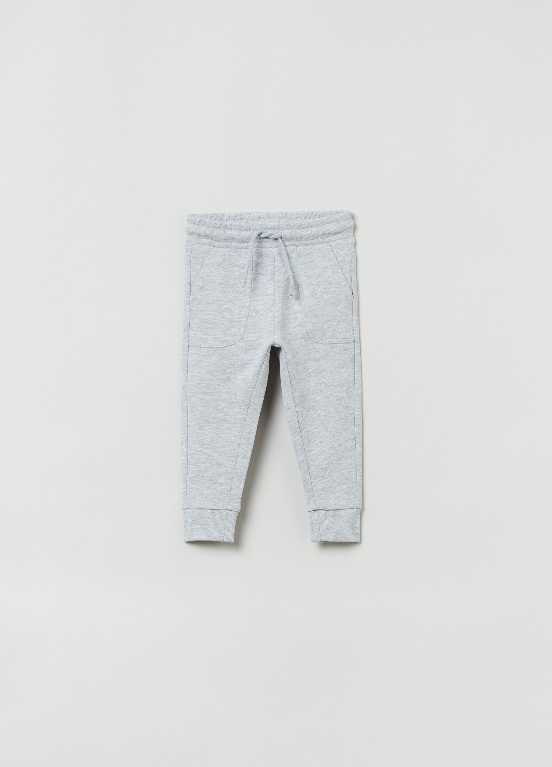 Plush joggers in mélange viscose and cotton with drawstring. Two front pockets. Ribbed ankle cuffs.