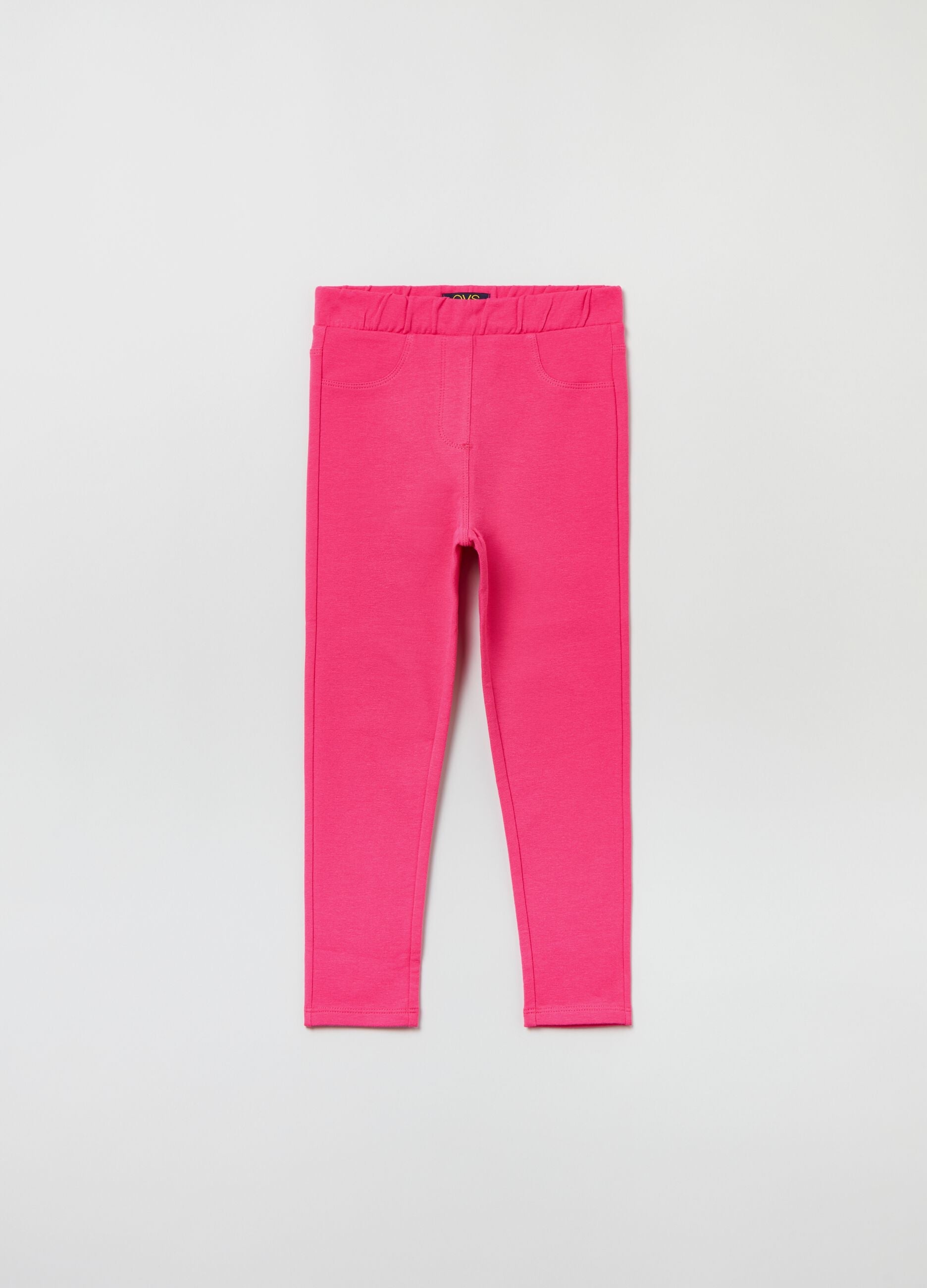 Stretch cotton treggings with elastic waistband. Two false front pockets.