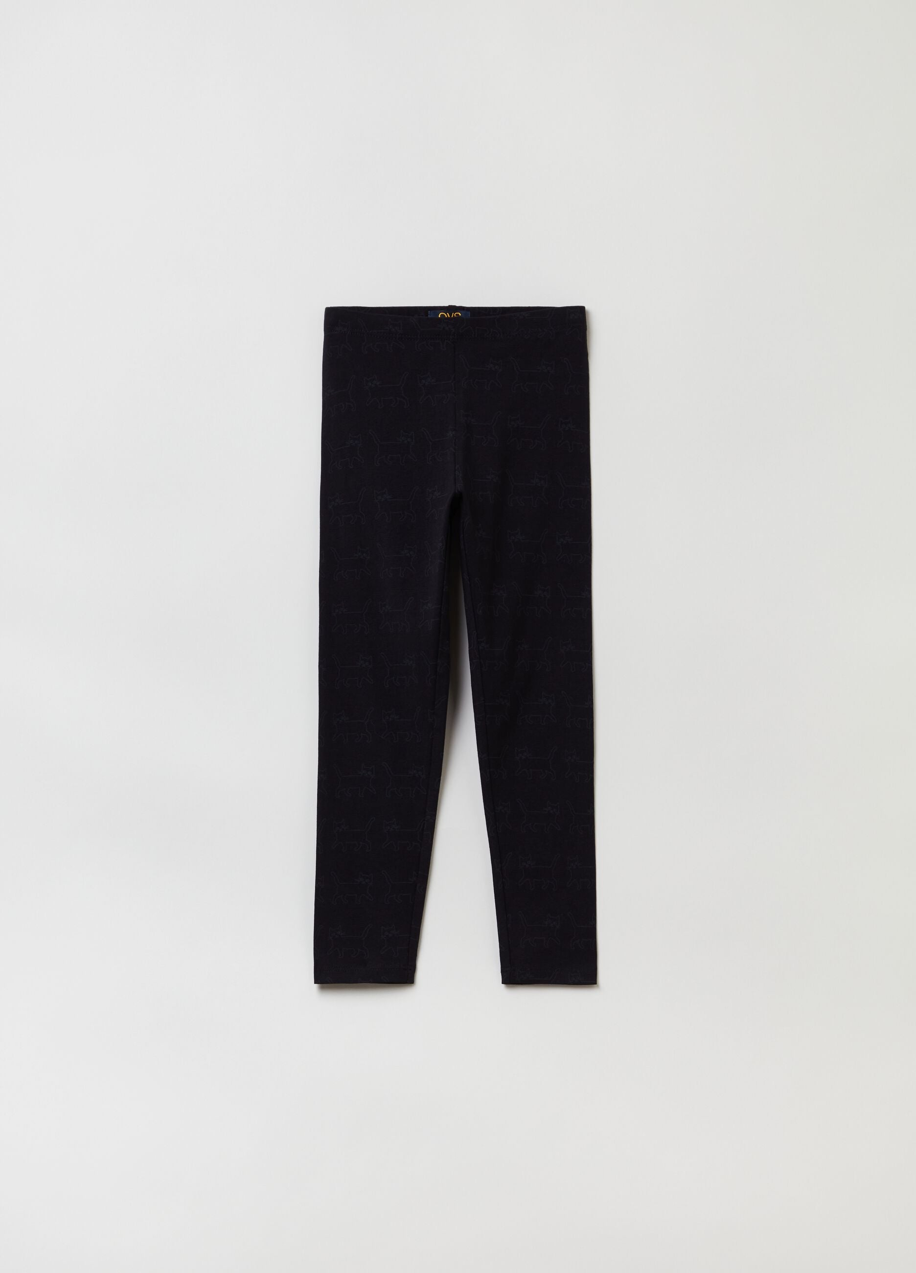 Stretch cotton and viscose leggings with all-over kittens print. Elasticated waist.