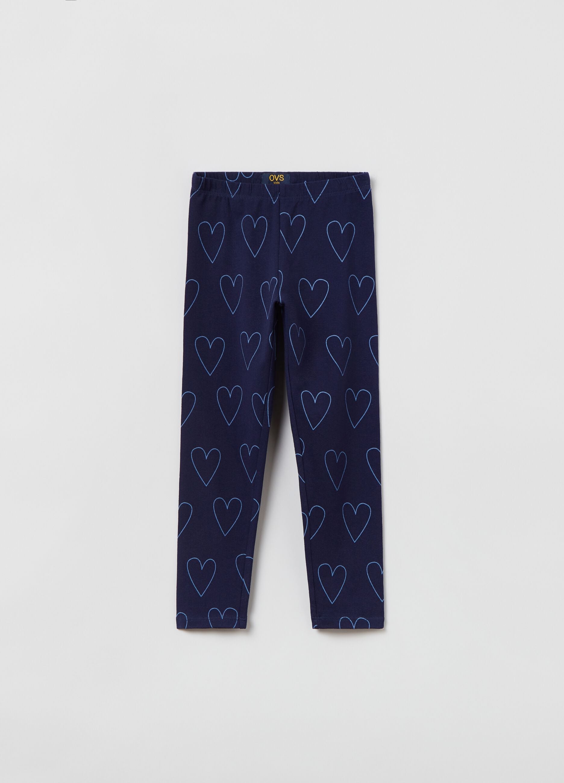 Stretch cotton leggings with all-over heart print. Elasticated waist.