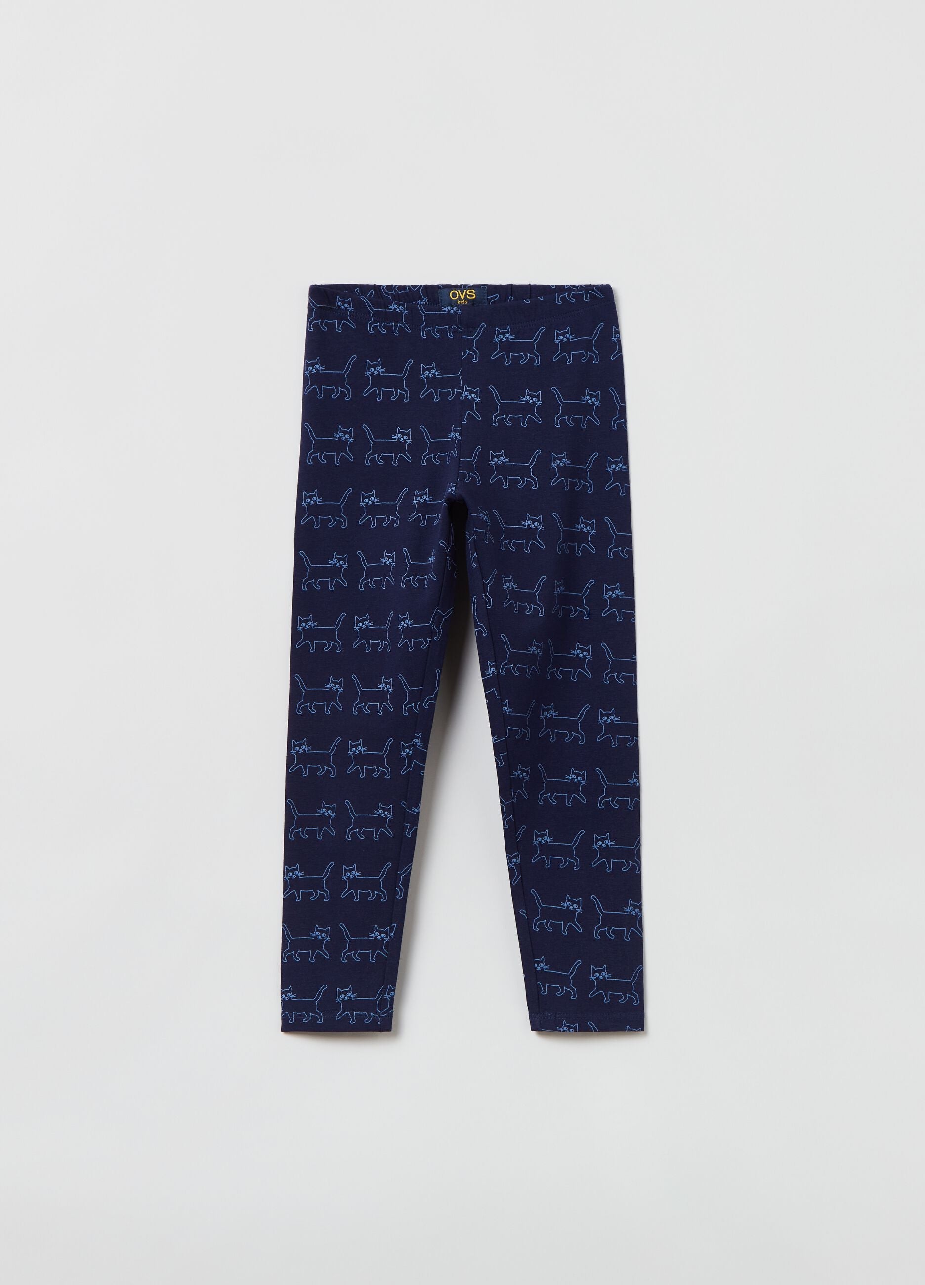 Stretch cotton leggings with all-over cats print. Elasticated waist.