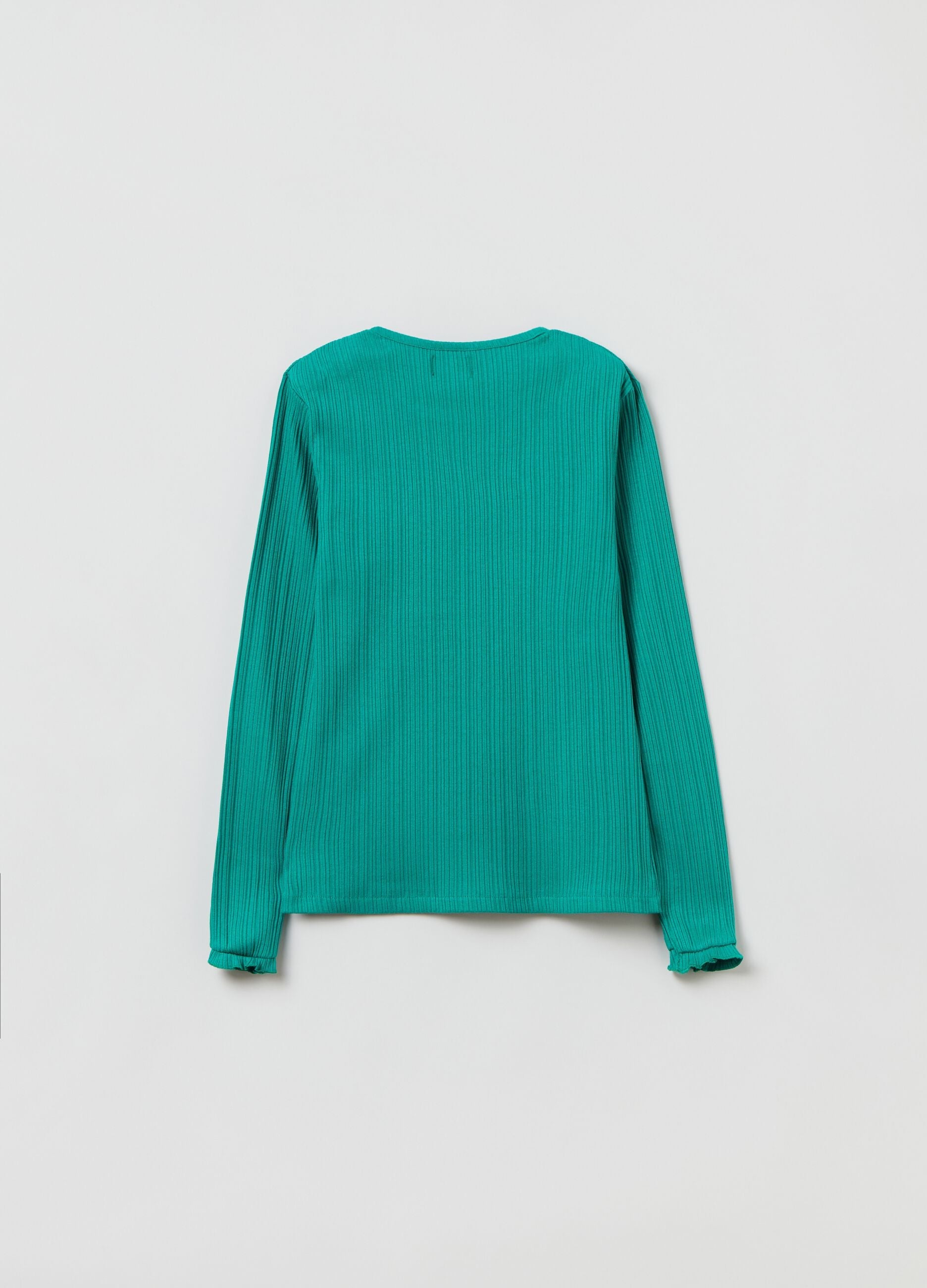 Stretch cotton ribbed T-shirt with round neck. Long-sleeves and elasticated cuffs.