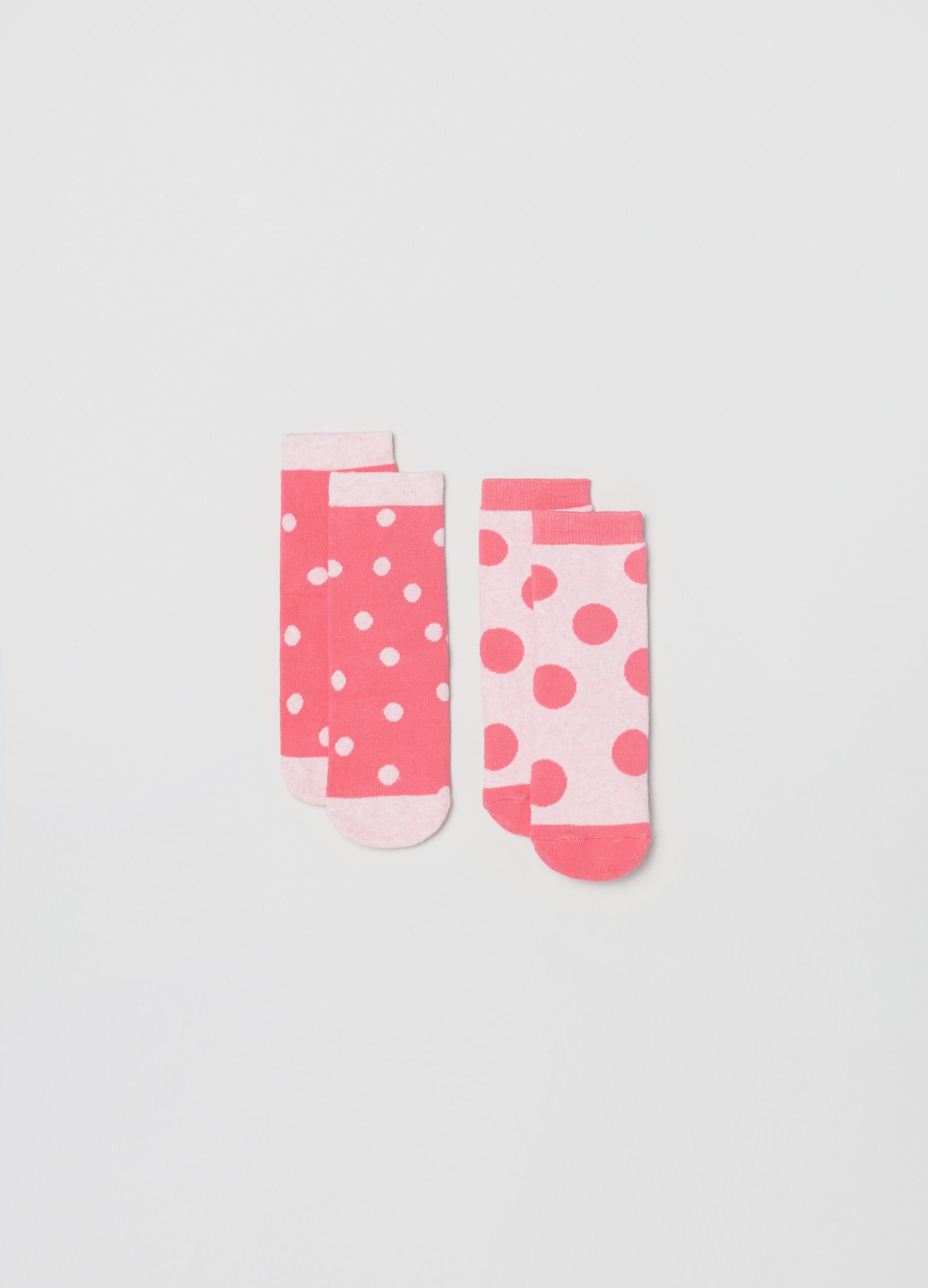 Set consisting of two pairs of slipper socks in stretch cotton blend with polka dots.