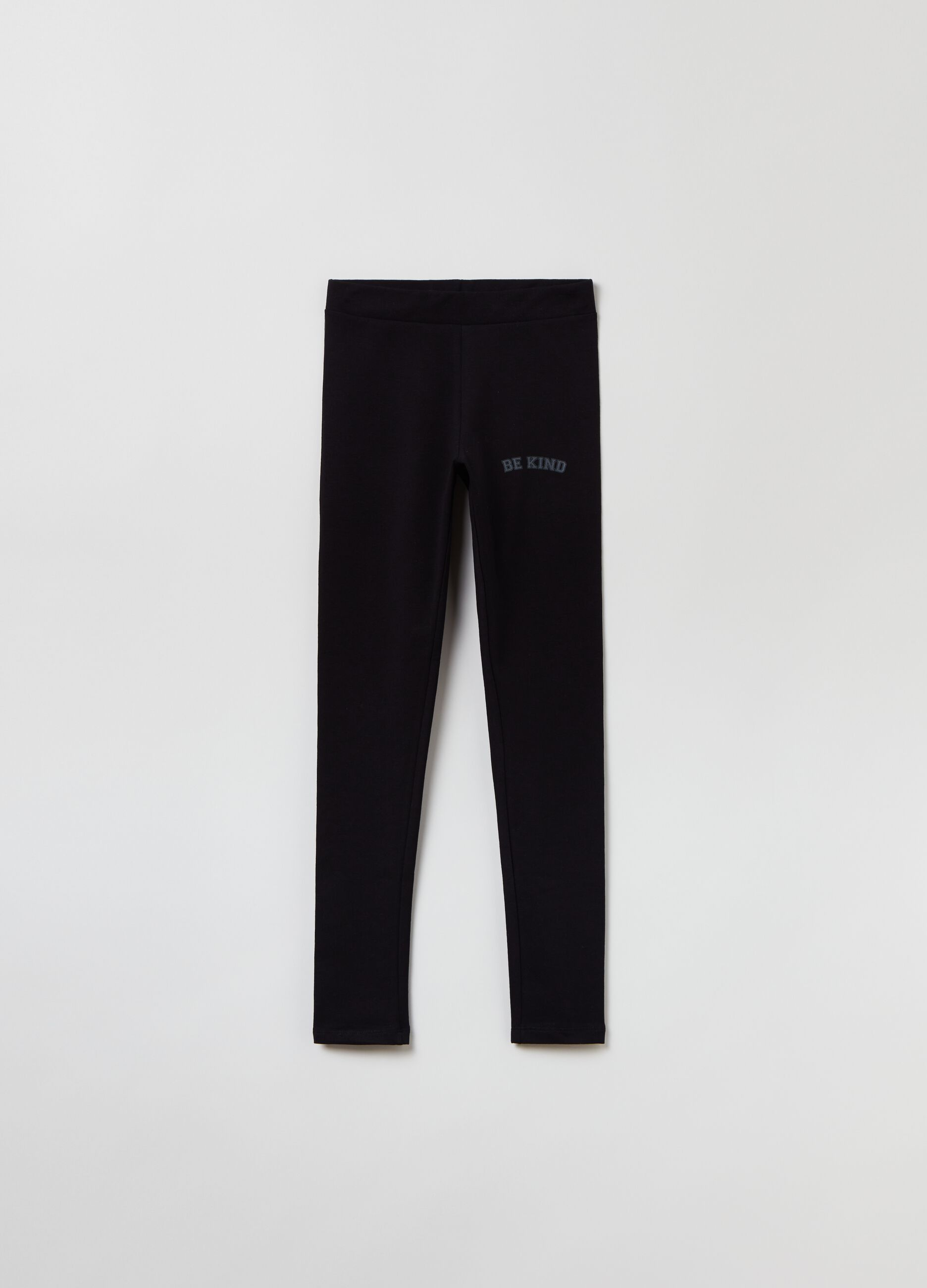 Stretch cotton leggings with elastic waistband. Printed lettering on the side.