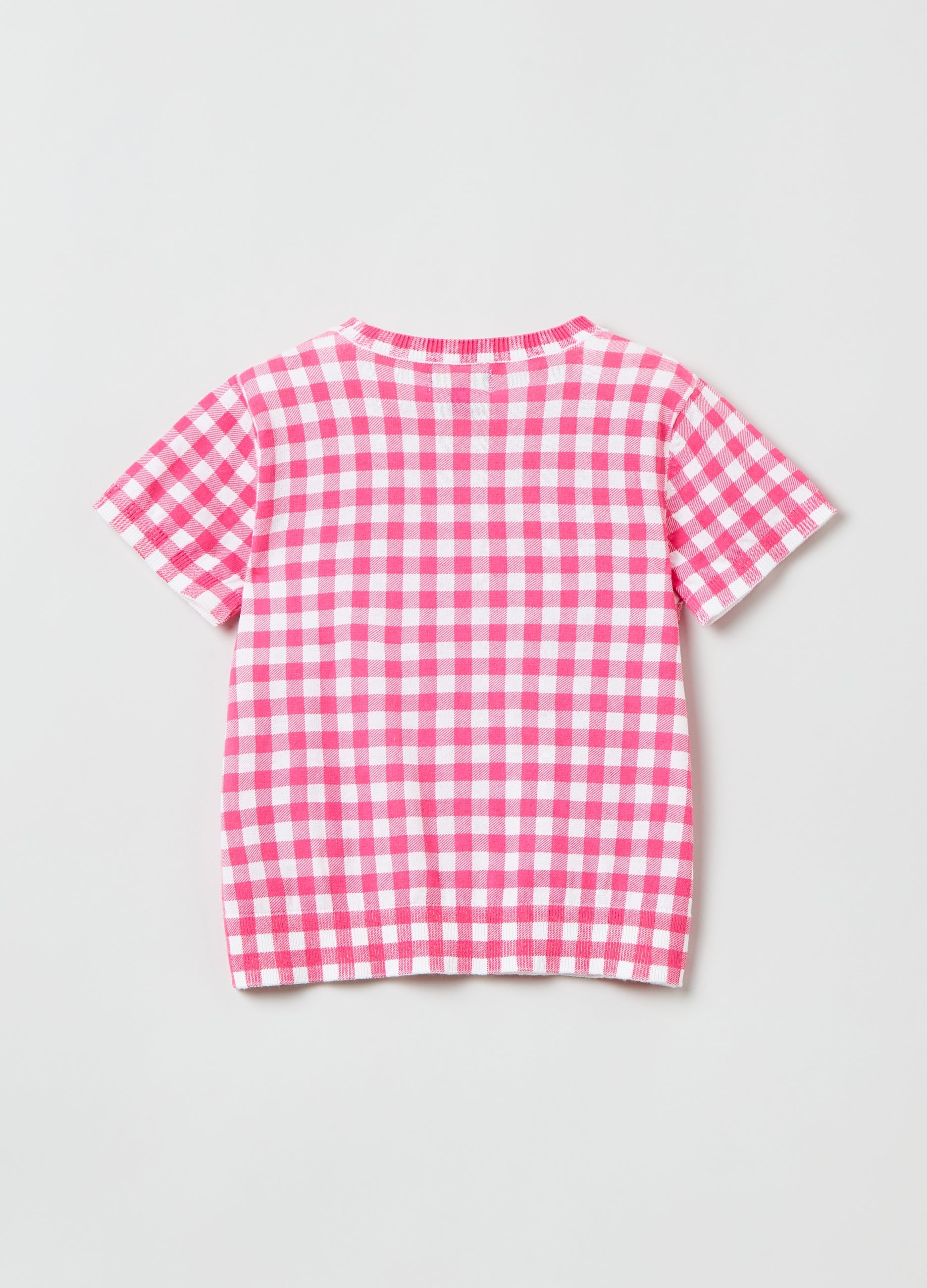 100% cotton jersey T-shirt with round neck. Gingham pattern. Ribbed trims.