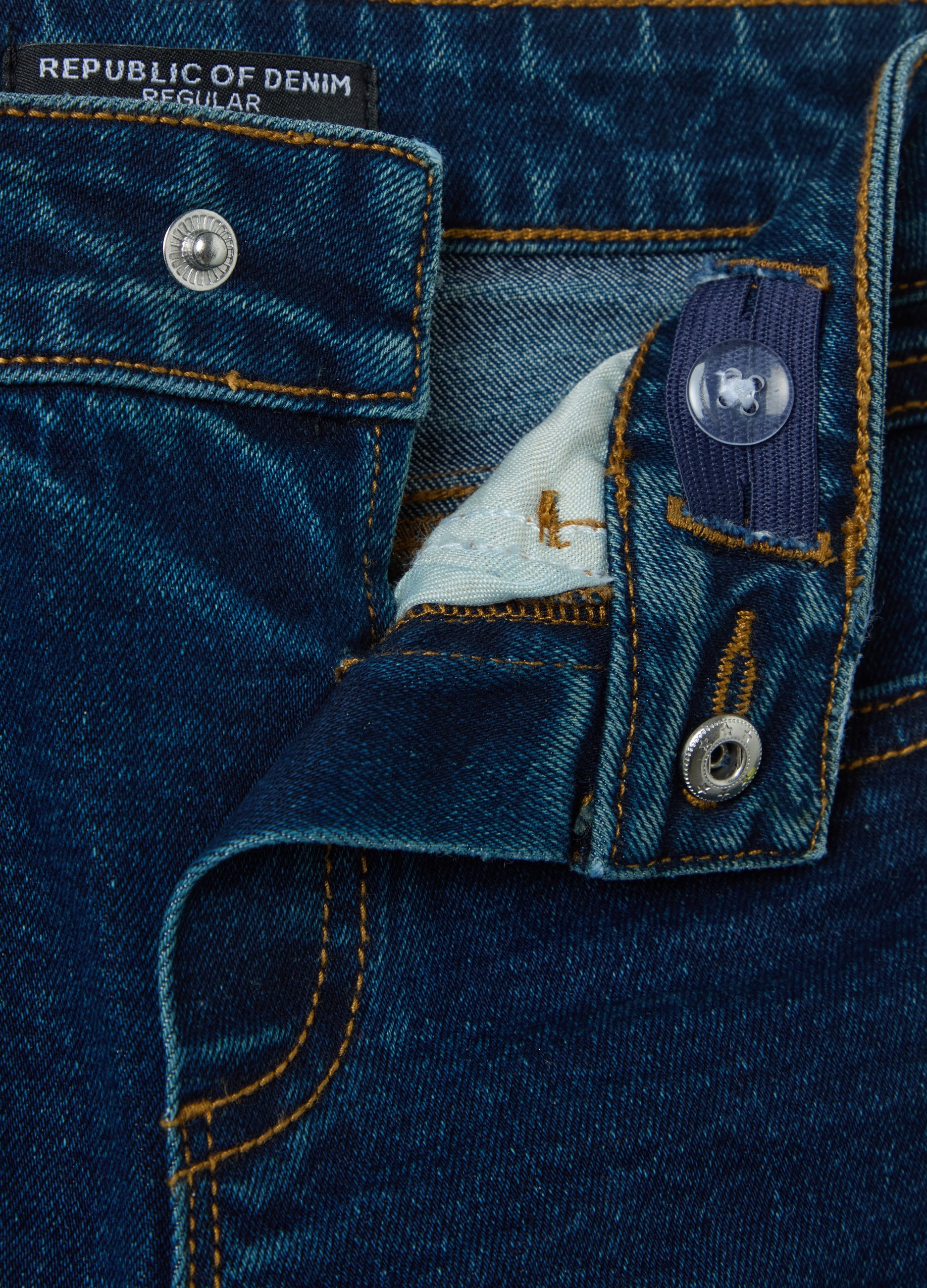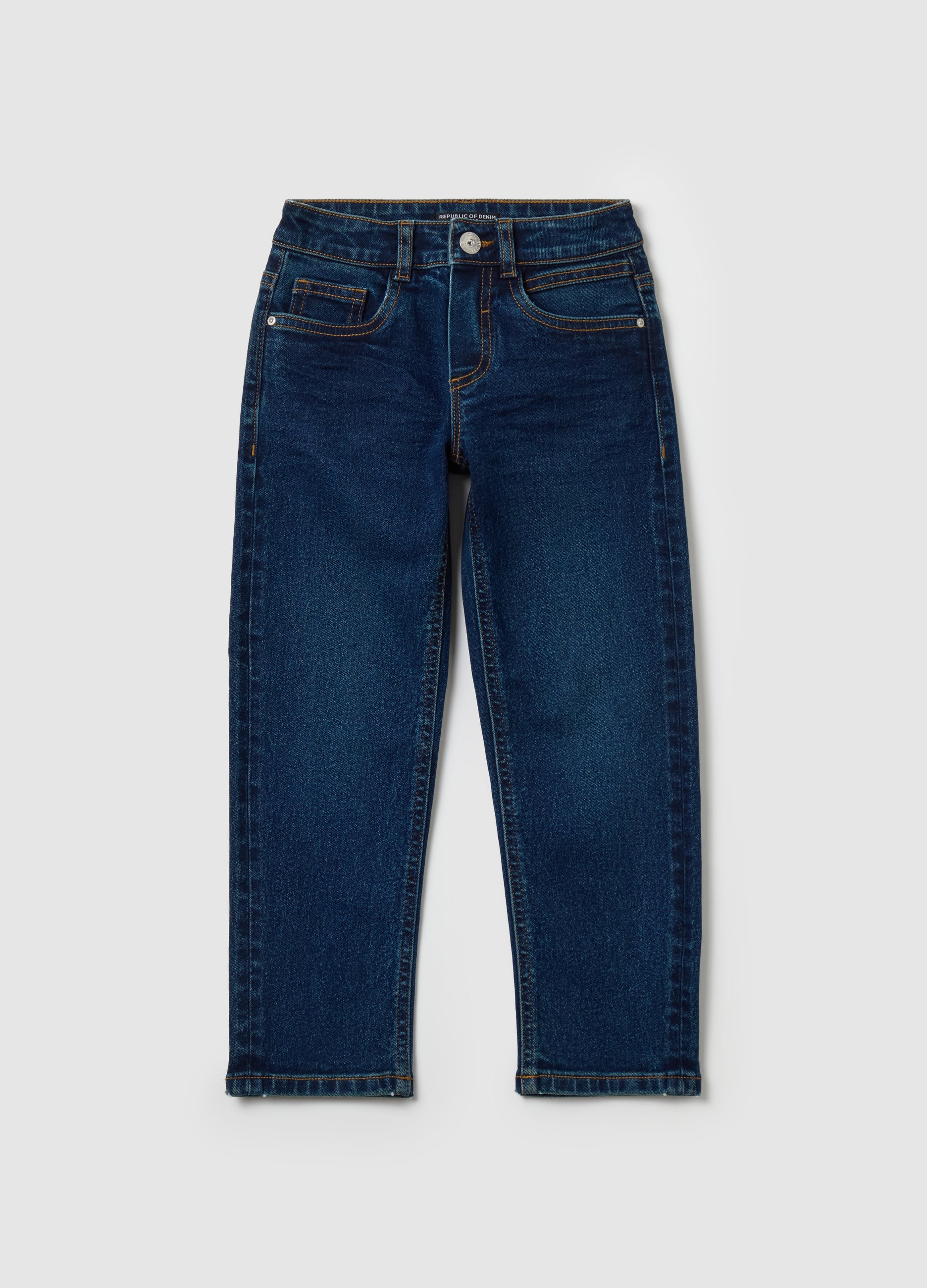 Regular-fit jeans in stretch cotton blend. Internal waist adjustment. Five pockets. Snap button fastening.