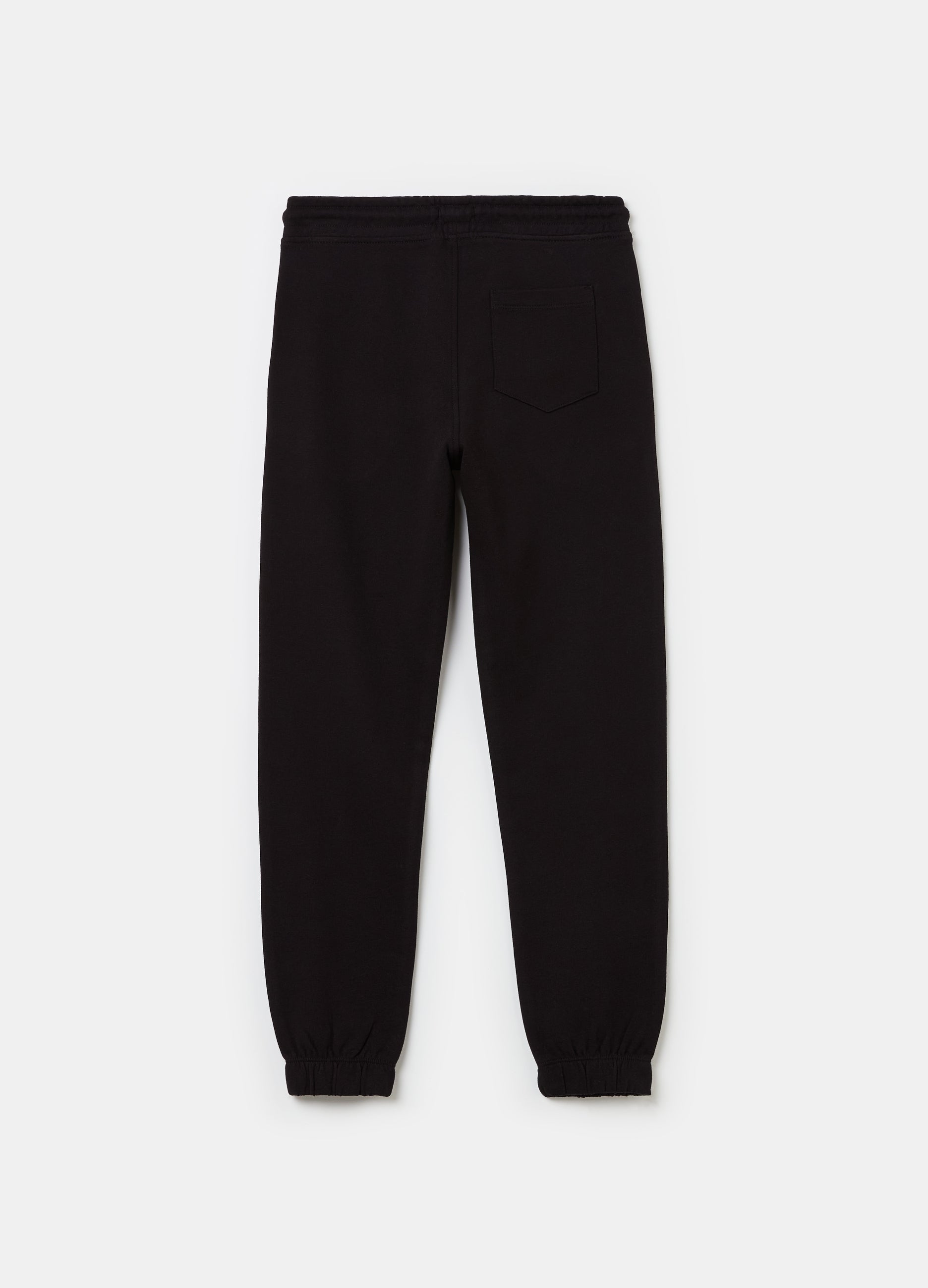 Joggers in 100% organic cotton fleece with cord drawstring. Two slant pockets and one patch pocket on the back. Elasticated ankles.