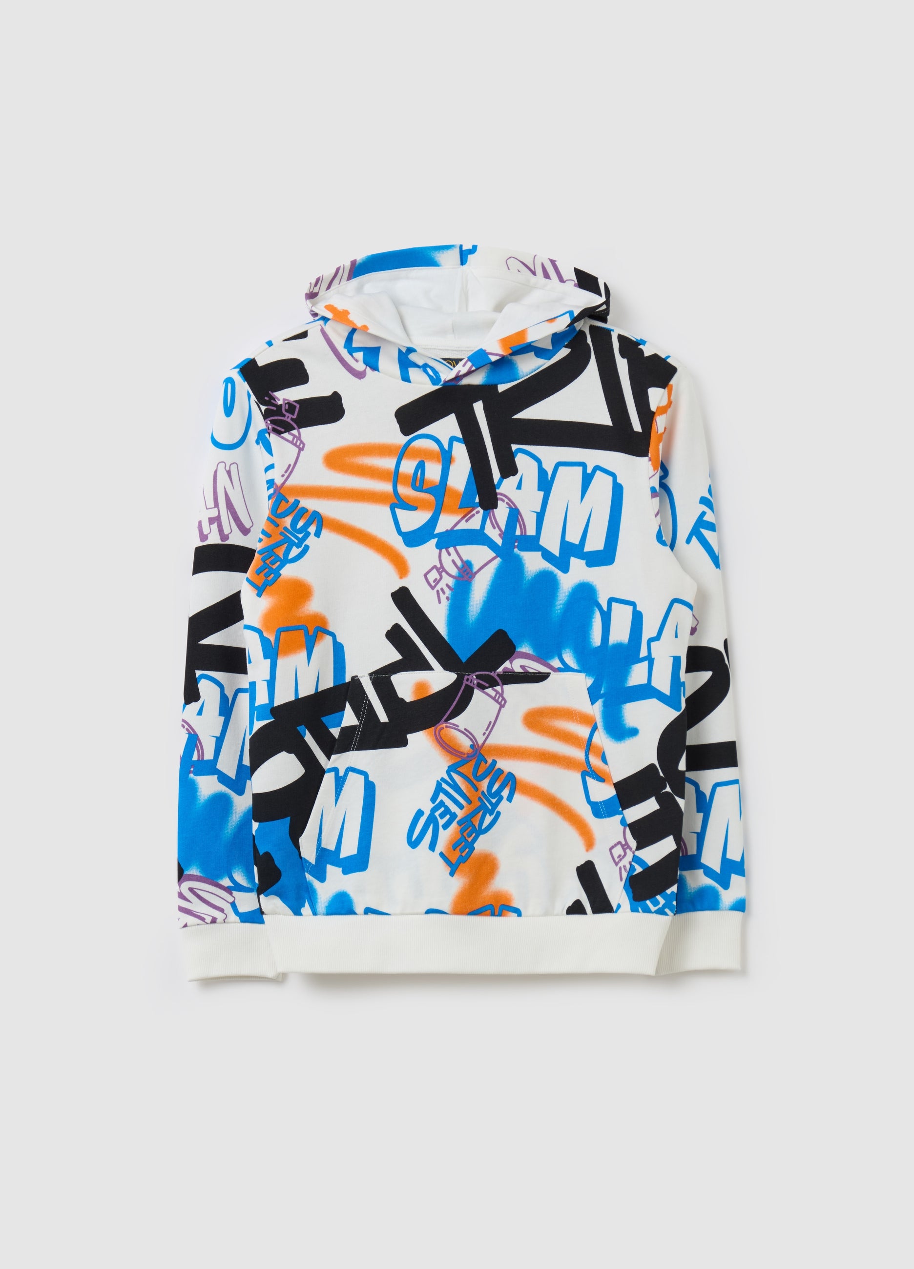 Sweatshirt in 100% cotton French terry (non-brushed lining) with hood. Pouch pocket. All-over graffiti-style lettering print. Ribbed cuffs and bottom.