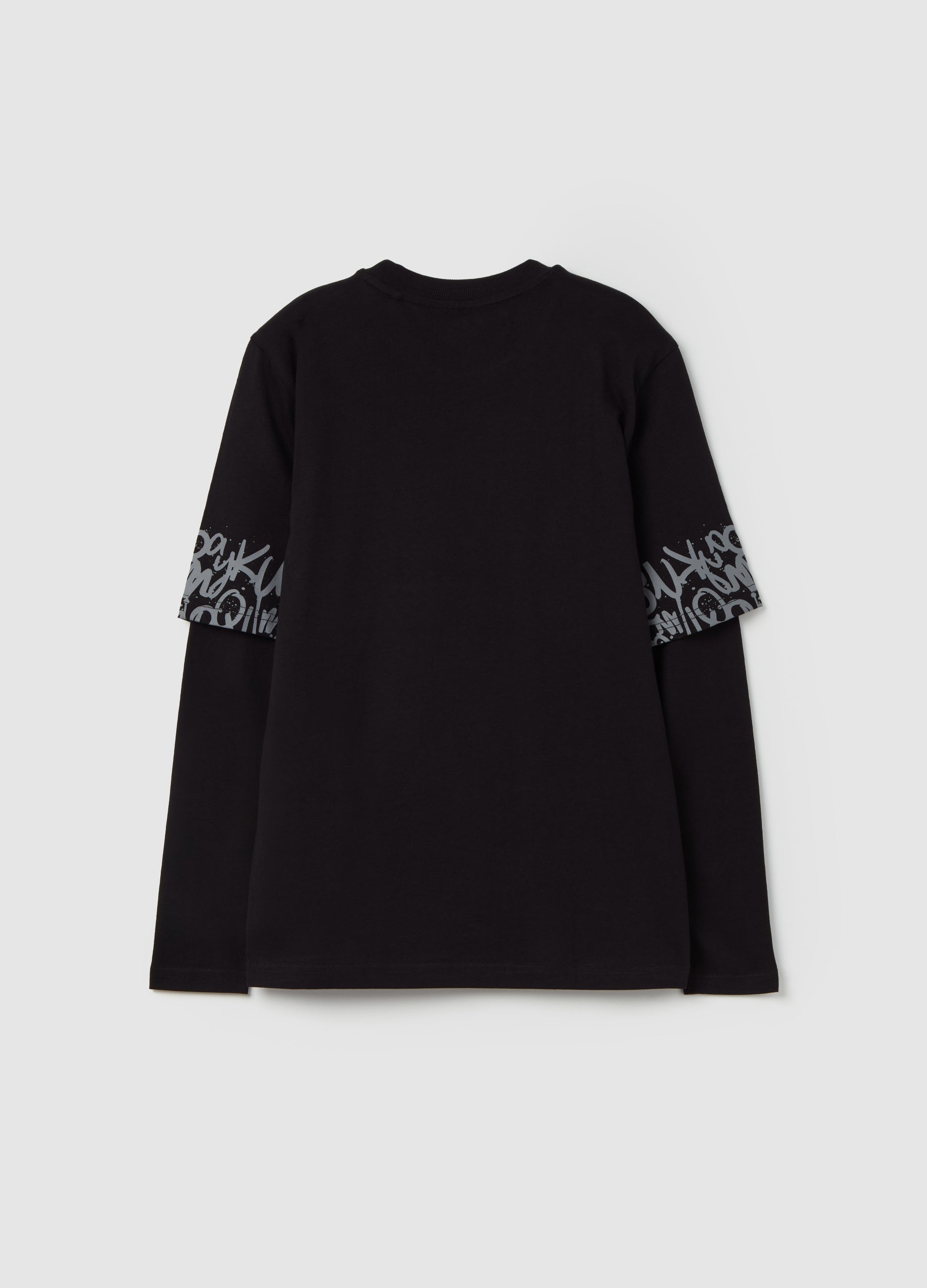 100% cotton T-shirt. Round ribbed neck. Long layered-effect sleeves. Graffiti-style print on the front and sleeves.