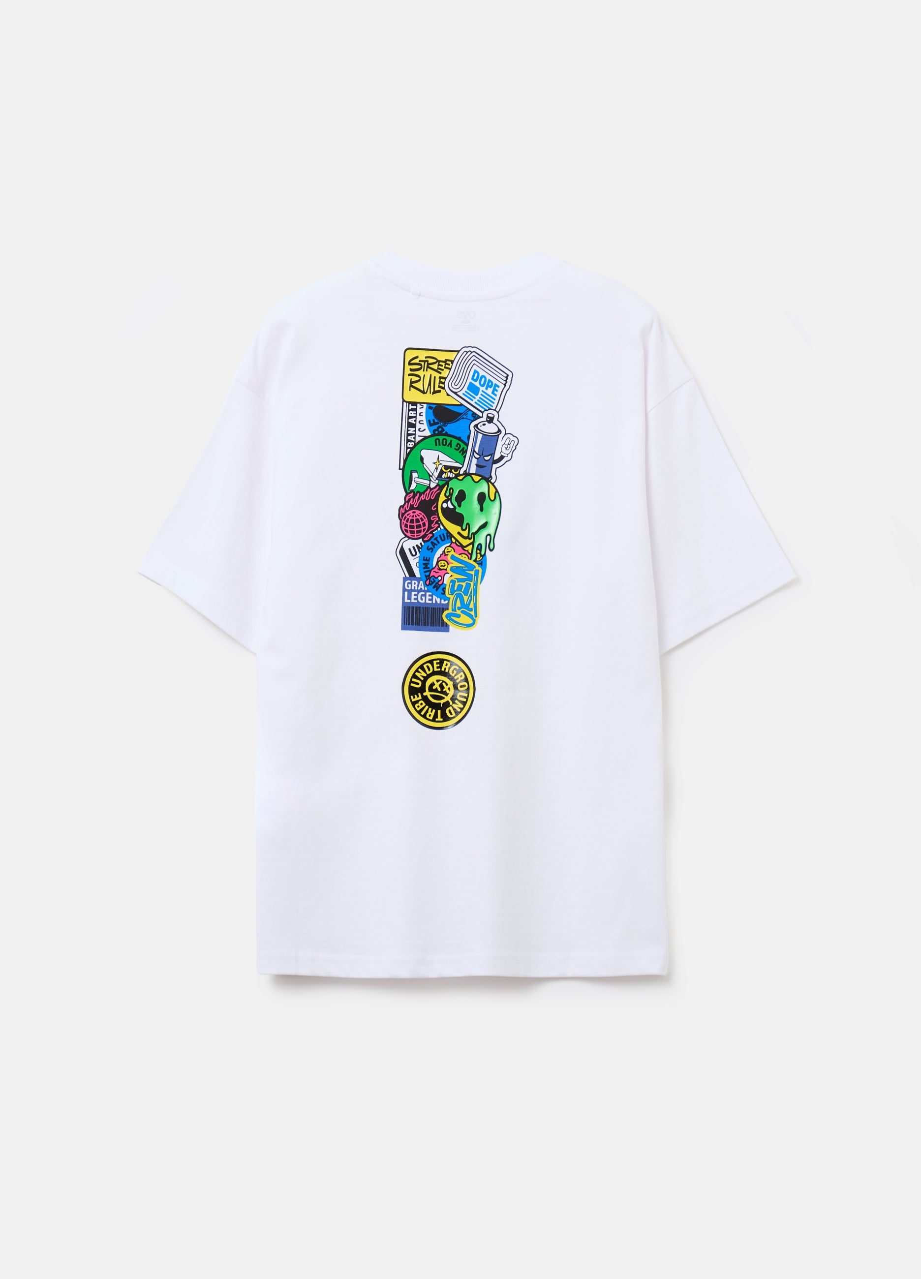 100% cotton T-shirt. Round neck. Oversized fit with drop shoulders. Lettering print on the front and print with Underground Tribe symbols on the back.