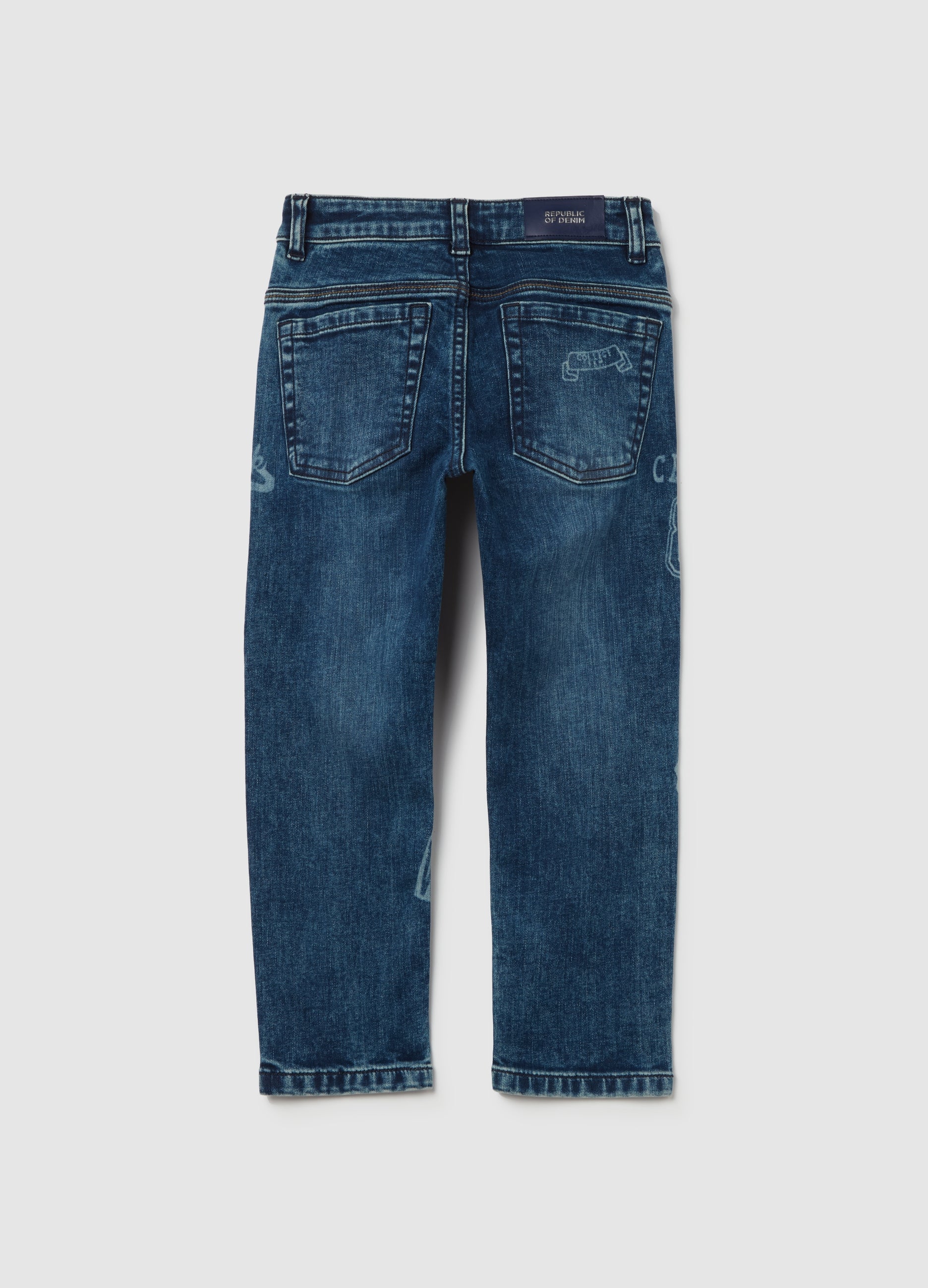 Ovs Slim-Fit Jeans With Five Pockets And ''Varsity'' Print