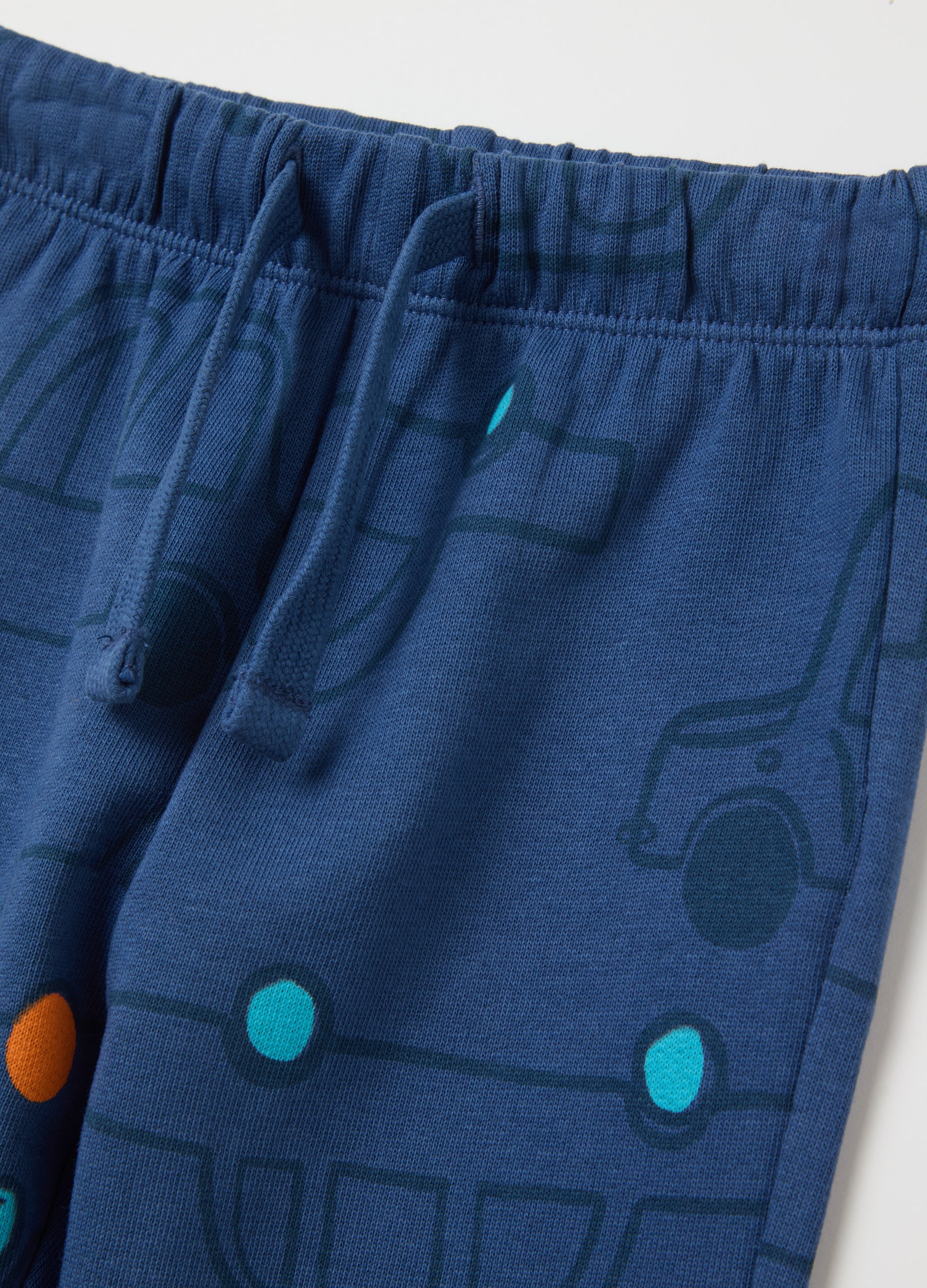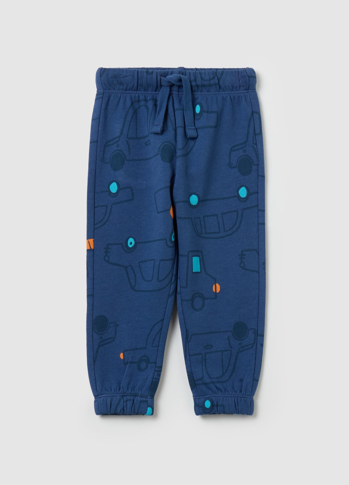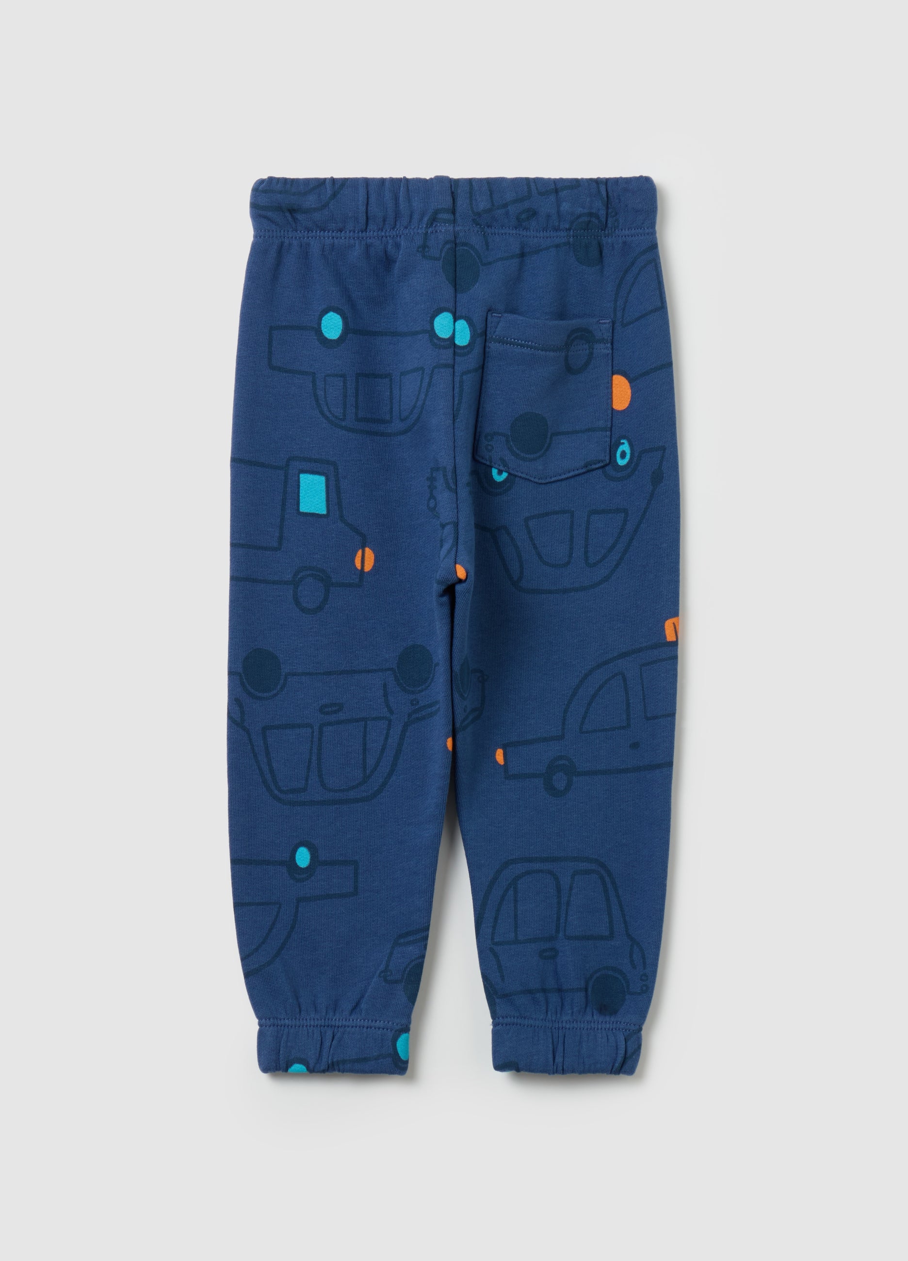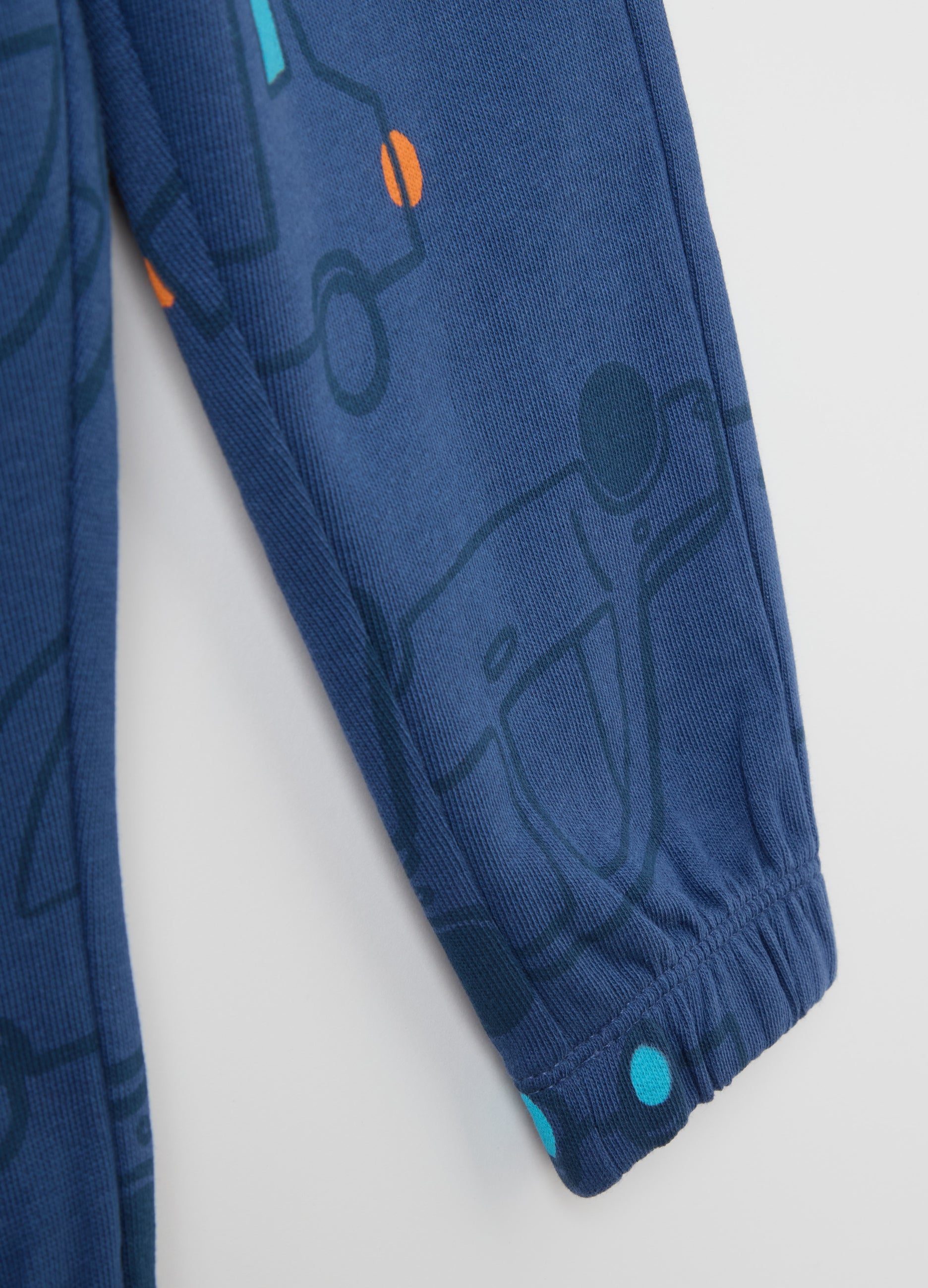 Joggers in 100% cotton fleece with tape drawstring. Patch pocket on the back. All-over cars print. Elasticated edges.
