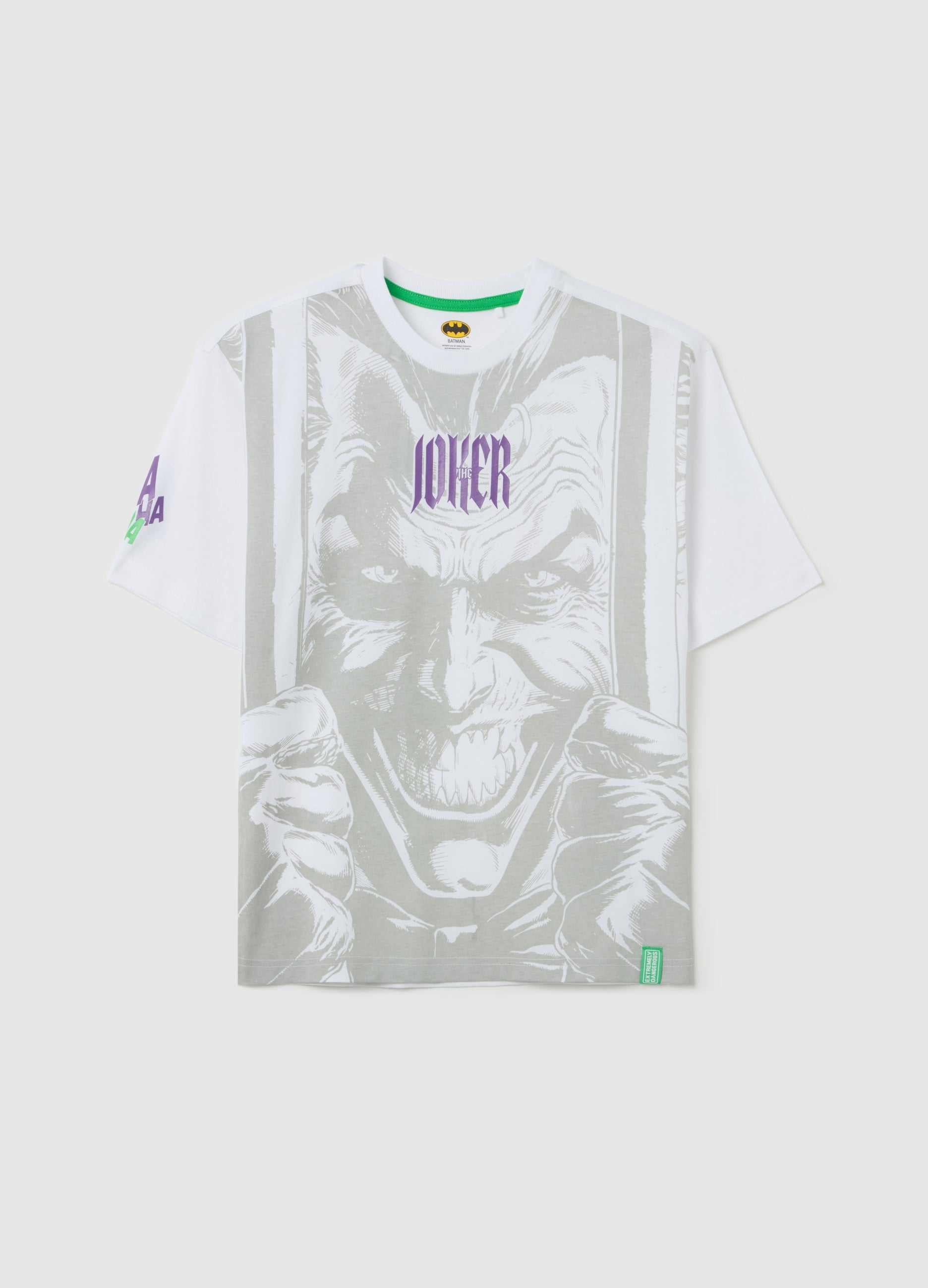 100% cotton t-shirt. Round neck. Maxi warner bros the joker print on the front and lettering print on the sleeve.