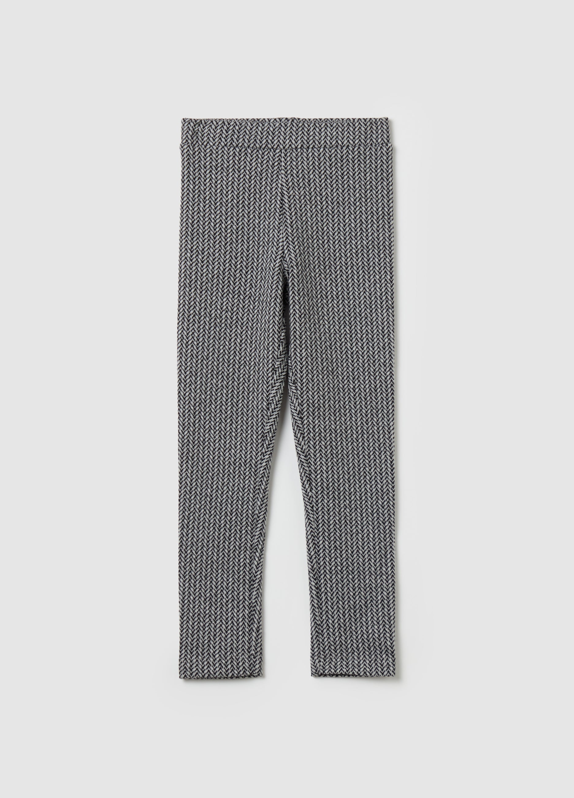 Stretch cotton blend leggings. Elasticated waist. Pattern with herringbone weave.