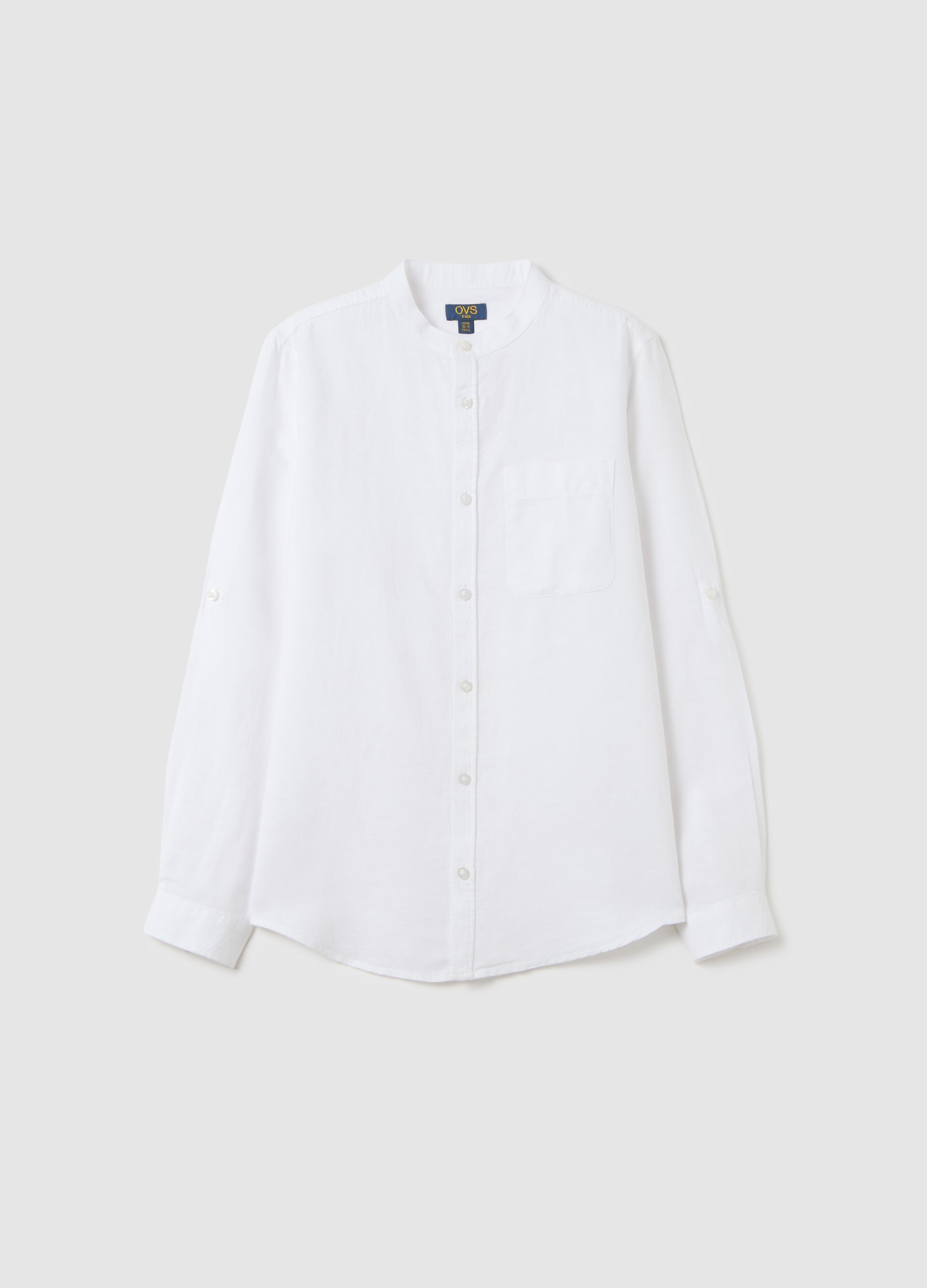This Long-Sleeved White Shirt From The Ovs Kids Line Is Designed For Boys Aged 10 To 15 Years. Made From A Linen-Cotton Blend, It Features An Elegant Classic Collar And A Front Button Closure, Combining Practicality With Style. The Chest Pocket Adds A Functional And Sophisticated Touch, Making It Suitable For Various Occasions.