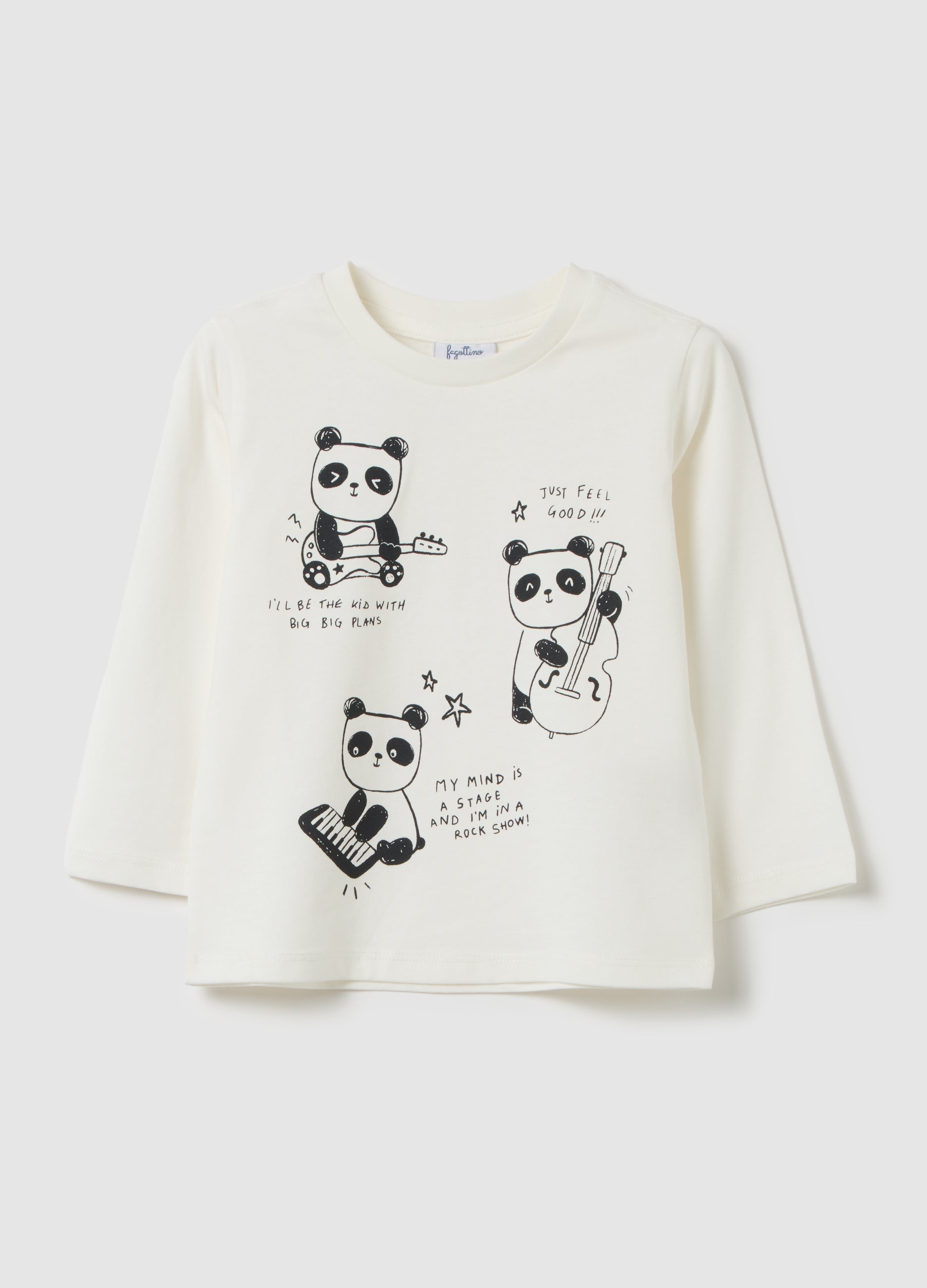 The Long-Sleeved White T-Shirt From The Fagottino Line Is Made Of Pure Cotton, Designed For Children Aged Between 9 And 36 Months. Featuring A Round Neck Design And Regular Cut, It Offers Comfort And Breathability, Ideal For Autumn And Winter Seasons. The Panda Print Adds A Playful Touch, Making It Perfect For The Everyday Wardrobe Of Little Ones.
