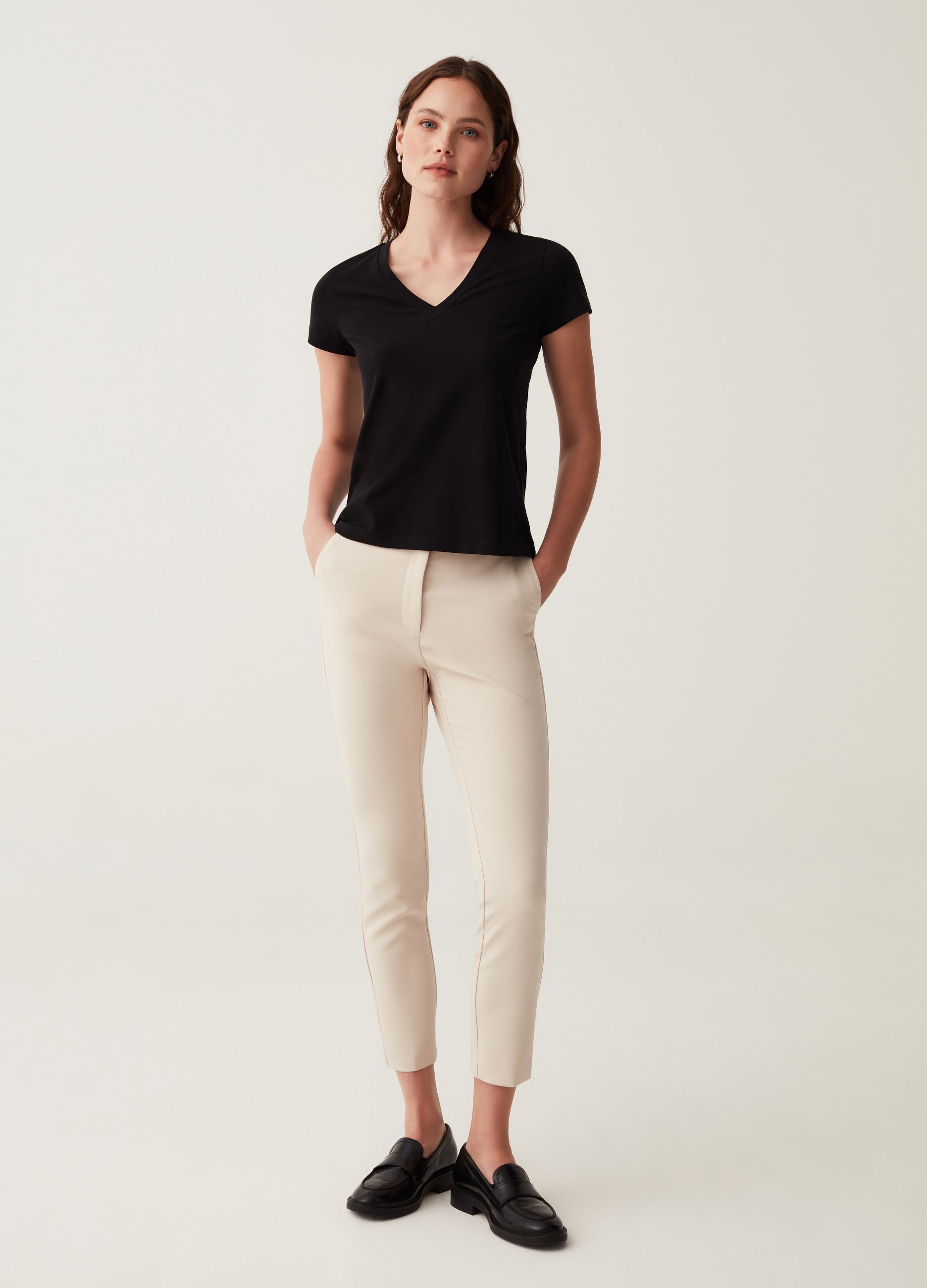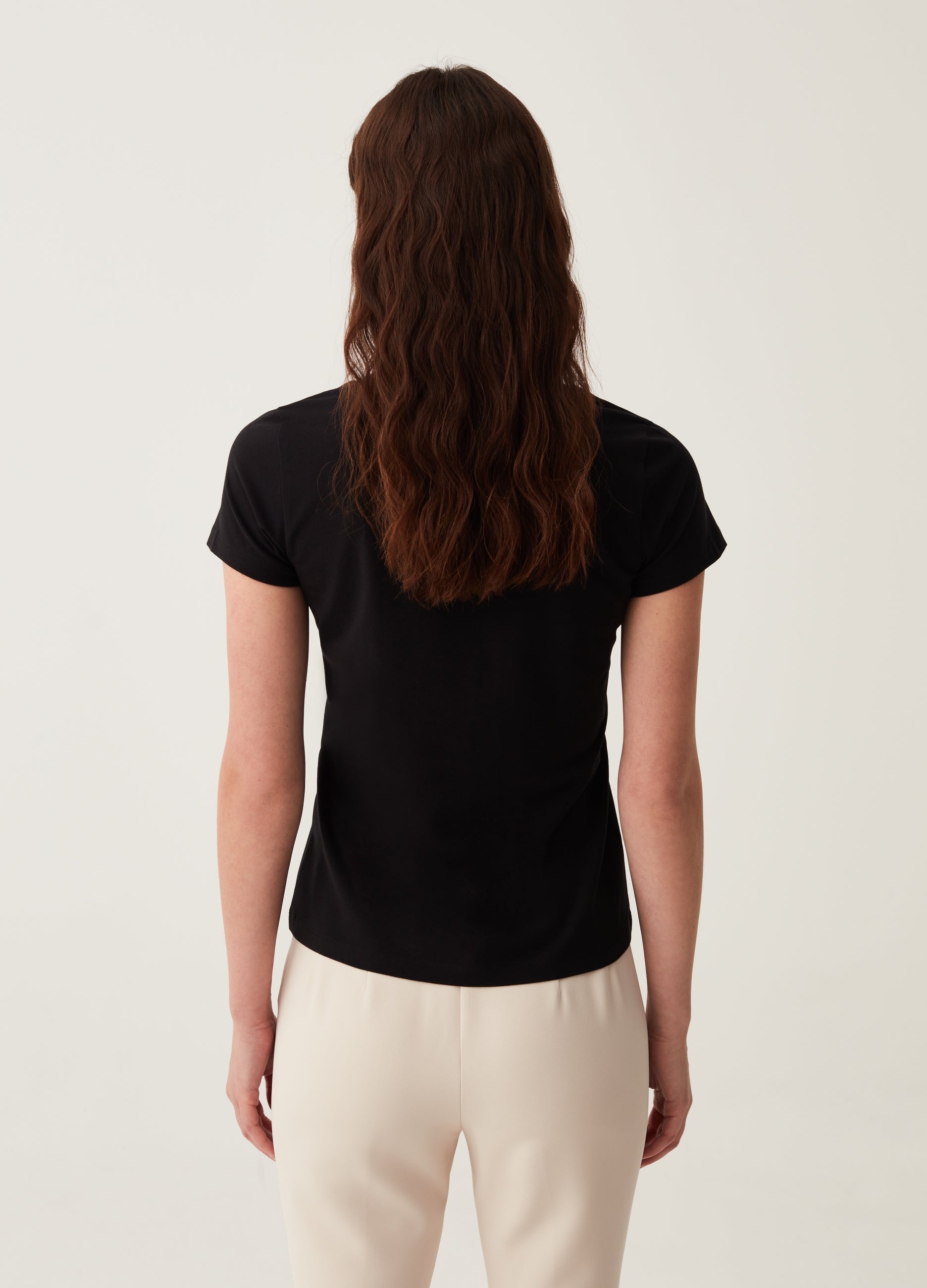 Stretch cotton T-shirt. V neck.
