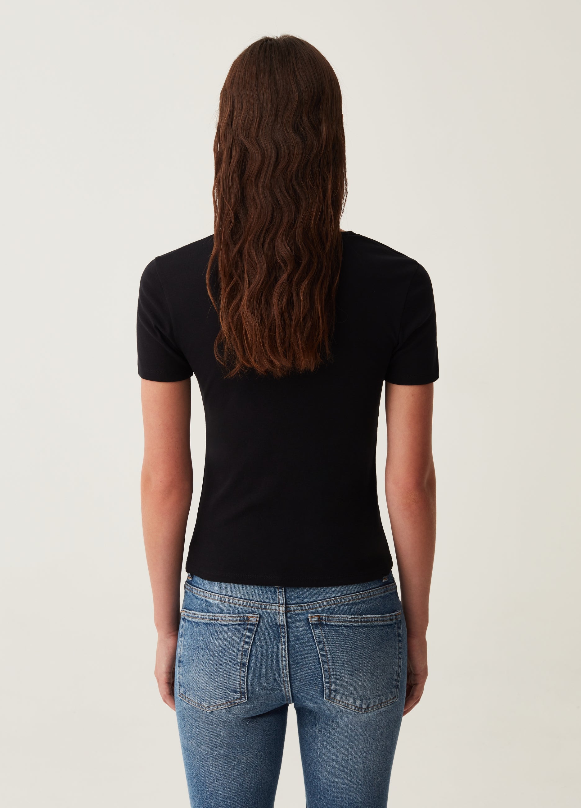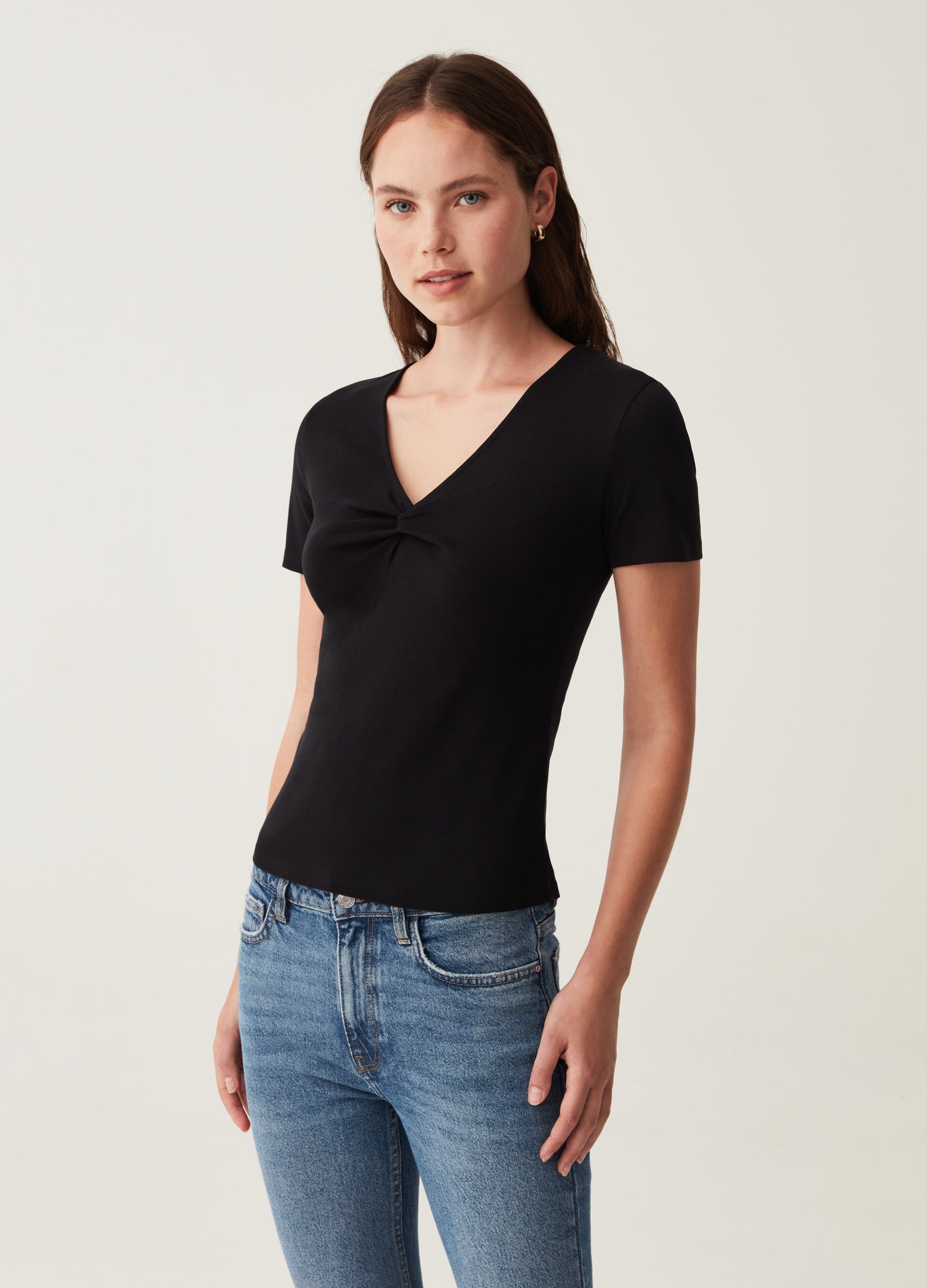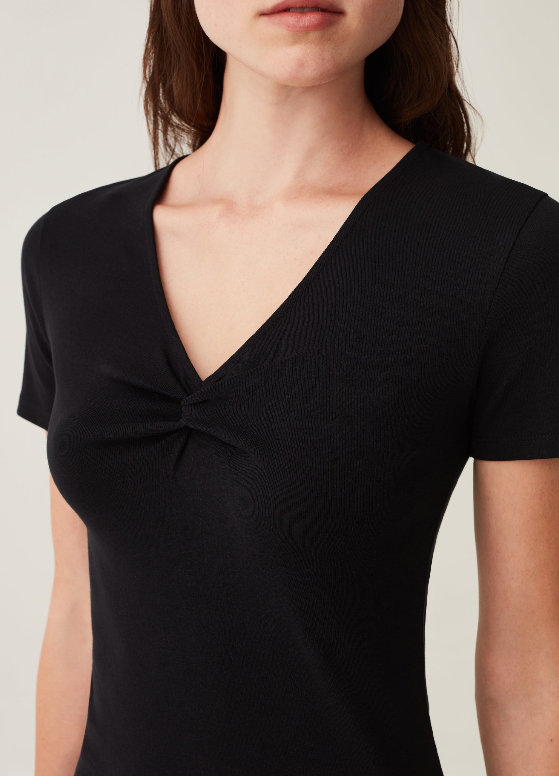 100% cotton T-shirt. V neck with knot.