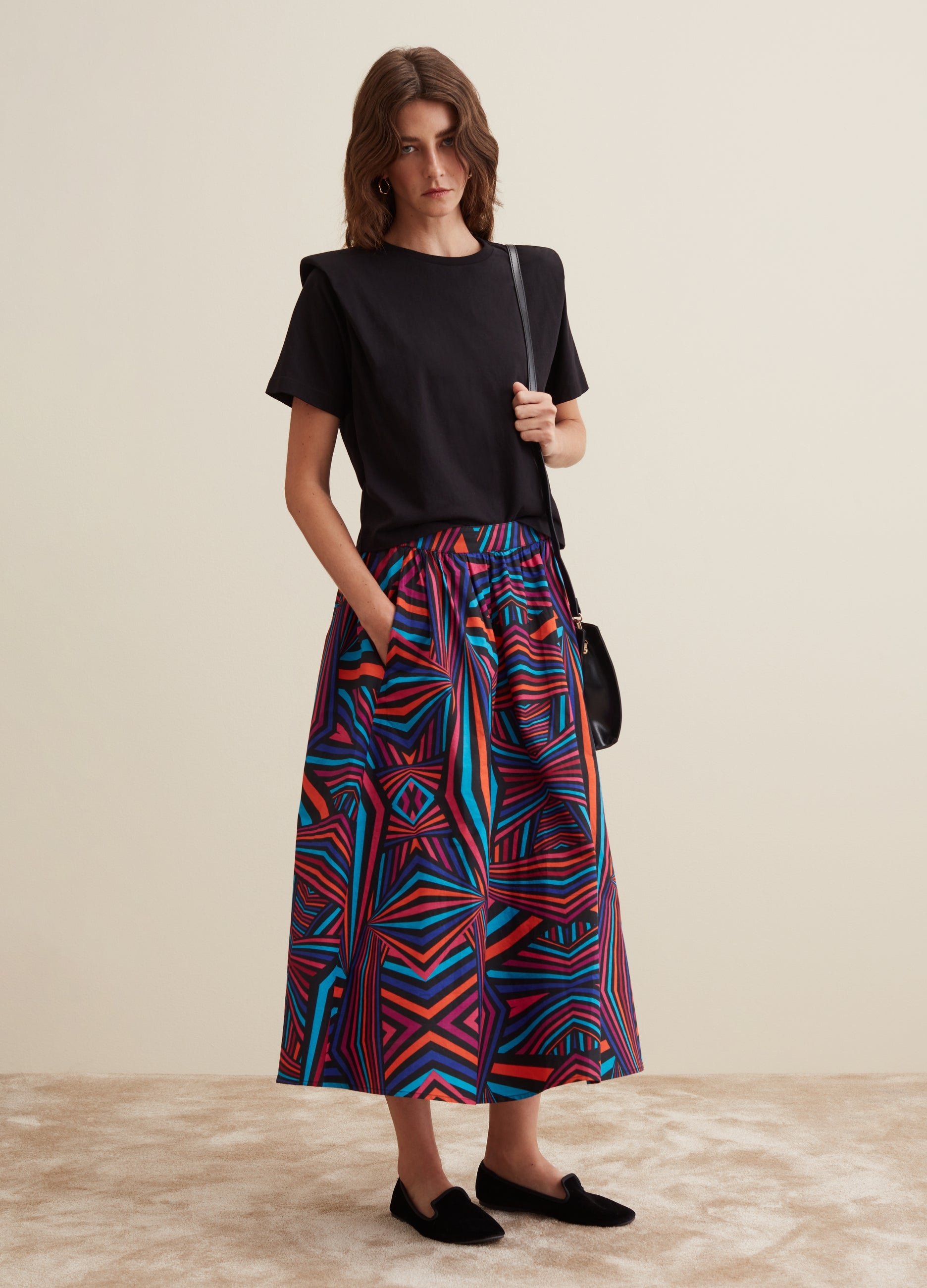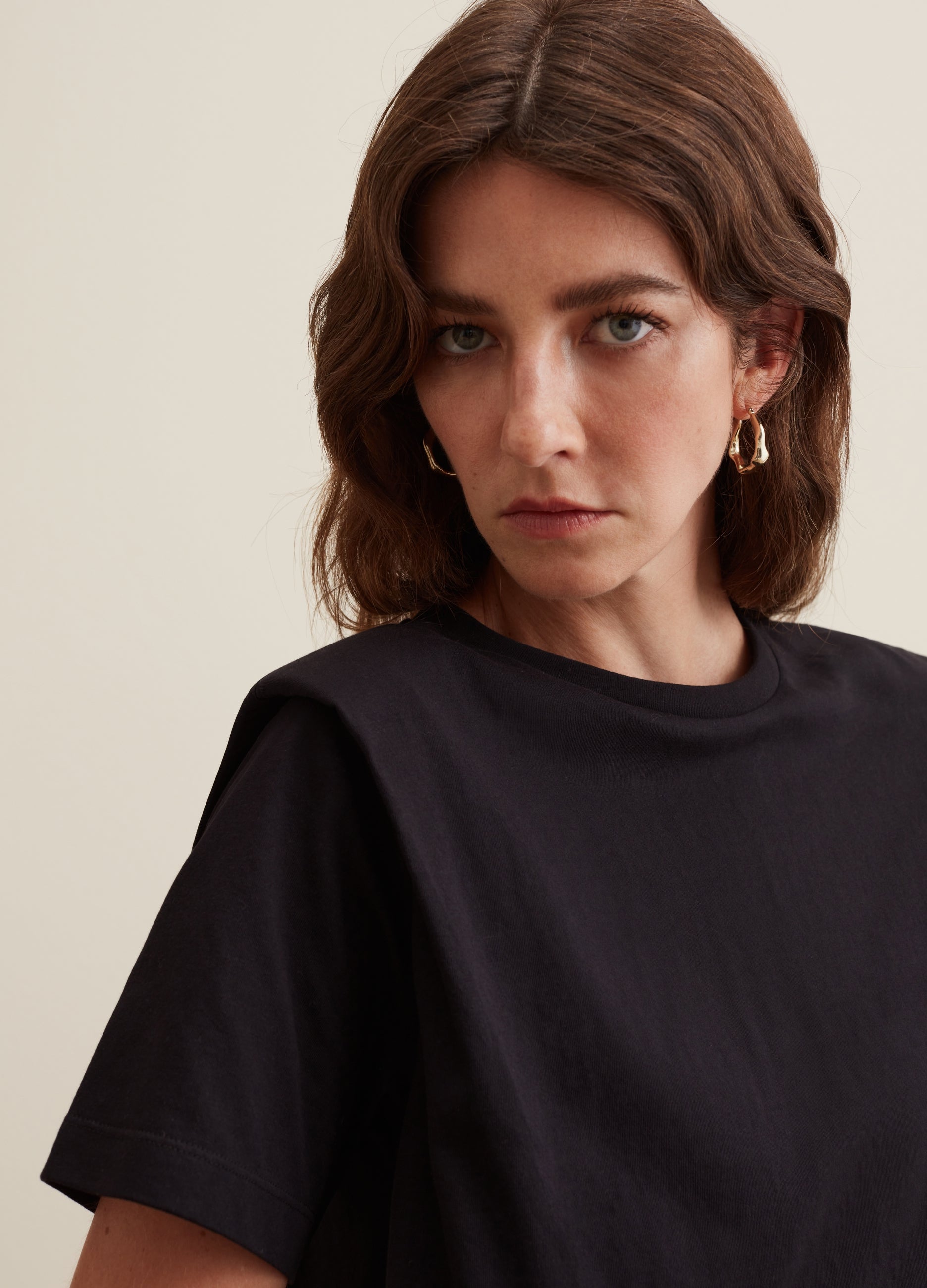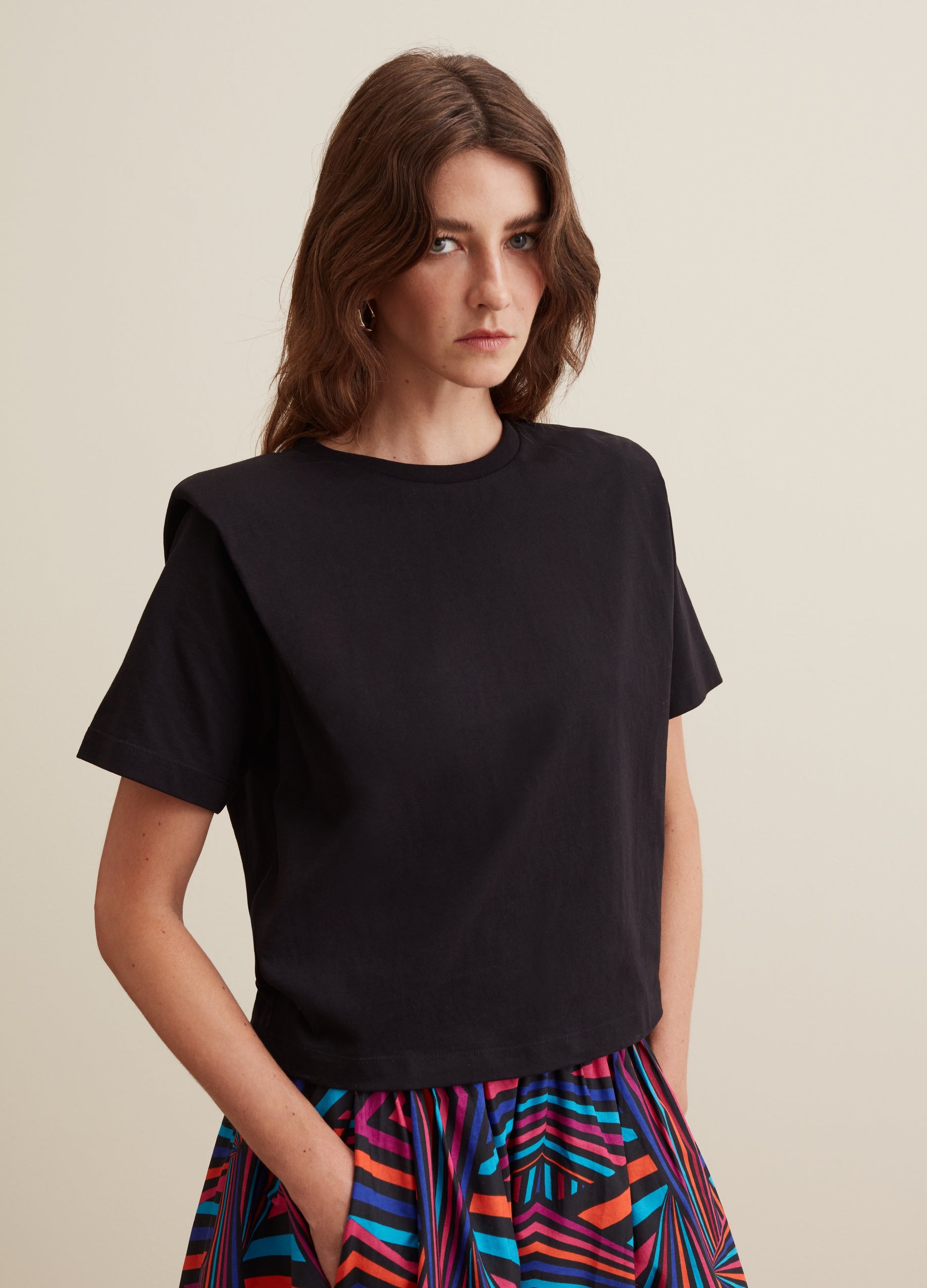 PIOMBO 100% cotton T-shirt. Round neck. Boxy fit and padded shoulders.