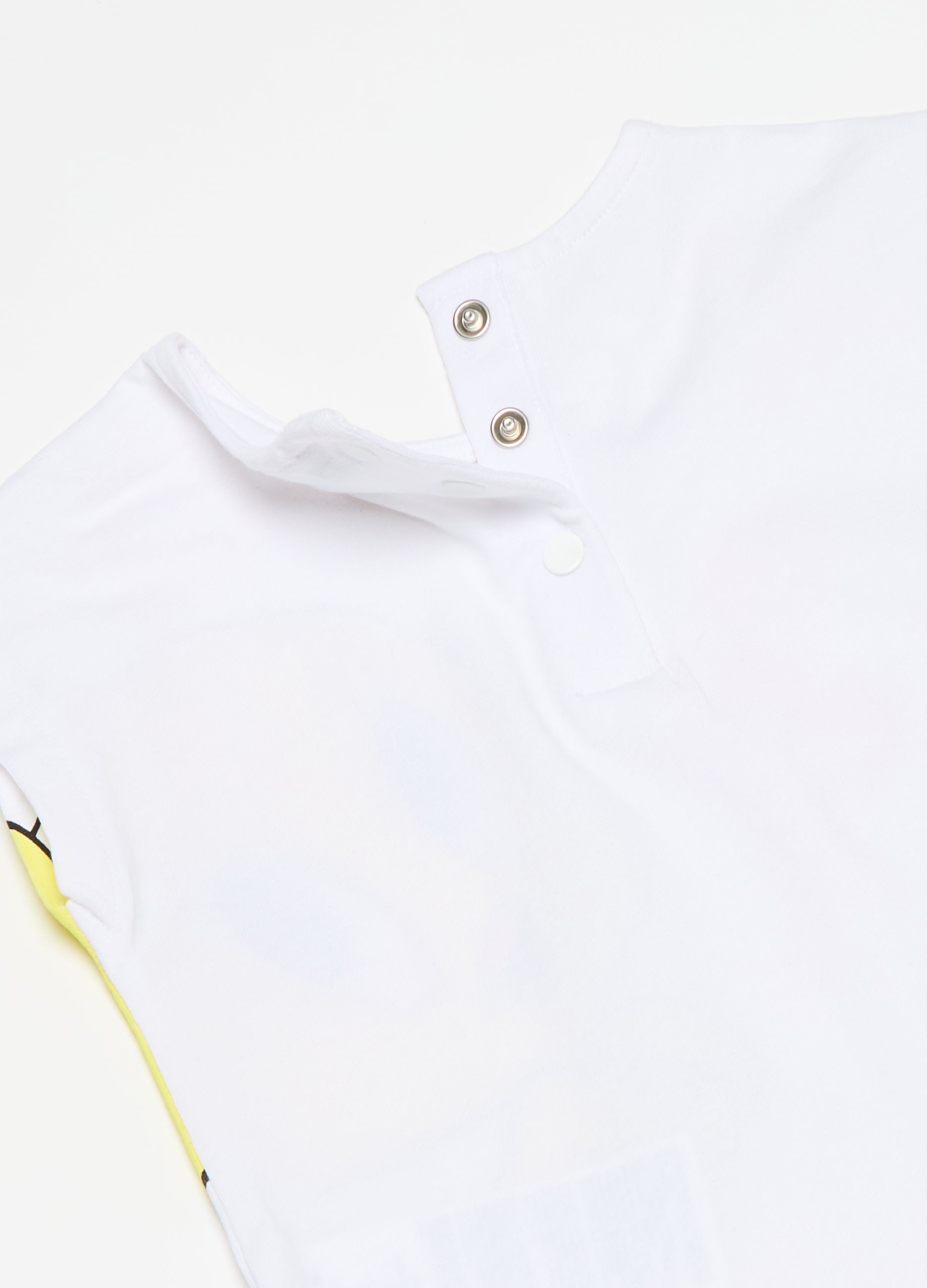 Jogging set consisting of a stretch cotton top and shorts in 100% cotton. Sleeveless top with round neck and press studs on the back. Looney Tunes Tweetie Pie print with hearts and lettering on the front. Shorts with elastic waist and drawstring. All-over multicoloured geometric shapes and Tweetie Pie print.