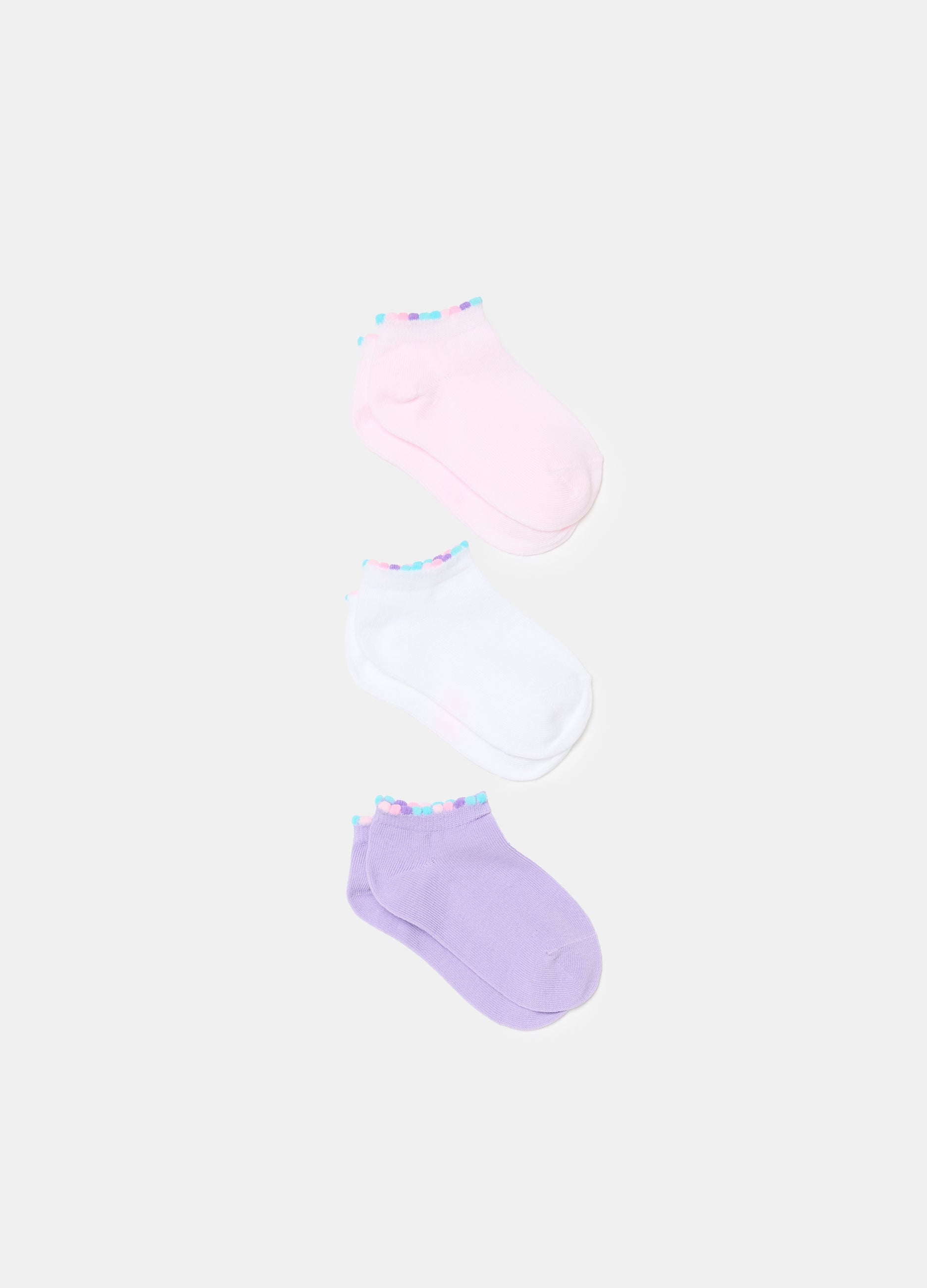 Three-pair pack shoe liners in stretch cotton blend. Wavy edge with multicoloured pattern.