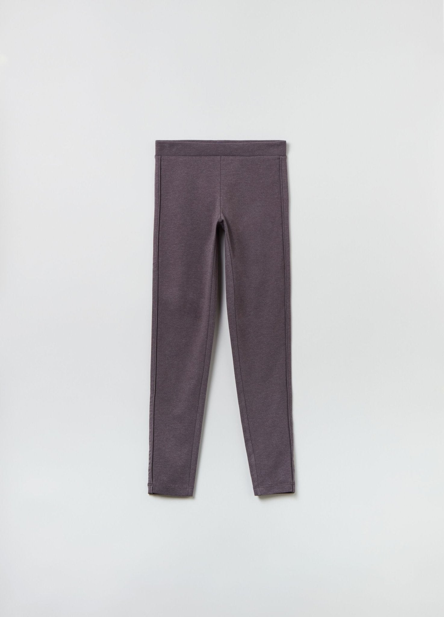 Stretch cotton leggings. Elasticated waistband and raised stitching.