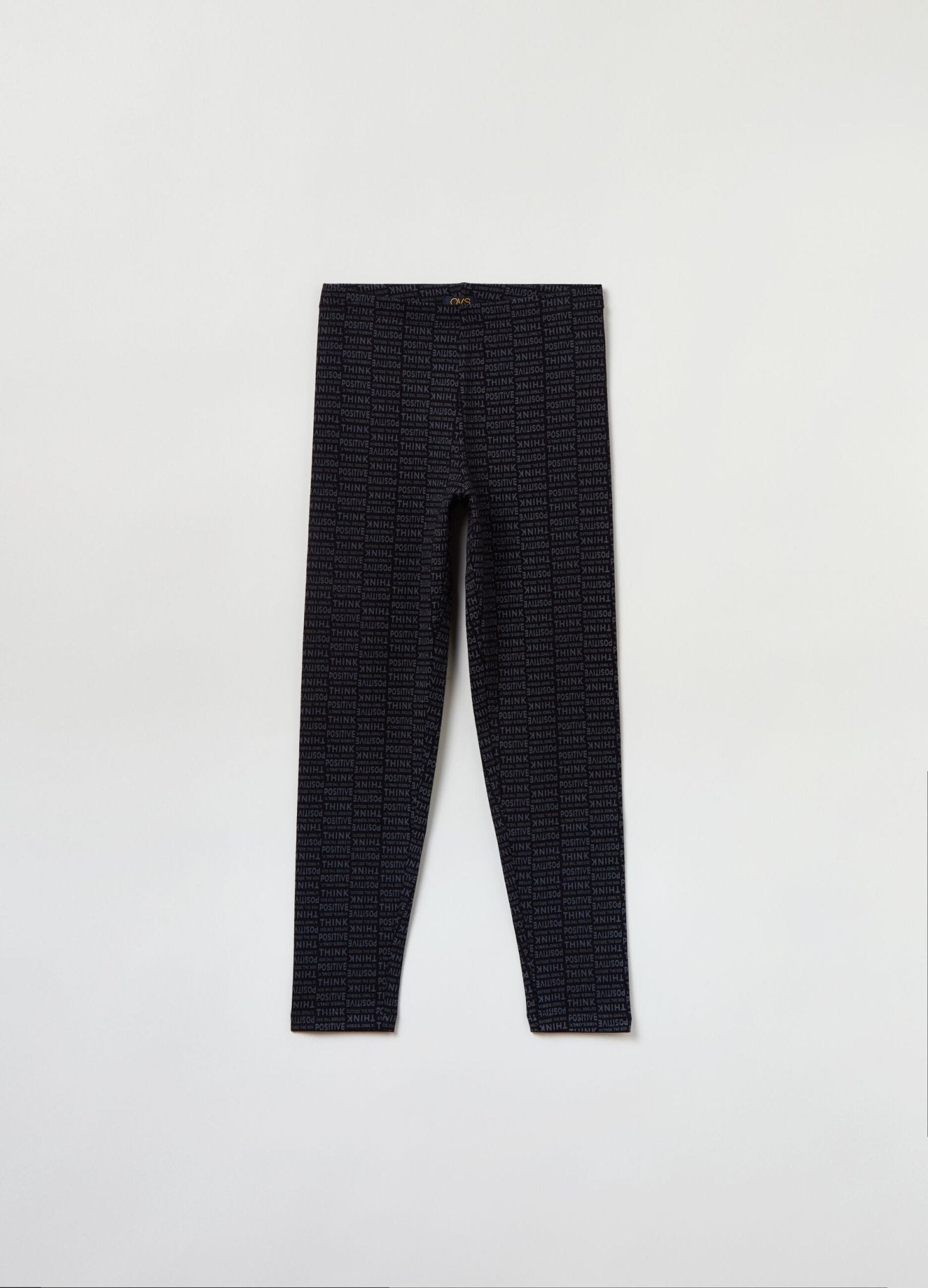 Stretch cotton leggings with elastic waistband. All-over printed lettering.