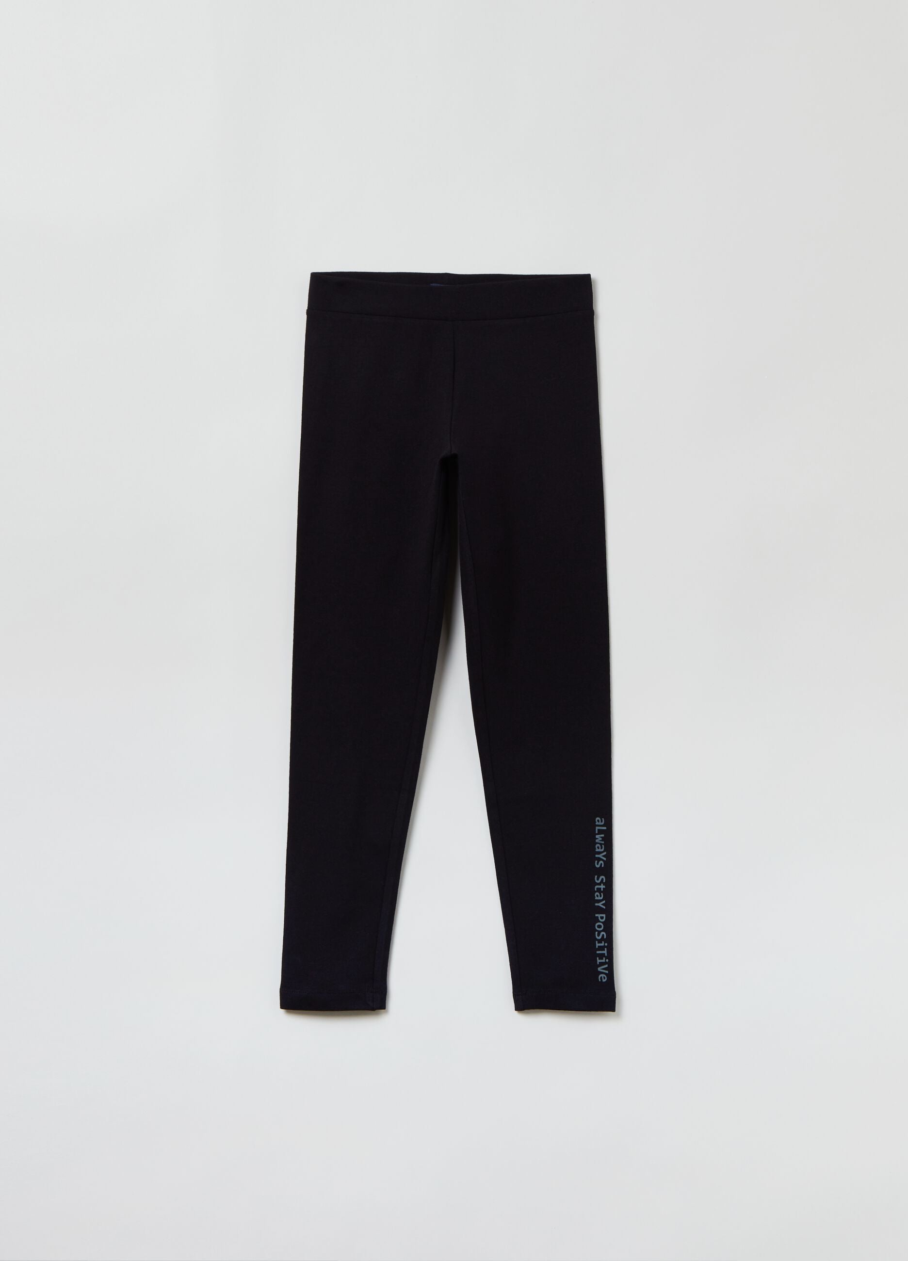 Stretch cotton leggings with elastic waistband. Lettering print on the hem.