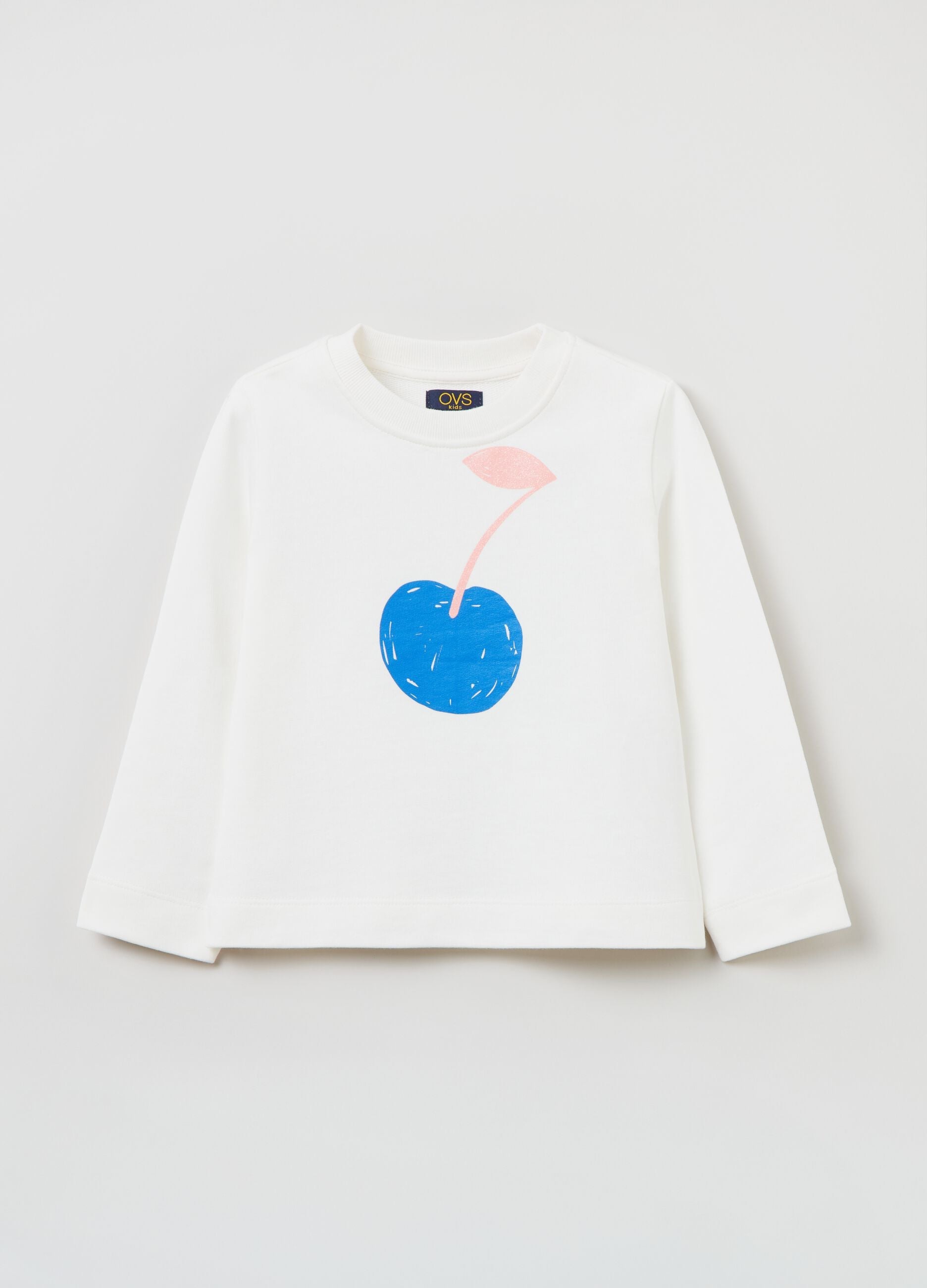 100% cotton French terry sweatshirt (non-brushed lining). Round ribbed neck. Cherries print on the front.